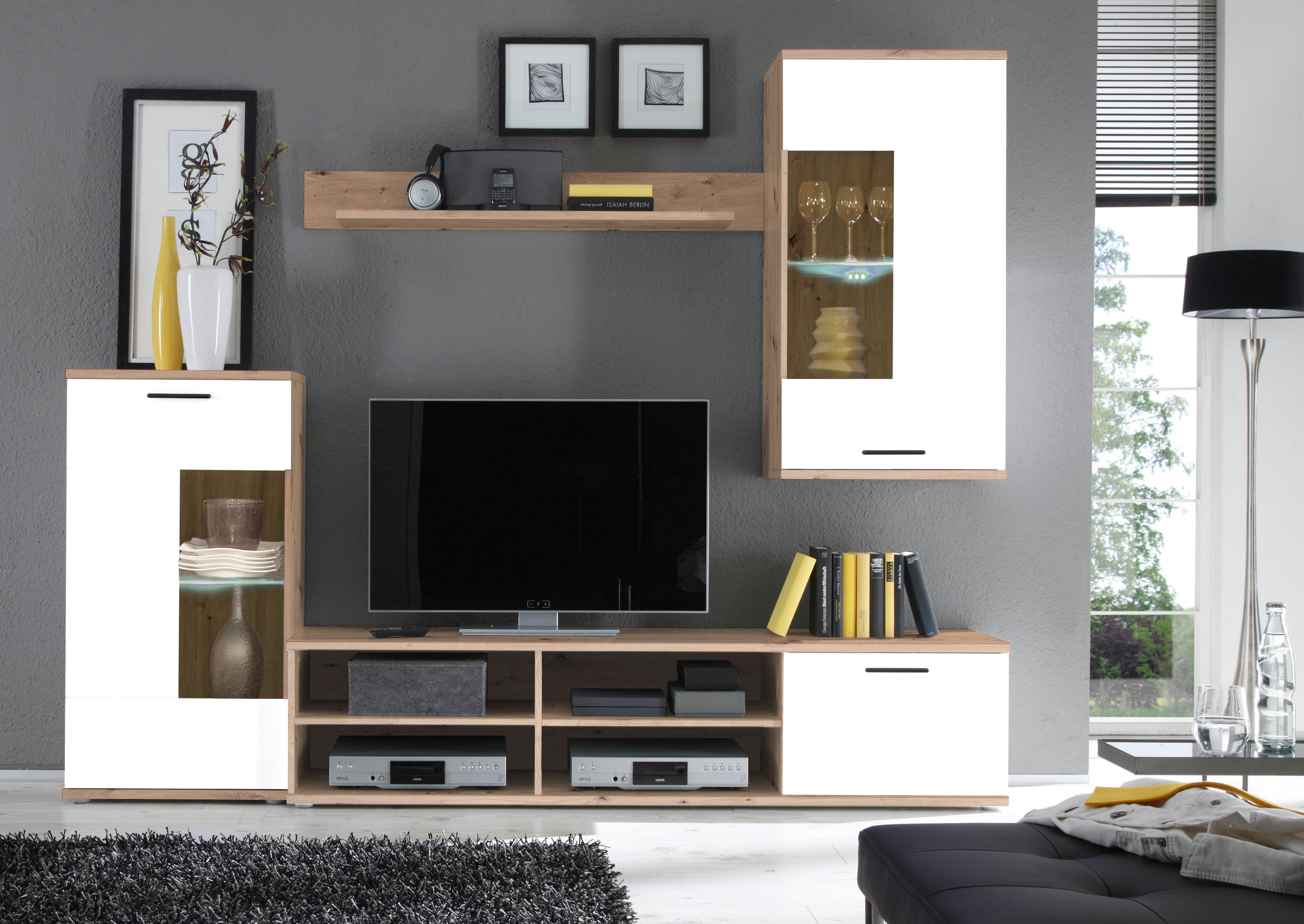 | Equipement murs TV: | Casiers ouverts, Tiroirs, incl. éclairage | ||