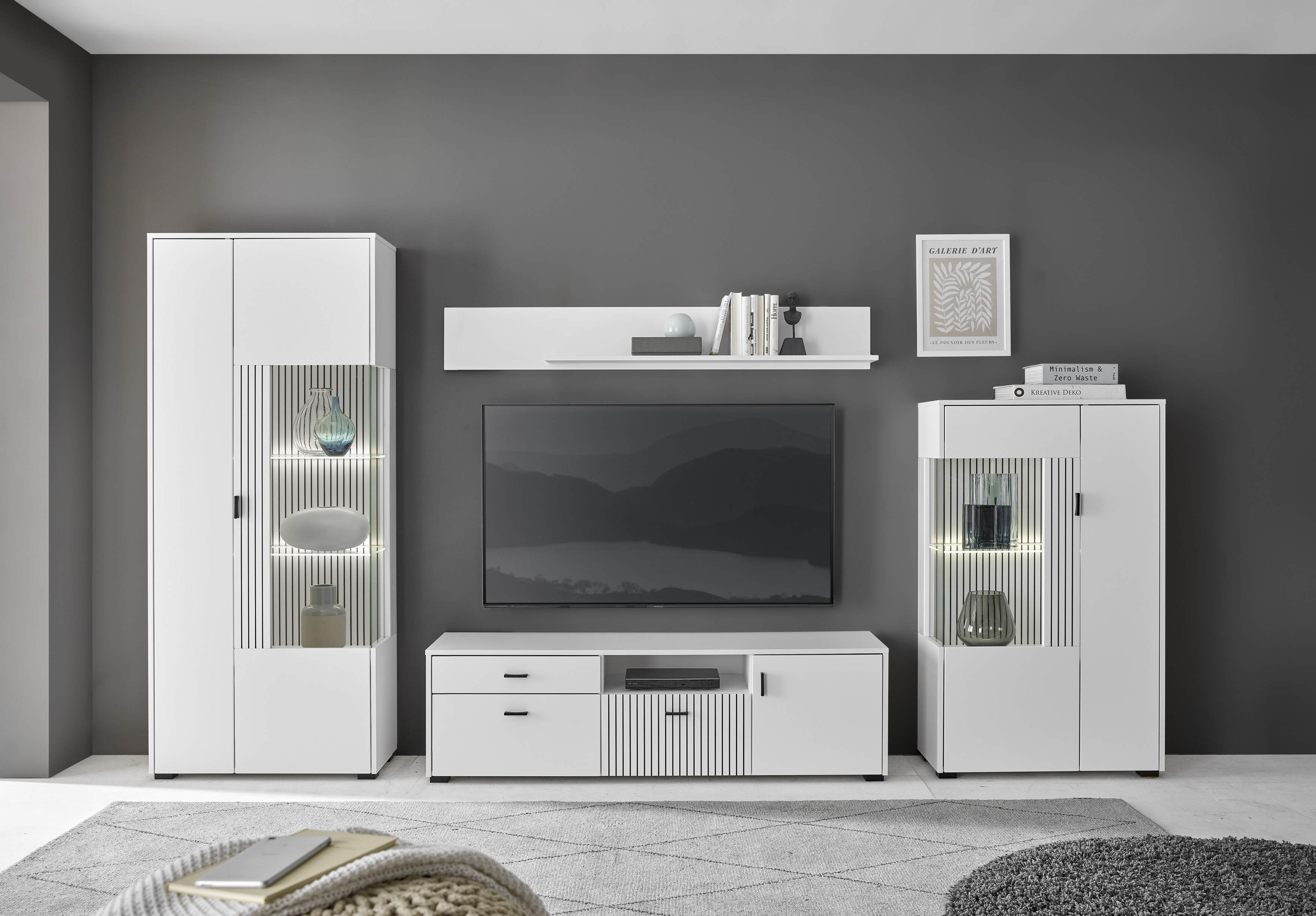 1 banc TV avec 2 portes, 1 abattant, 1 tiroir et un casier pour l’équipement