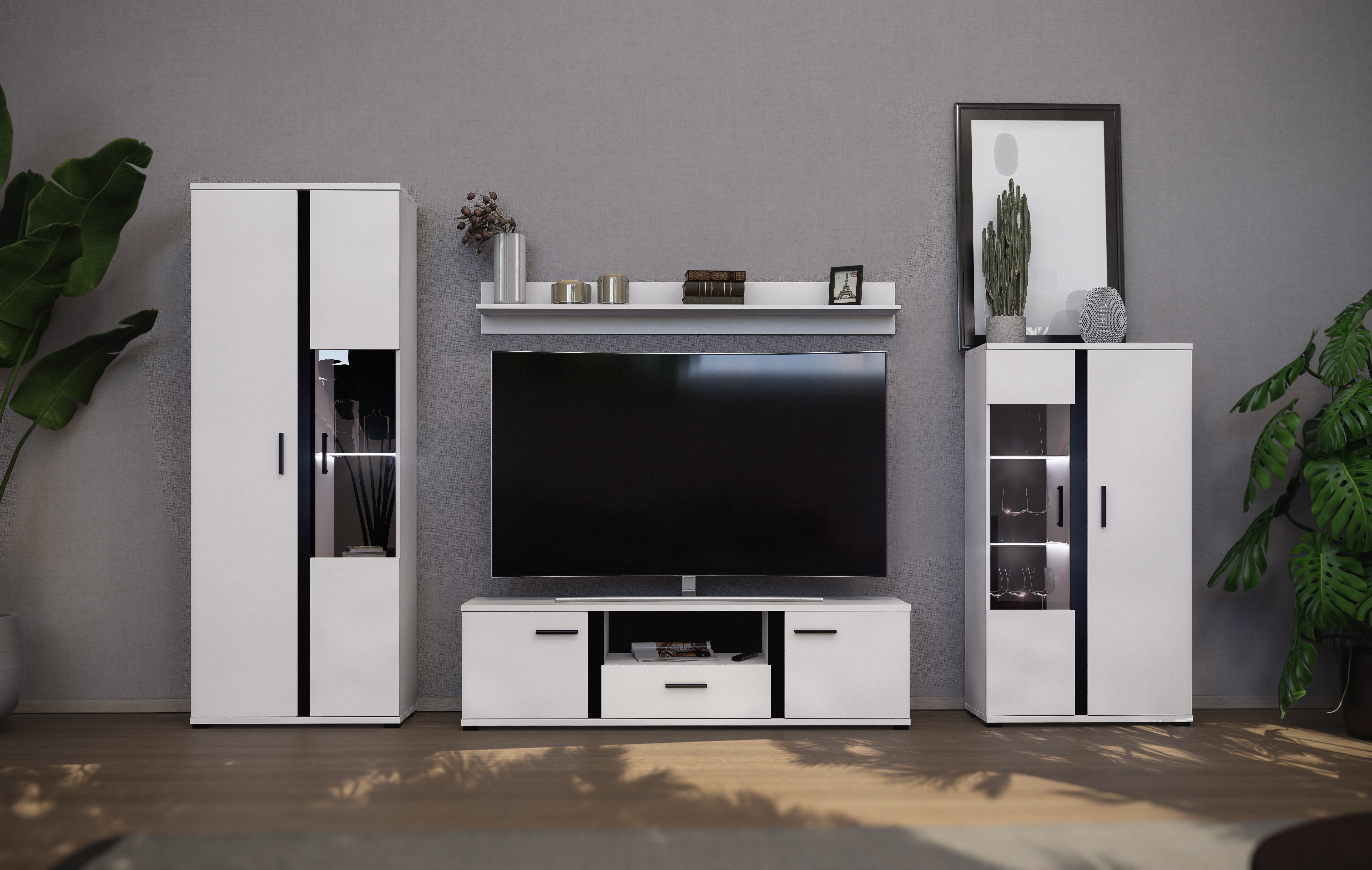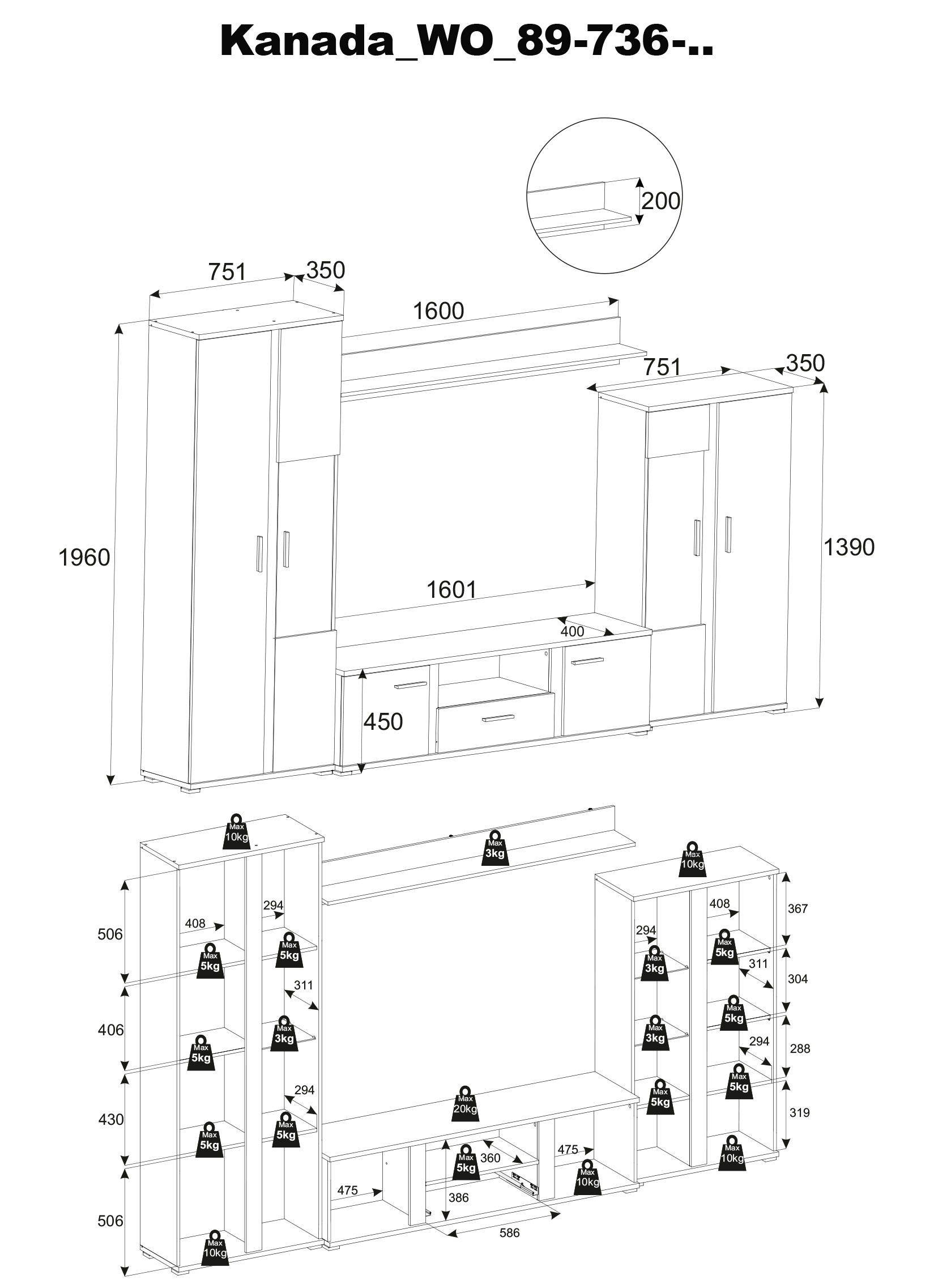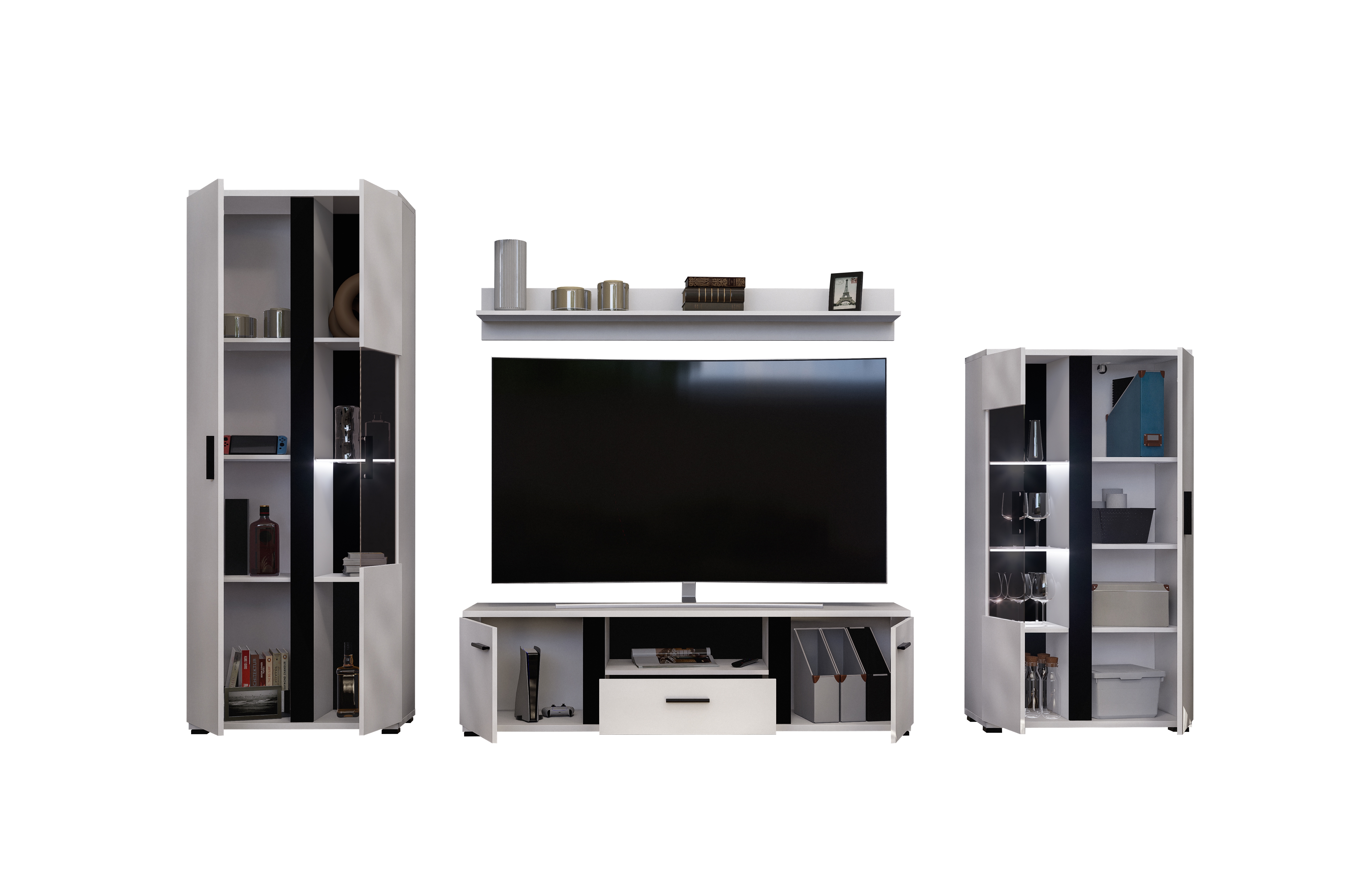 | Equipement murs TV: | Passe-câbles, Tiroirs, incl. éclairage | ||