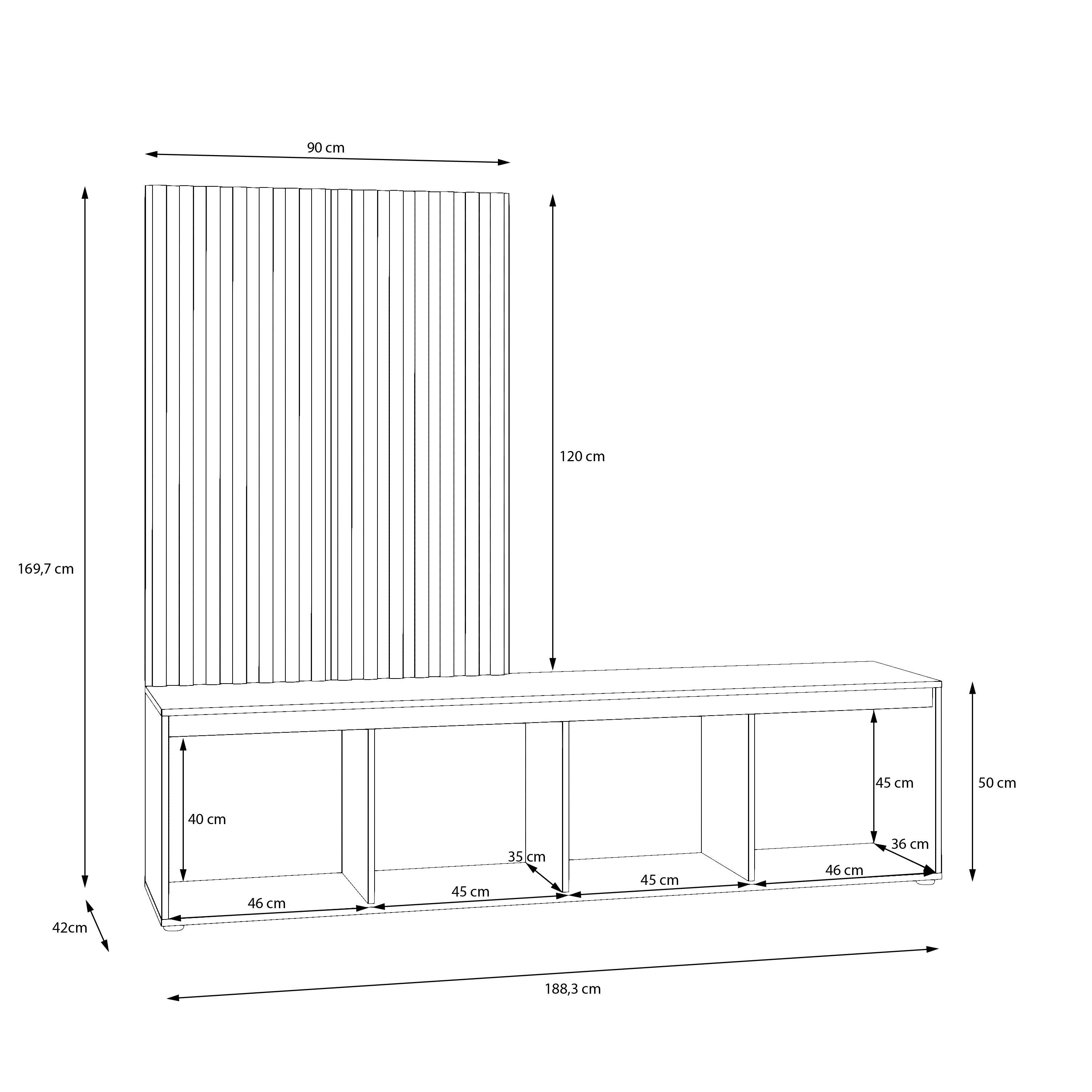 | Dimensions : | L/H/P env. 188,3/169,7/42 cm | ||
