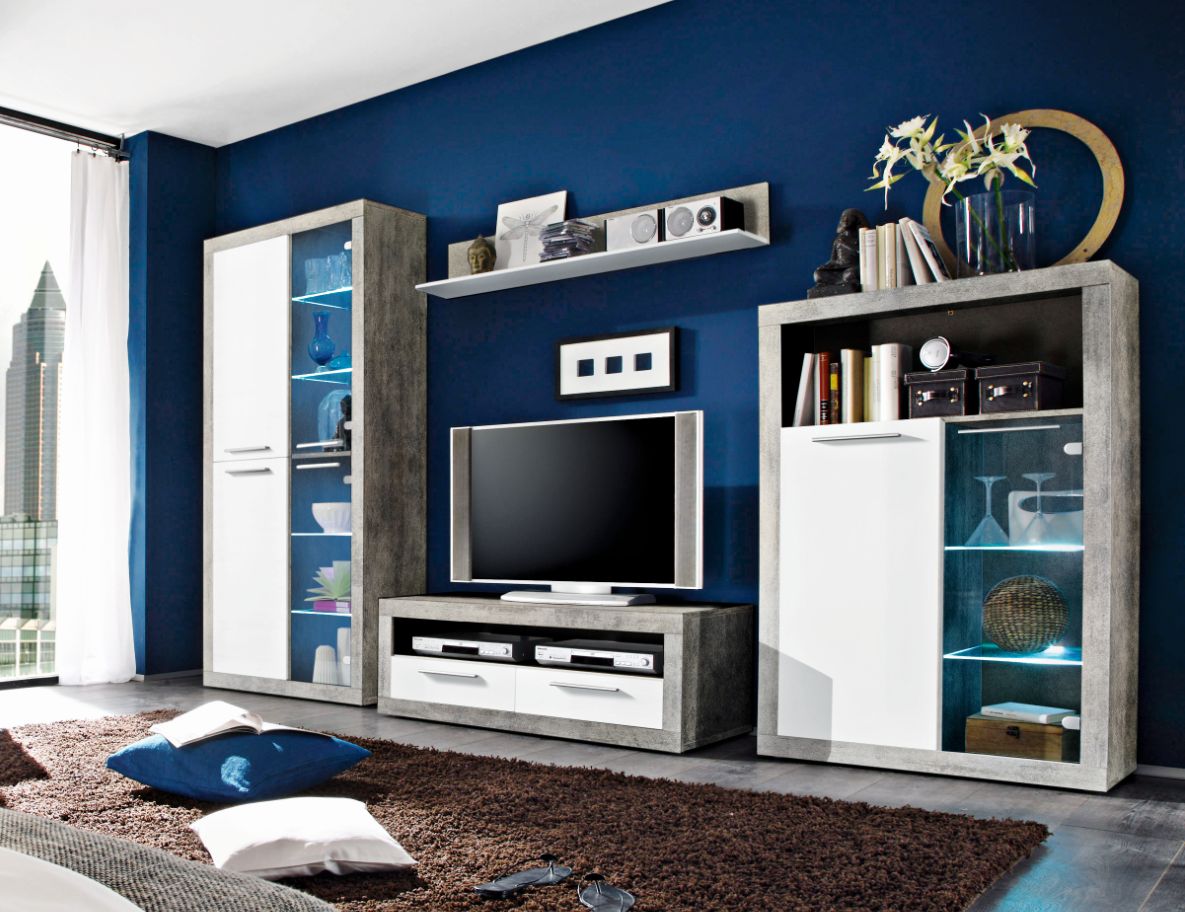 | Equipement murs TV: | Casiers ouverts, Tiroirs, incl. éclairage | ||
