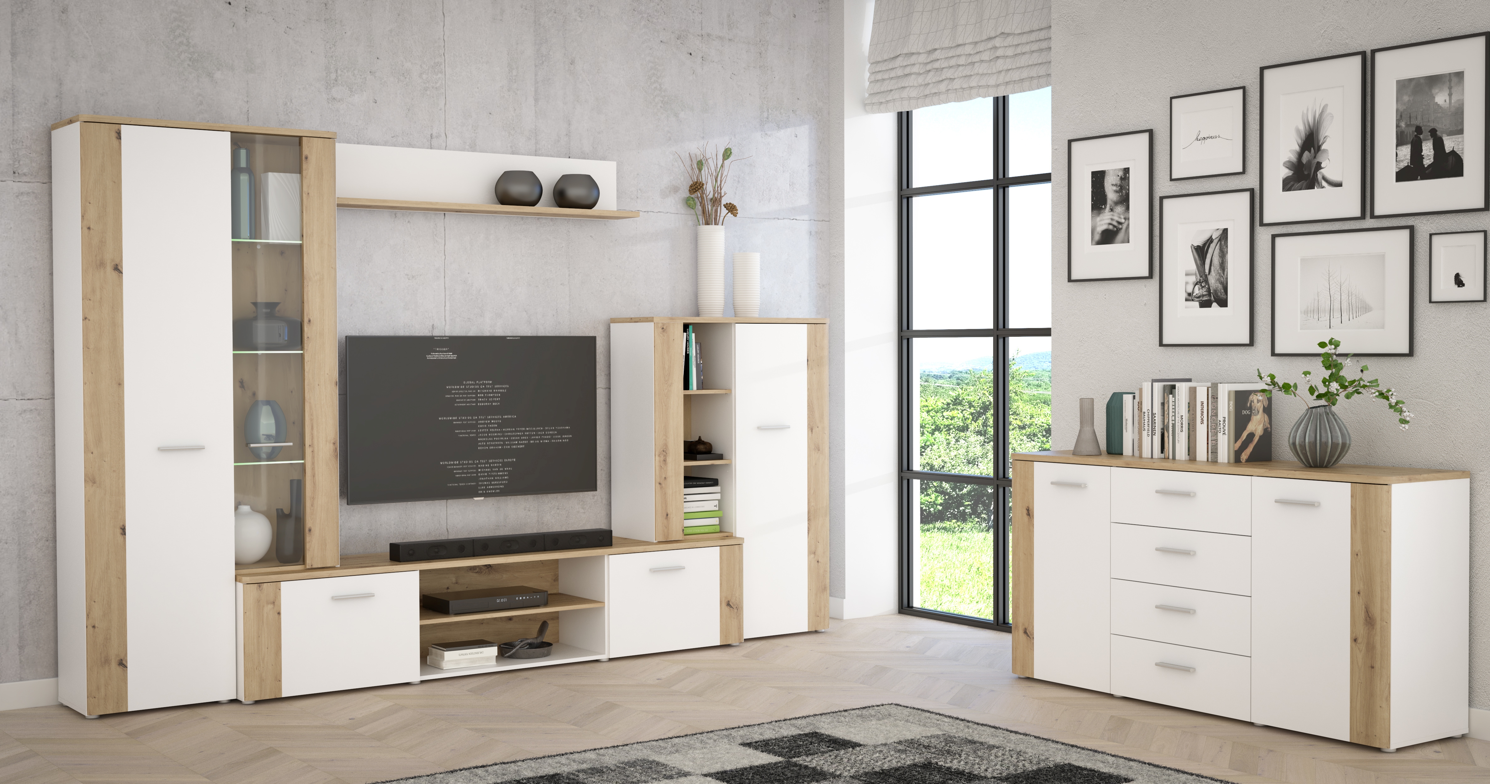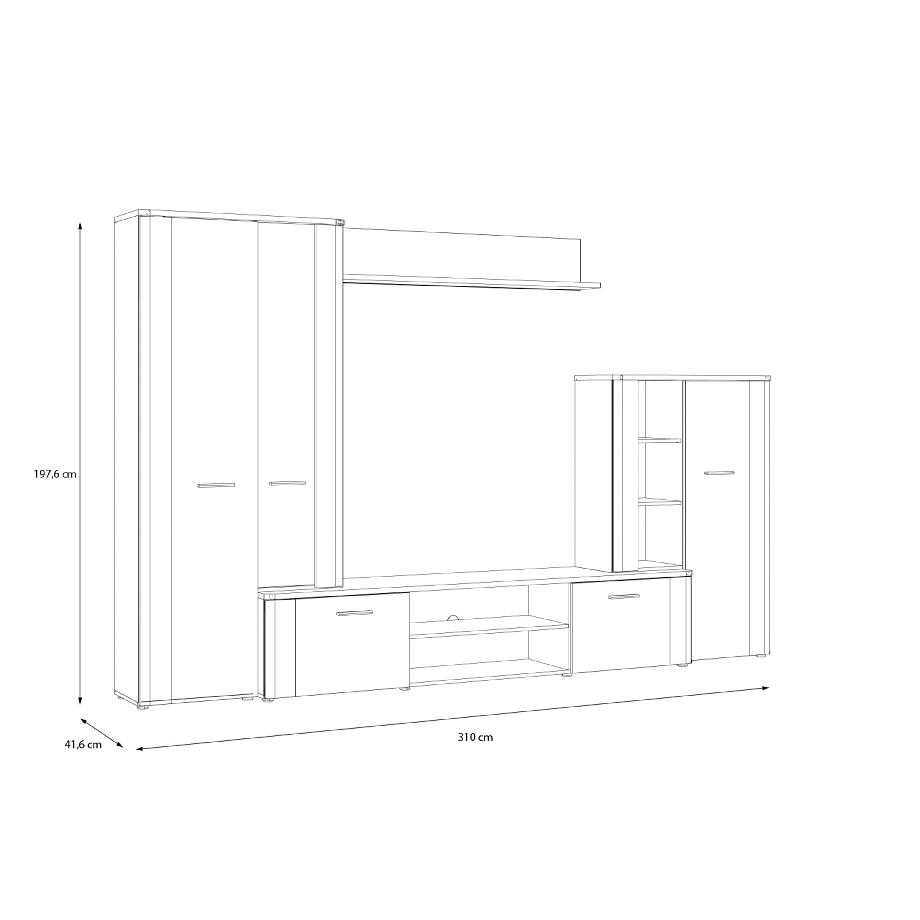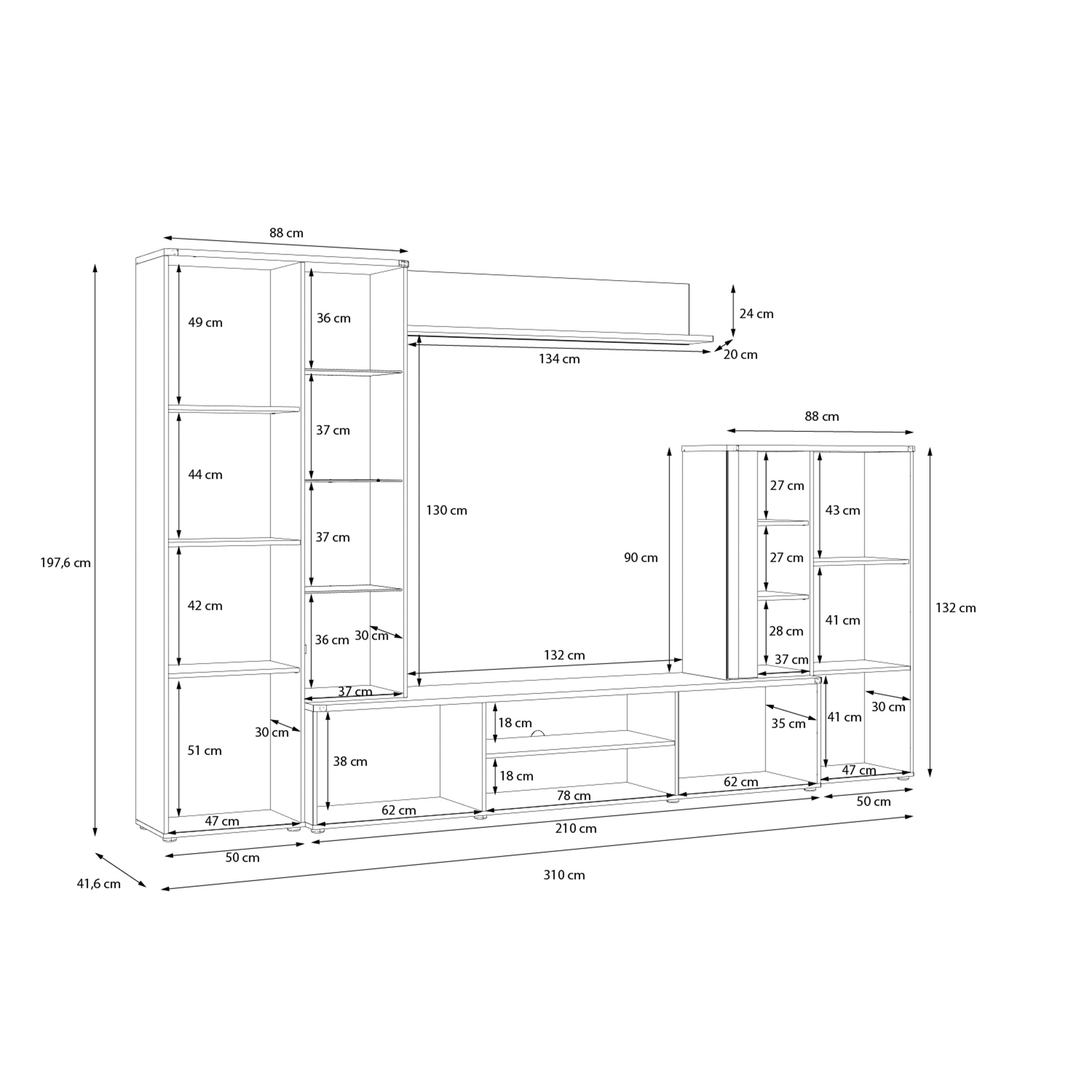 | Equipement murs TV: | Casiers ouverts, Passe-câbles, incl. éclairage | ||