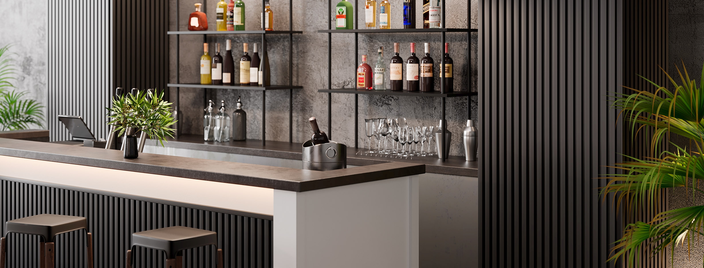 Façade et caisson : ton noir mat
