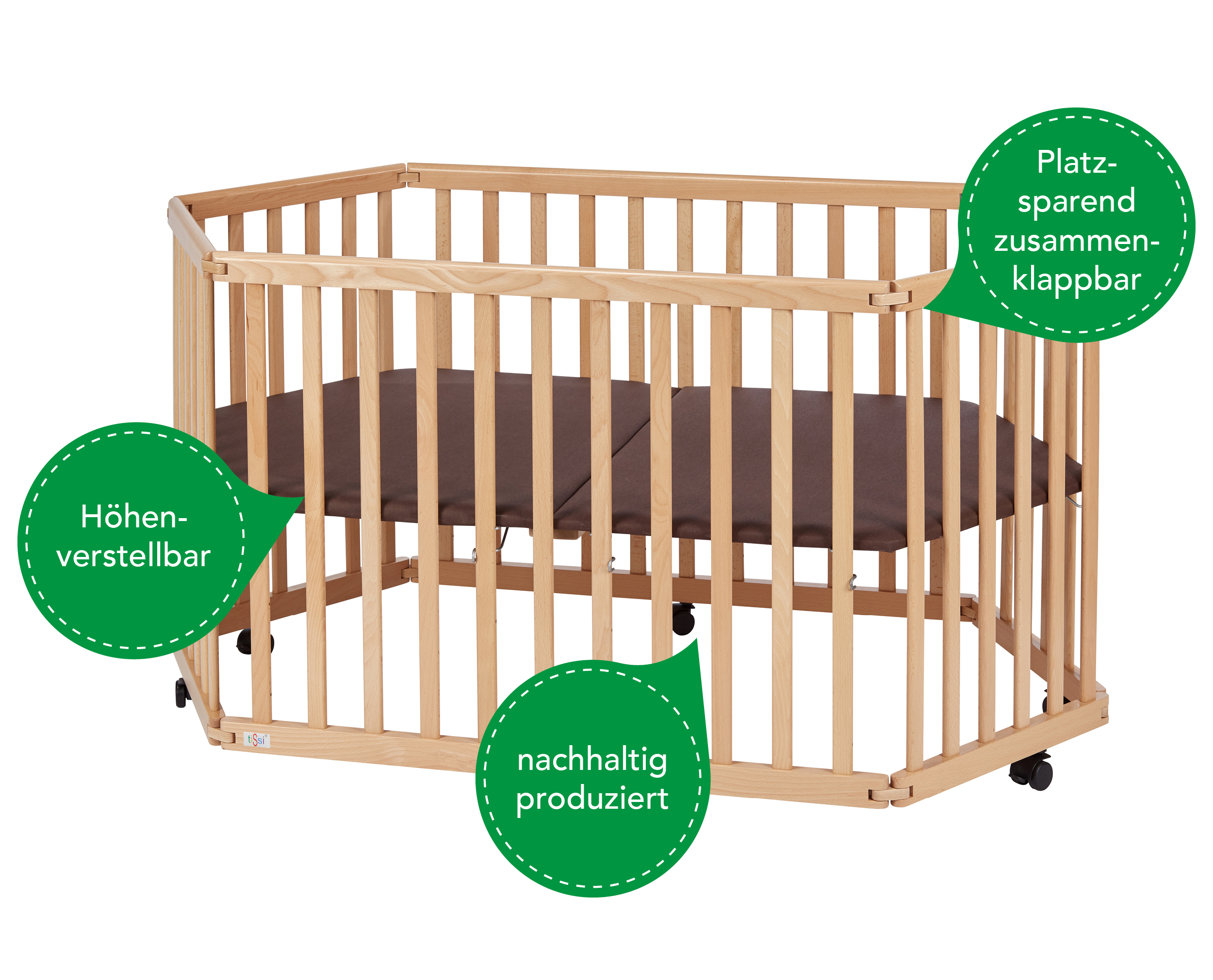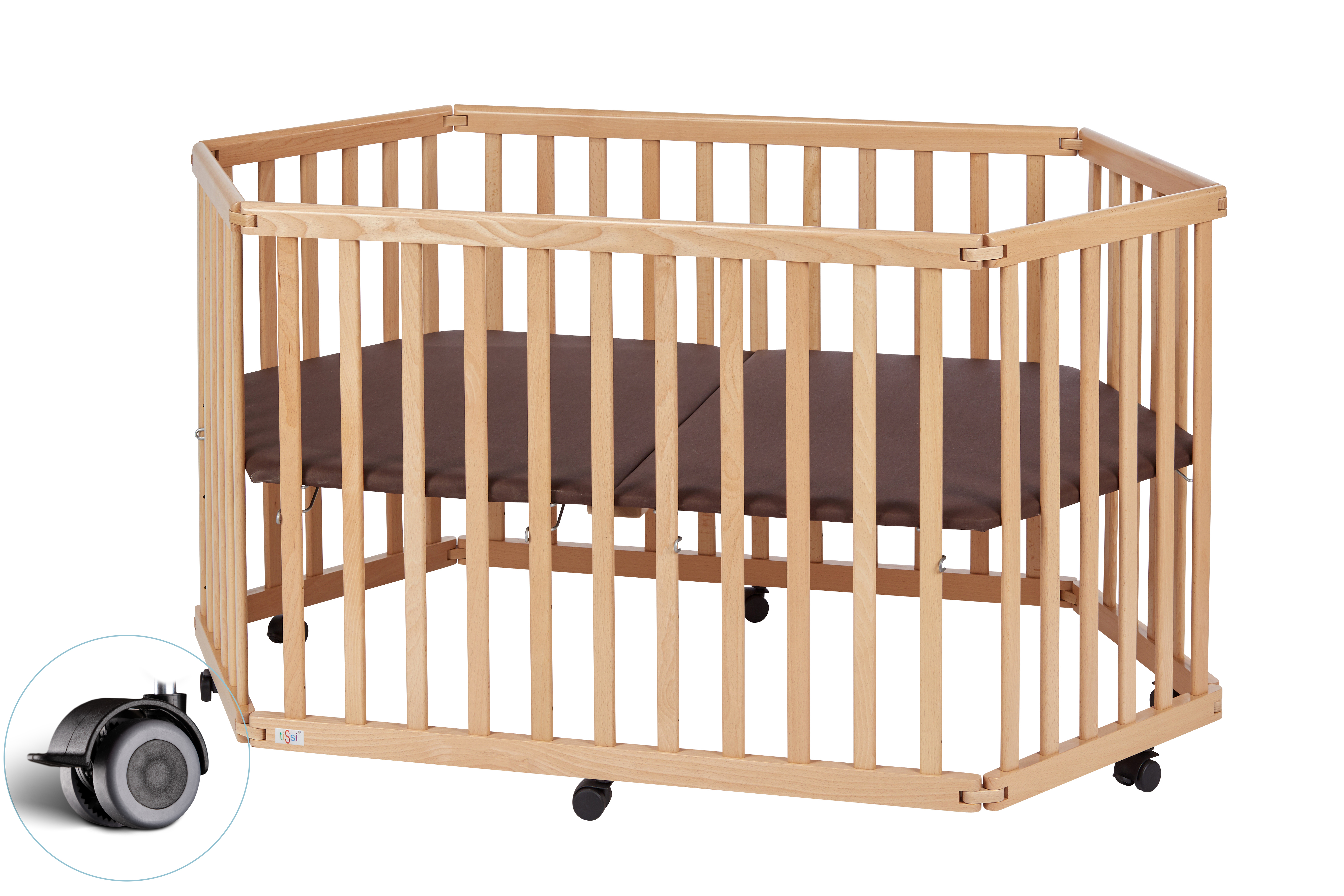 Grâce au système pliant, le parc bébé hexagonal peut s’utiliser rapidement.