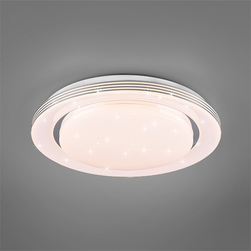Un design simple et des fonctions pratiques ! Le plafonnier tendance ATRIA séduit par son style sobre et ses possibilités d'utilisation variées. Afin de créer une ambiance lumineuse individuelle, la température de couleur et l'intensité lumineuse du luminaire peuvent être réglées très facilement à l'aide de la télécommande. Le plafonnier positionné à la bonne place attirera tous les regards dans votre pièce grâce à la surface originale effet ciel étoilé. Grâce au design sobre ton blanc, le plafonnier s'intègre facilement dans des aménagements intérieurs existants et se combine à merveille avec d'autres coloris. La lampe dispose, en outre, de la technologie LED qui se caractérise par une luminosité de qualité et une excellente efficacité énergétique. Ceci permet d'économiser 80 % des coûts énergétiques par rapport aux ampoules halogènes habituelles. De plus, les sources lumineuses LED ont une durée de vie accrue, produisent moins de chaleur et participent à la protection de l'environnement.