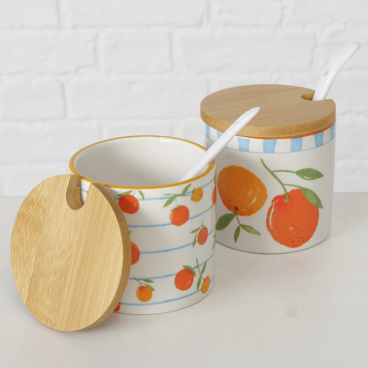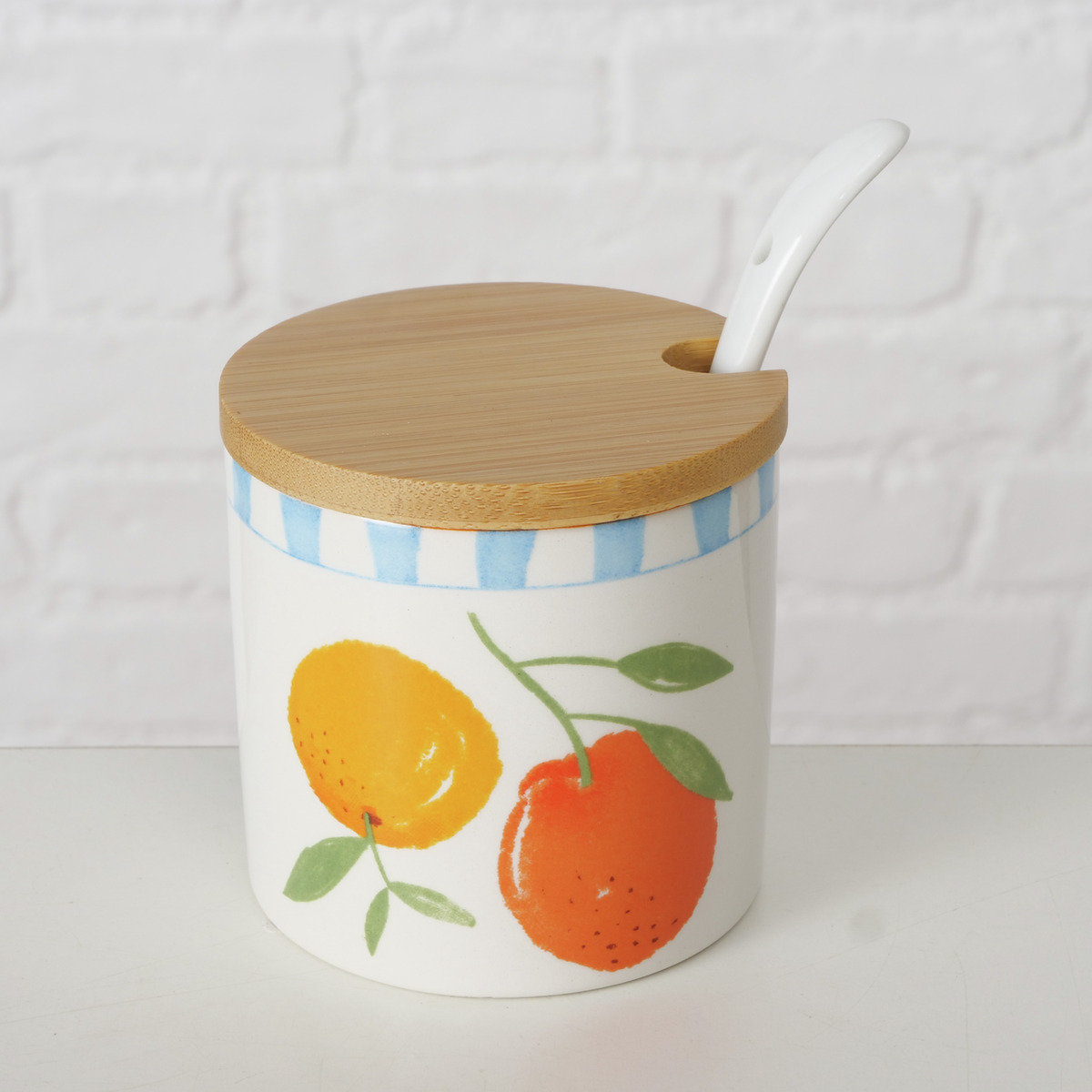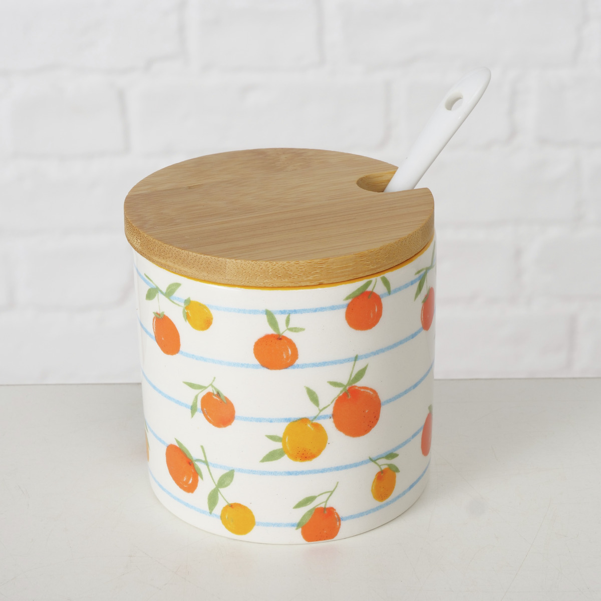 1 pot à confiture avec motif oranges et cuillère