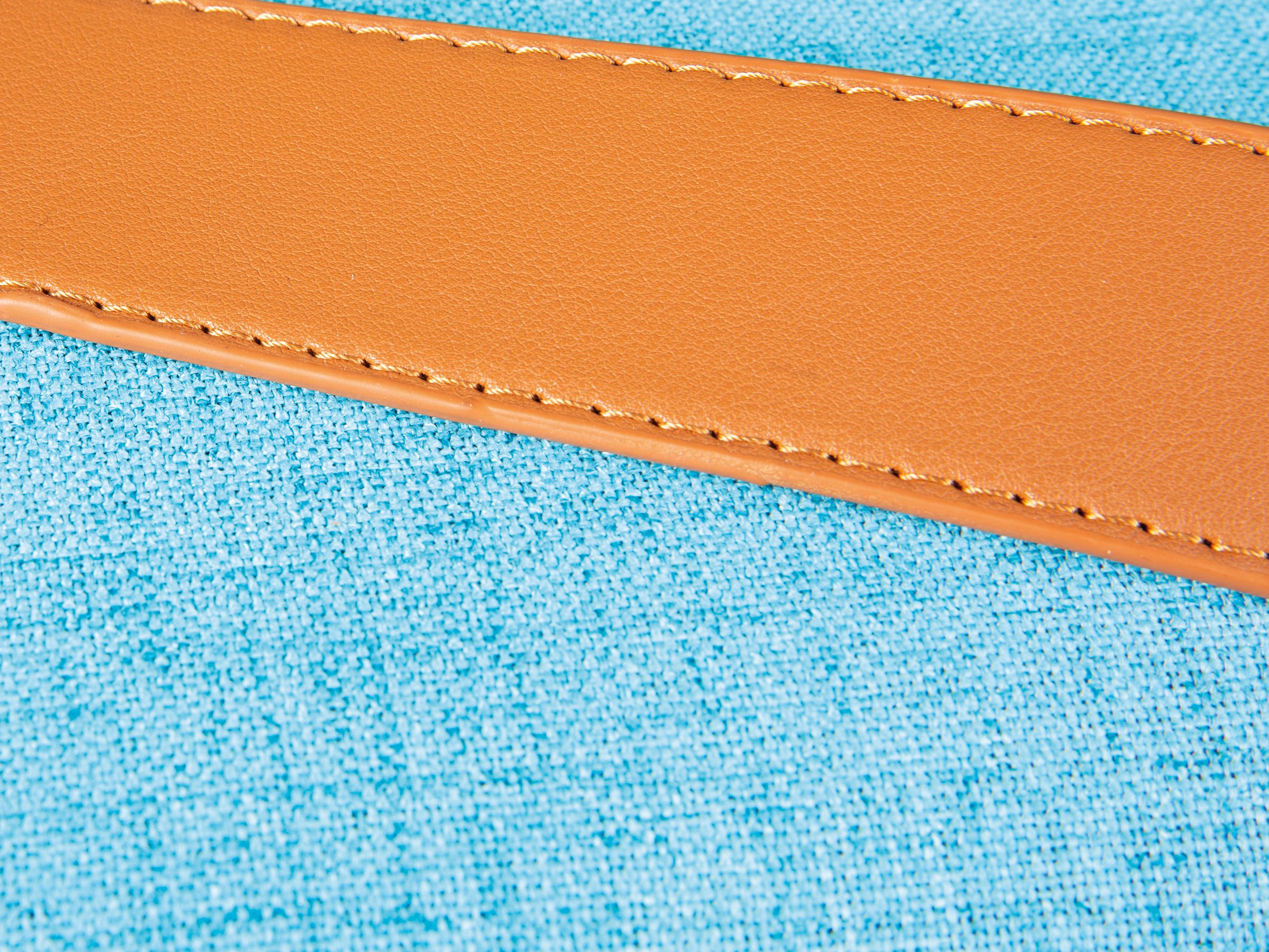 Peu encombrant et léger, le pouf se transporte facilement grâce à sa sangle marron pratique.
