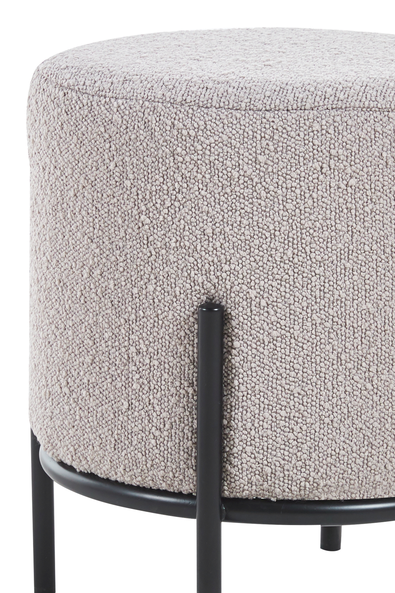 Quand des invités surprises s’annoncent, un siège supplémentaire est toujours bienvenu ! Et si, en plus, ils est stylé et peu encombrant, il deviendra rapidement le compagnon design idéal pour le canapé et le coin salon. Le pouf en tissu bouclette avec son assise d'un diamètre de 35 cm offre justement cette combinaison associant aspect attrayant et côté pratique et fonctionnel. Car vous pourrez facilement y installer vos invités supplémentaires ou l’utiliser en guise de repose-pied. Le tissu bouclette, qui a fait depuis longtemps son apparition dans nos salons et salles à manger, exhale chaleur et convivialité pour une ambiance cosy. De plus, le tissu, dans son aspect laineux, incarne parfaitement l’essence du style scandinave à la popularité inégalée. Le piètement design à pieds hauts est fabriqué en métal finition époxy ton noir et apporte la touche finale à l’ensemble.