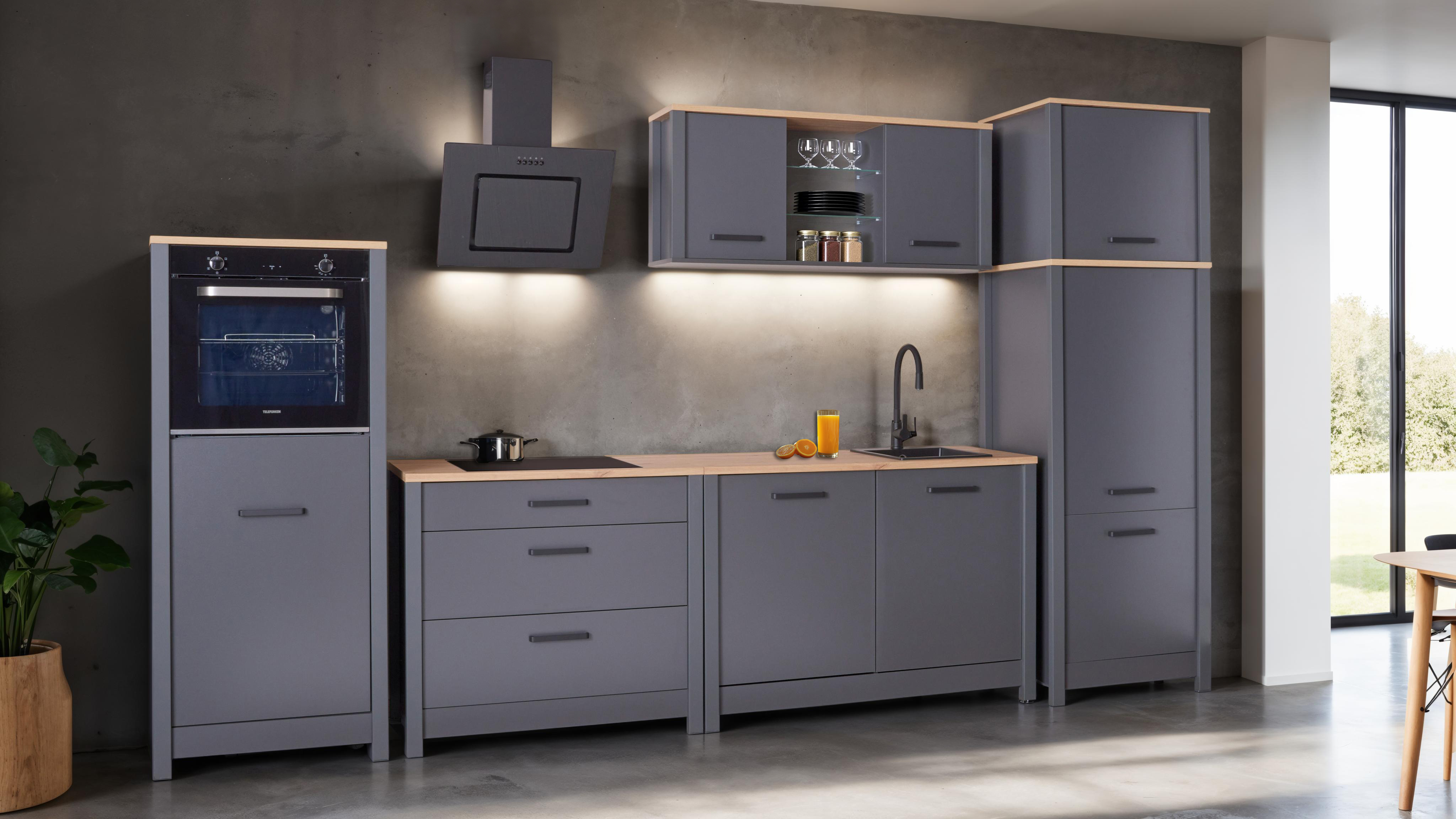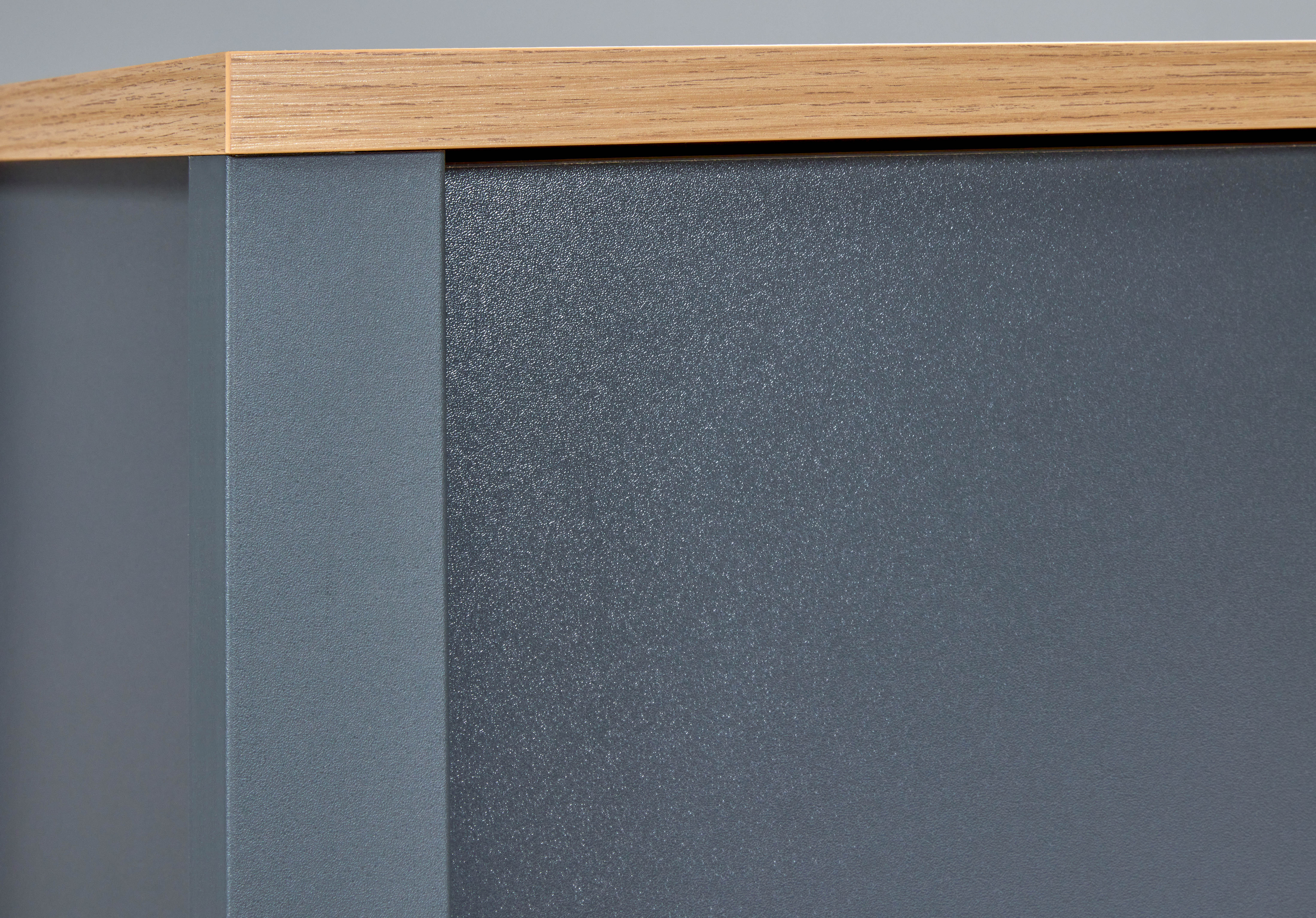 Façade et caisson : panneaux de particules MDF (panneau de fibres de bois de densité moyenne) ton anthracite