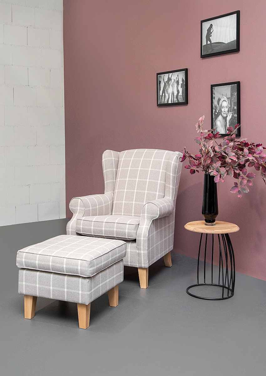 Revêtement : tissu 332/15 ton gris à carreaux (tissu de base 100% polyester ; couche d'usure 95% polyester et 5% polyamide)