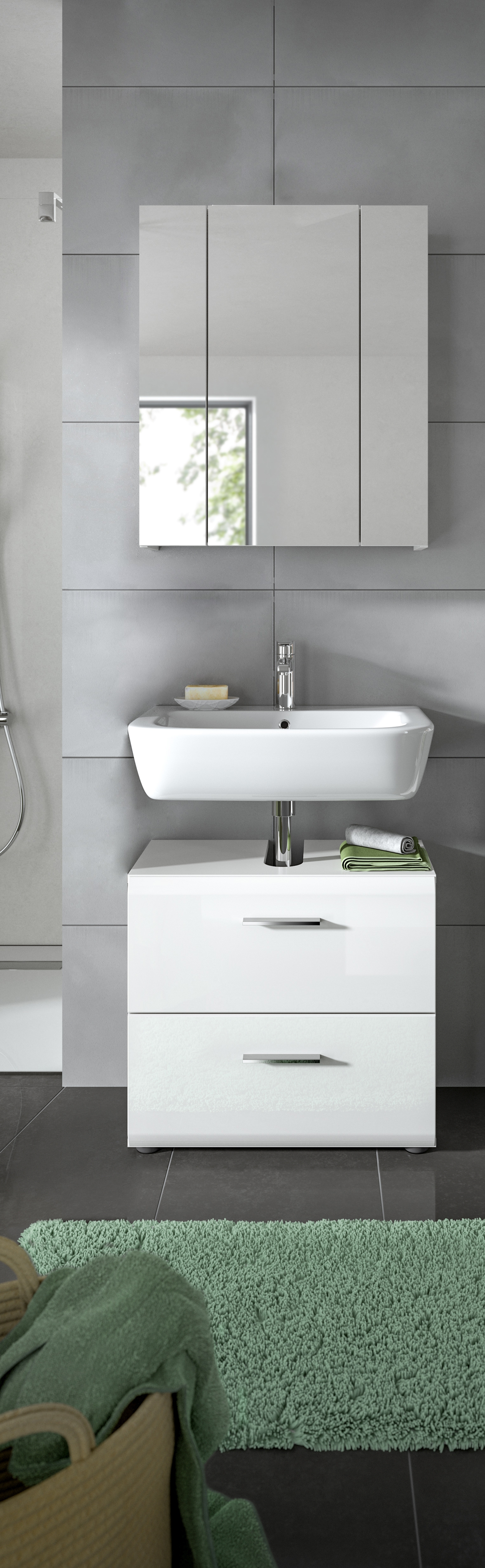 - Fonctionnalité : ensemble constitué d’un meuble sous lavabo et d’une armoire de toilette pour une solution de rangement complète sur un faible encombrement dans la salle de bains.