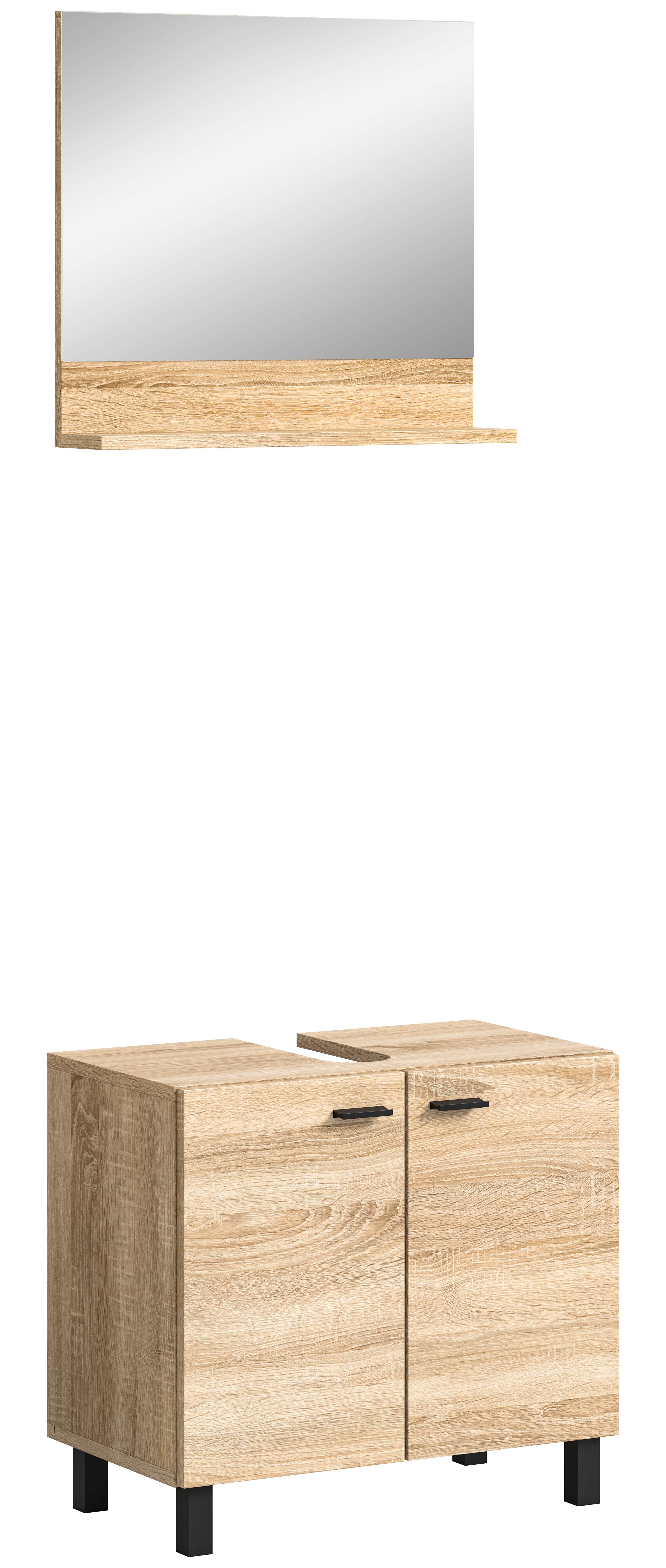 - Design/style : meuble sous vasque moderne avec miroir assorti dans un décor chêne Sonoma pour une salle de bains propre et tendance.