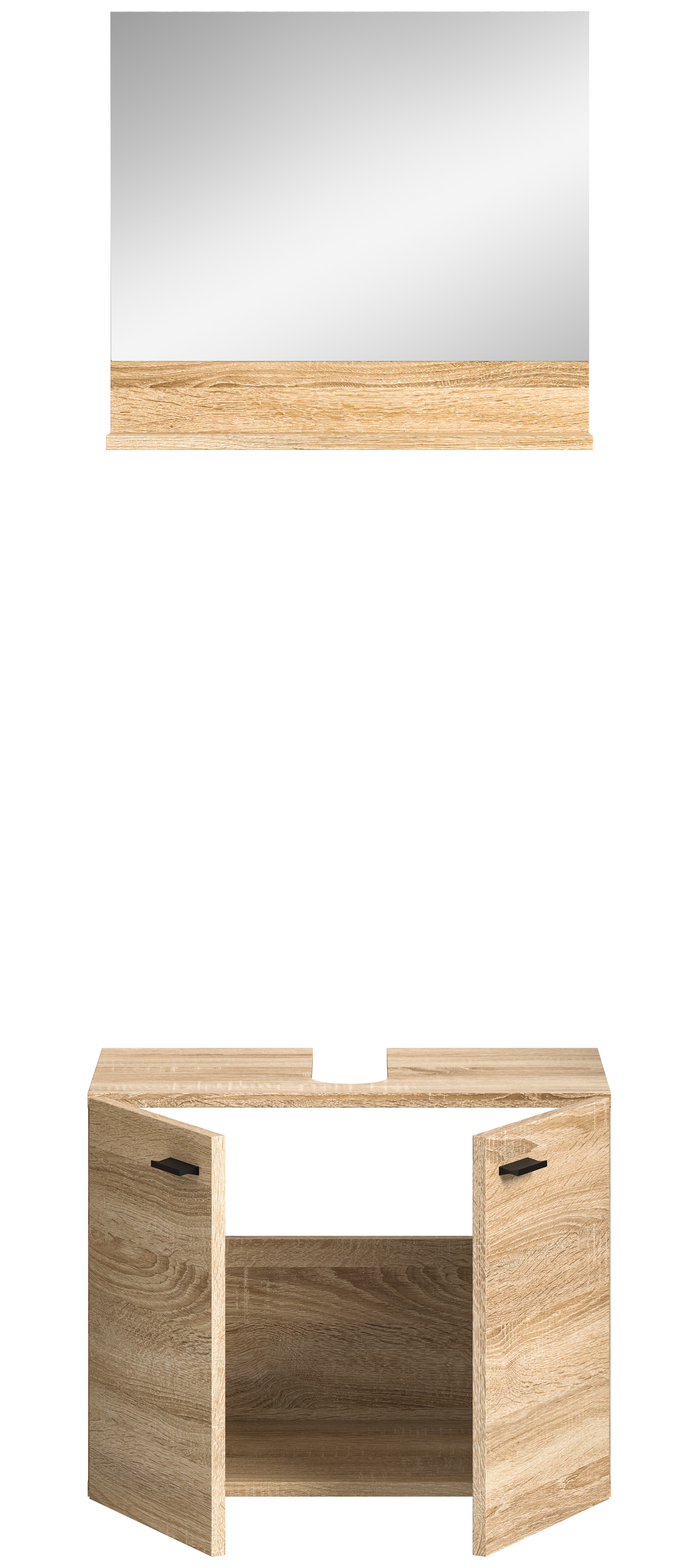 Notre meuble sous vasque polyvalent avec miroir assorti (dimensions : 57x44x33 cm) est adapté à la fois pour le montage mural et pour la pose au sol. Proposé dans un décor chêne Sonoma élégant, cet ensemble s’intègre harmonieusement dans tout type de salle de bains et lui confère une touche moderne. Découvrez cette solution peu encombrante et conférez style et fonctionnalité à votre salle de bains .