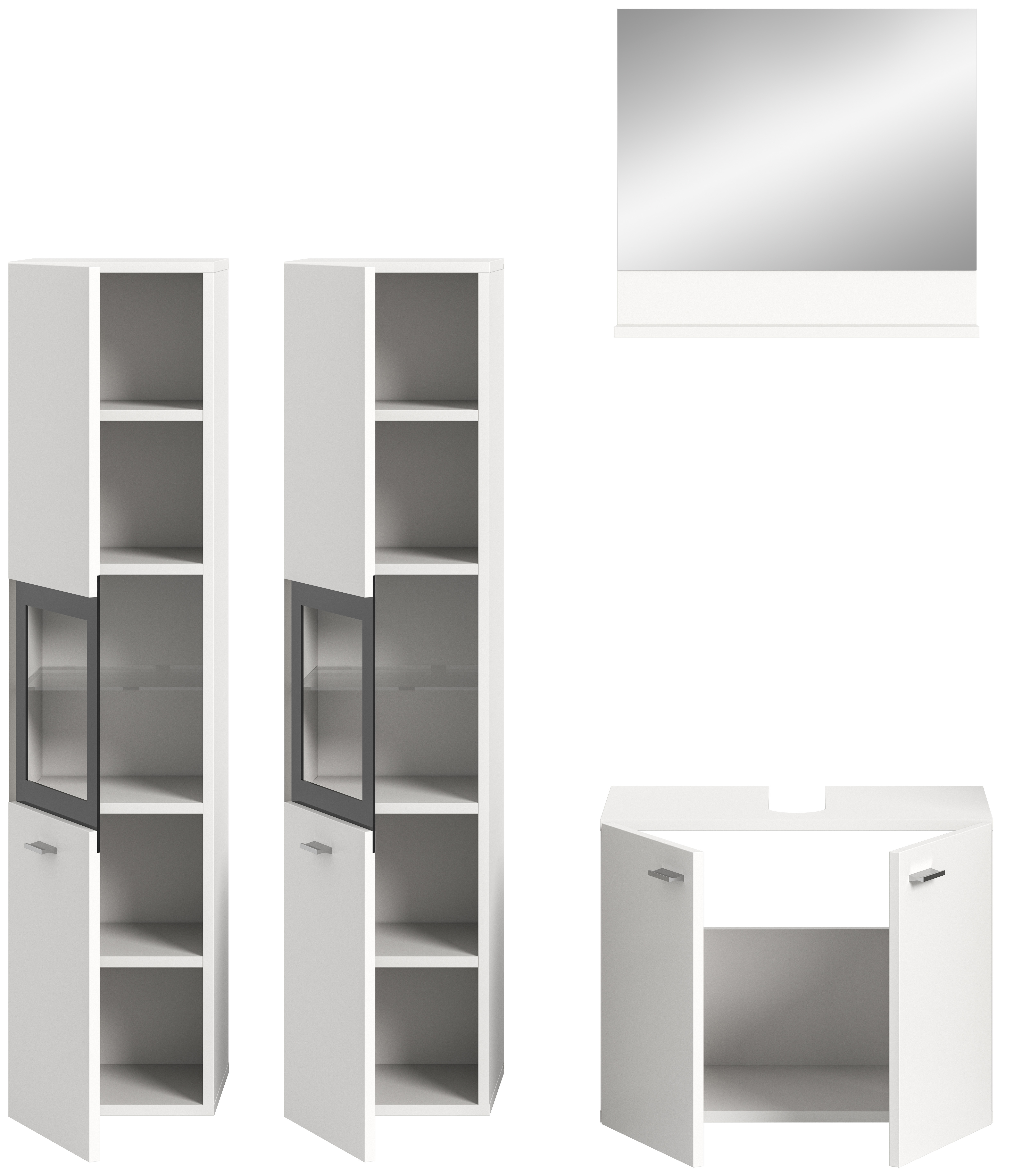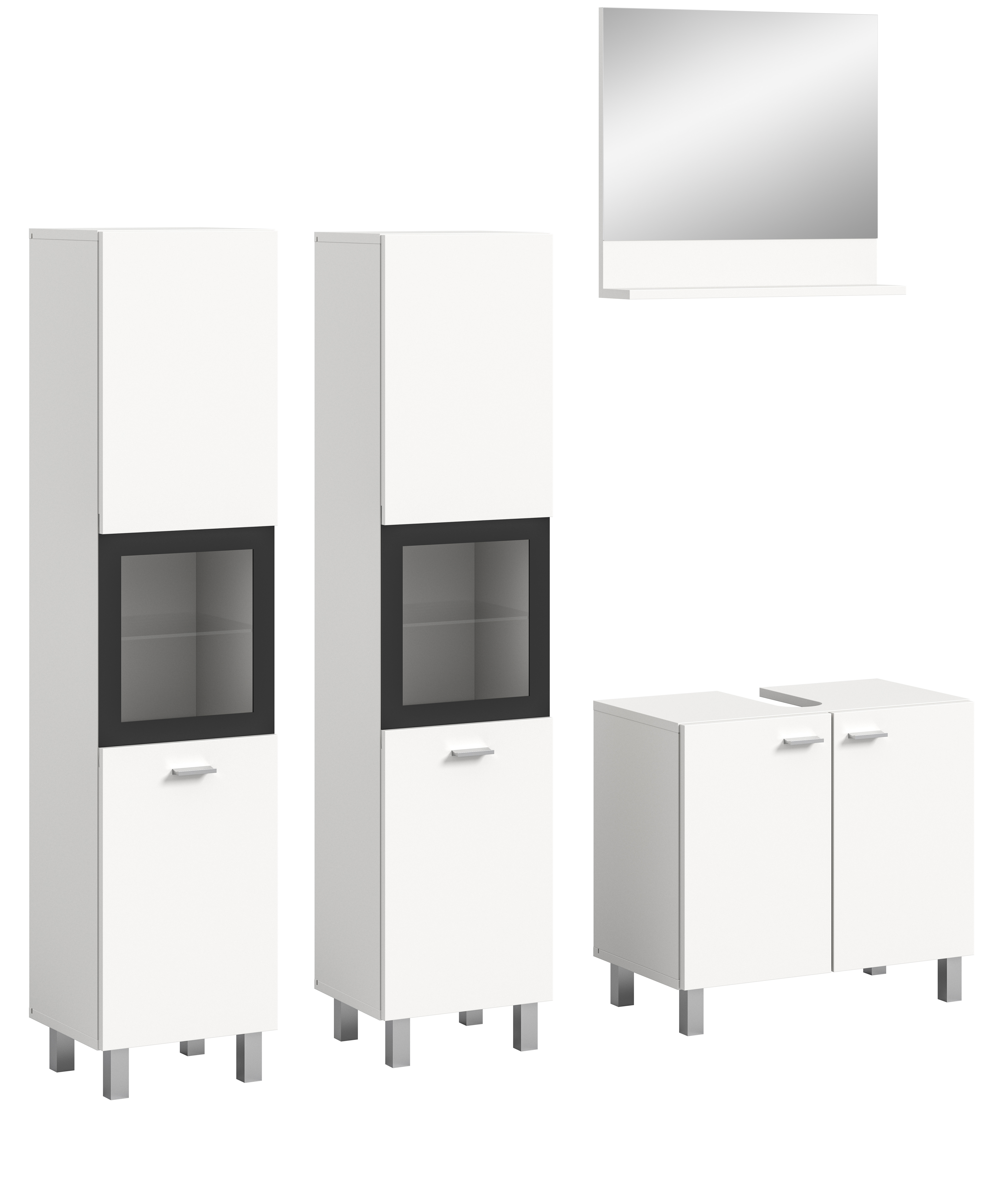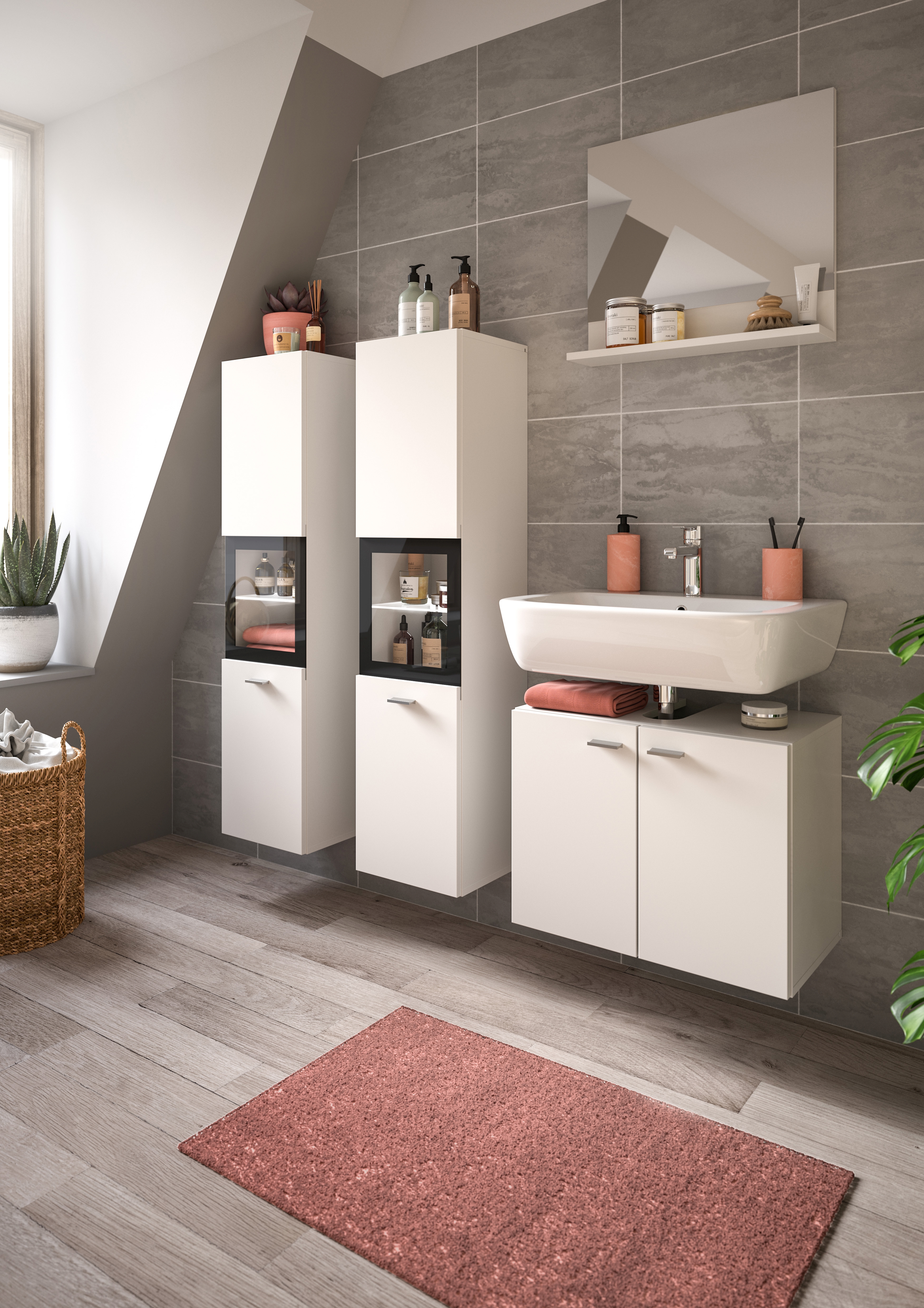 • Fonctionnalité : vaste espace de rangement avec différentes armoires et divers casiers pour le stockage organisé des accessoires de bain, serviettes et produits de soins ; cet ensemble permet également d’aménager joliment la salle de bains.