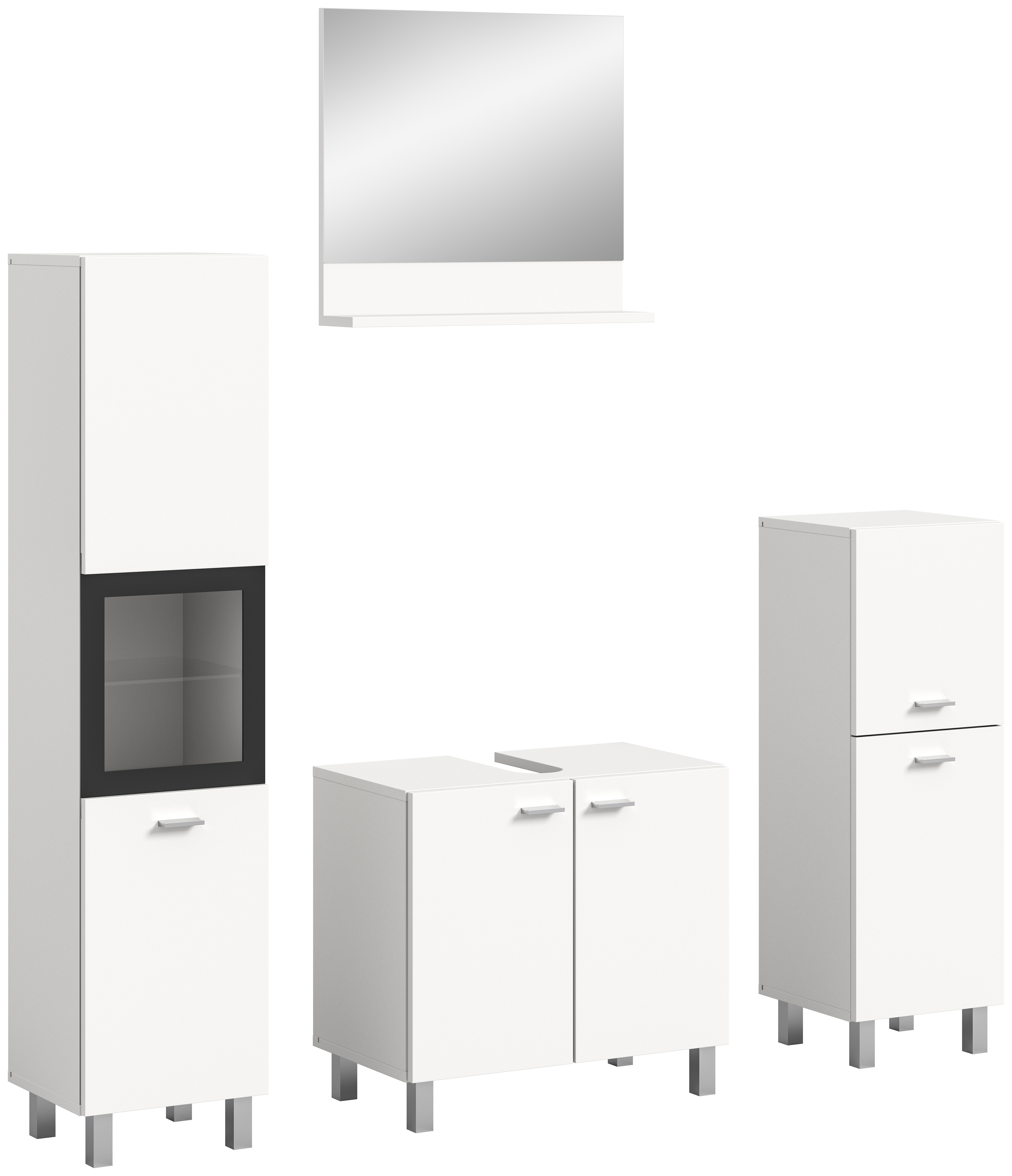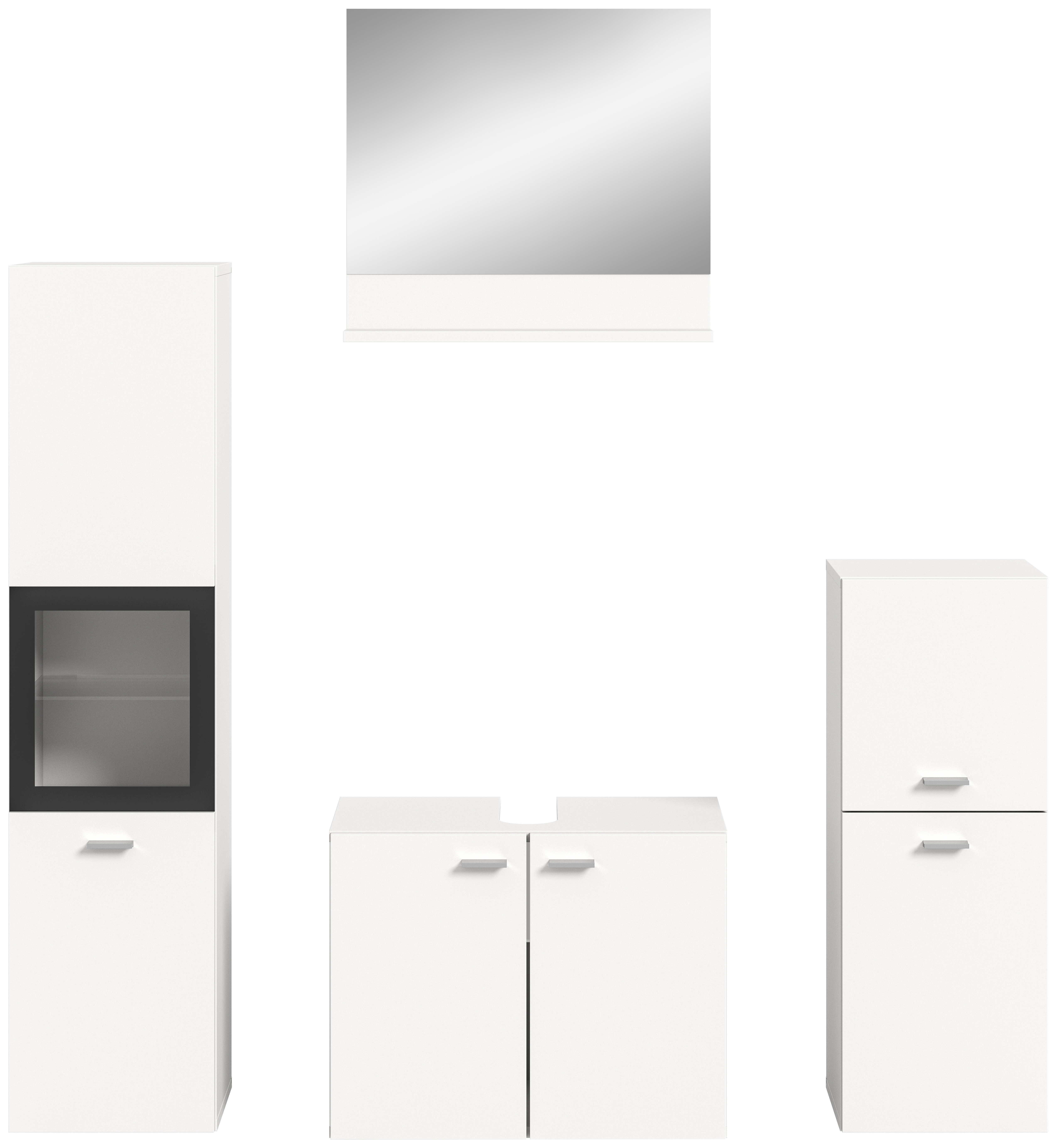 - Fonctionnalité : vaste espace de rangement avec différentes armoires et divers casiers pour le stockage organisé des accessoires de bain, serviettes et produits de soins ; cet ensemble permet également d’aménager joliment la salle de bains.