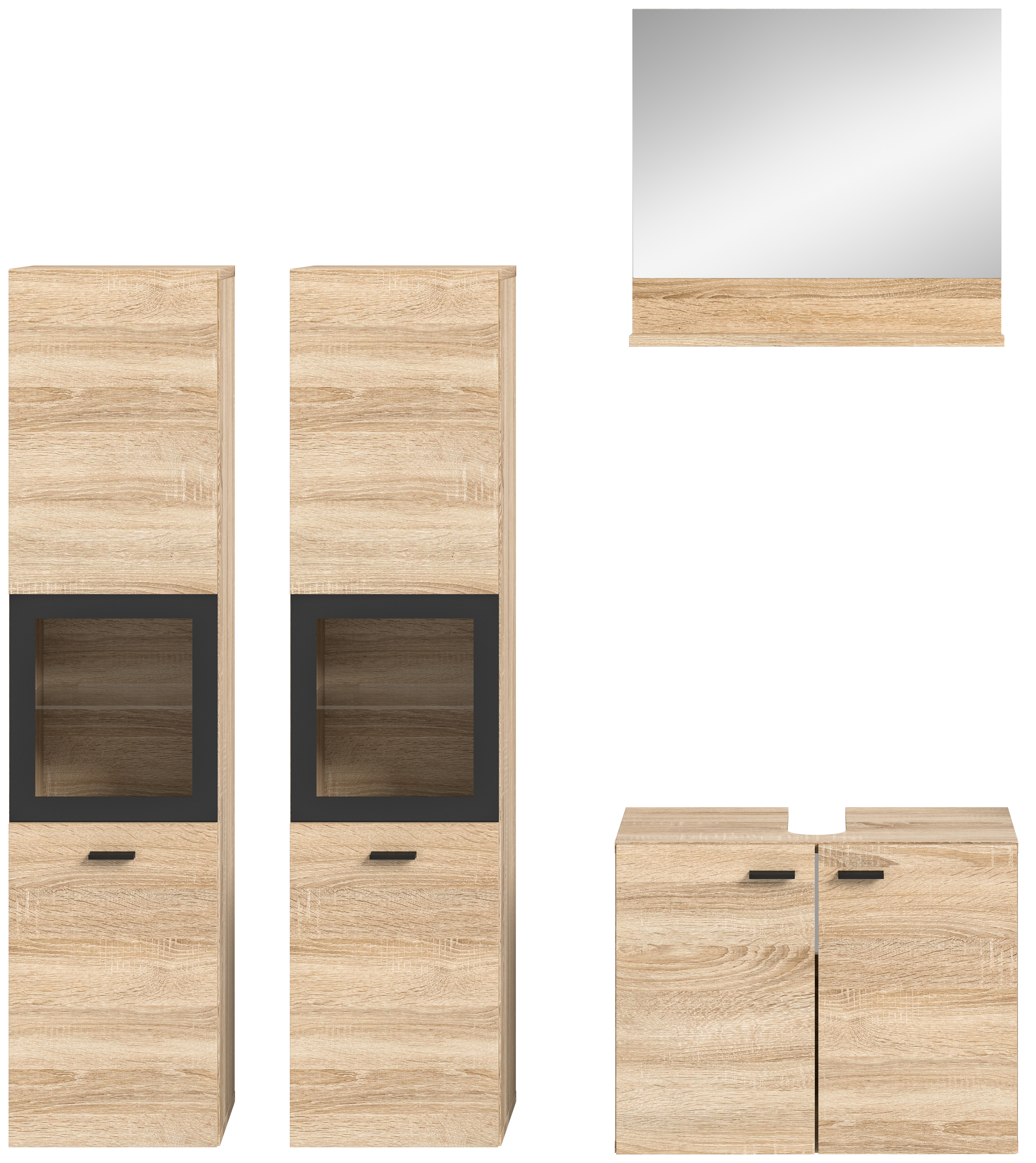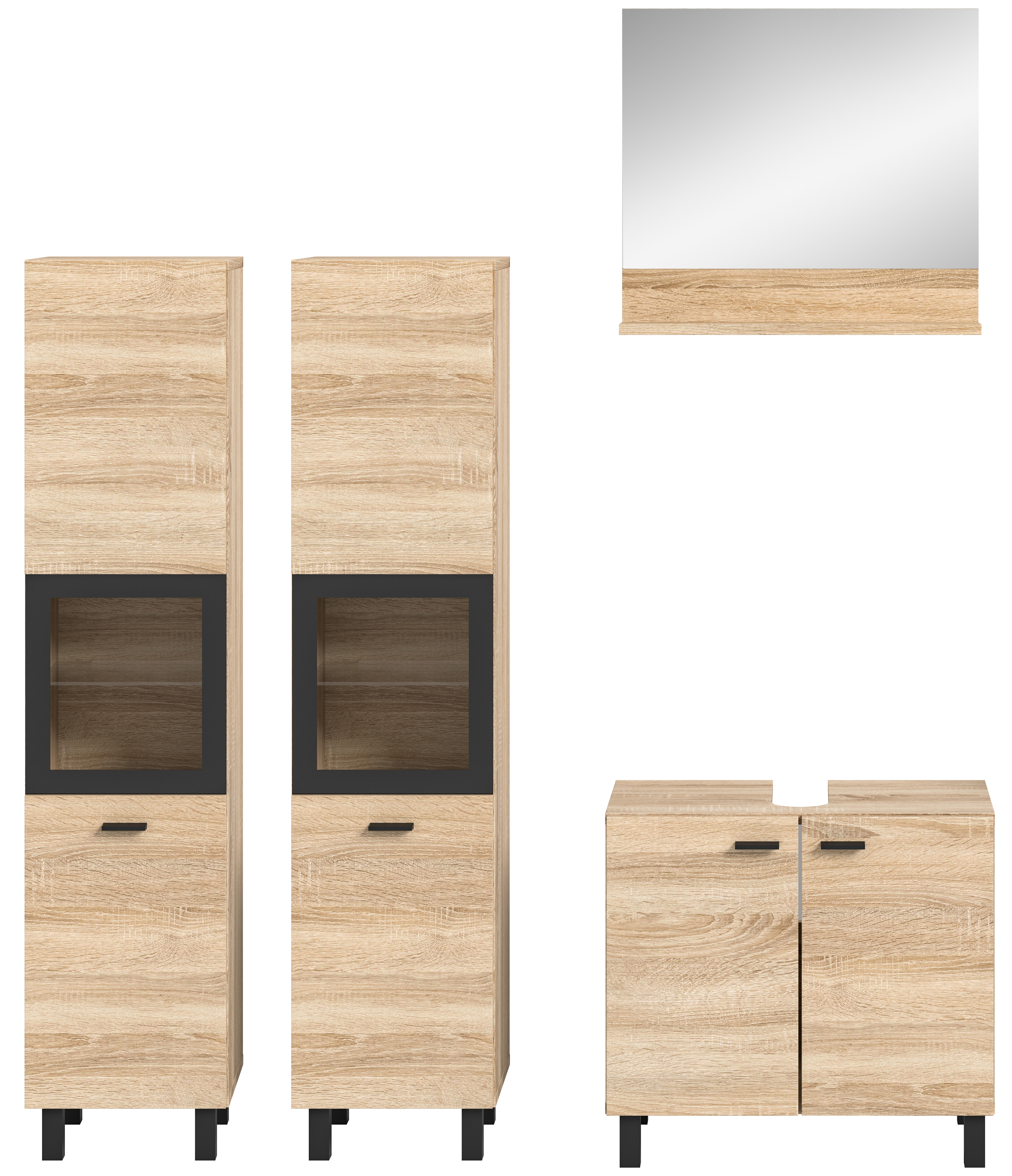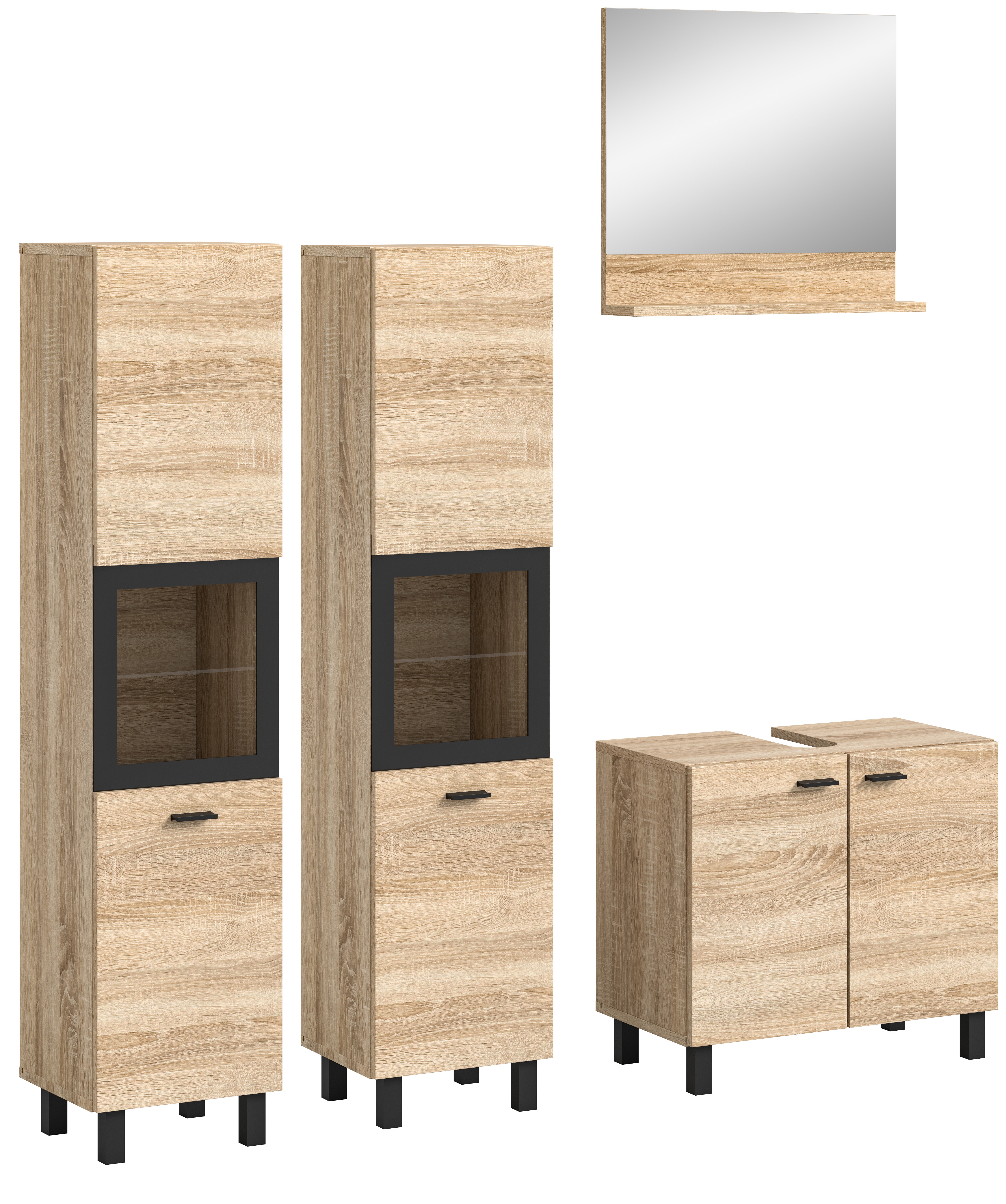 Notre salle de bains combinée décor chêne Sonoma offre une flexibilité maximale pour aménager votre salle de bains selon vos souhaits individuels. Le design intemporel s’intègre harmonieusement dans tout type de salle de bains et lui confère une ambiance naturelle et chaleureuse. Découvrez dès maintenant cette solution polyvalente pour votre salle de bains.