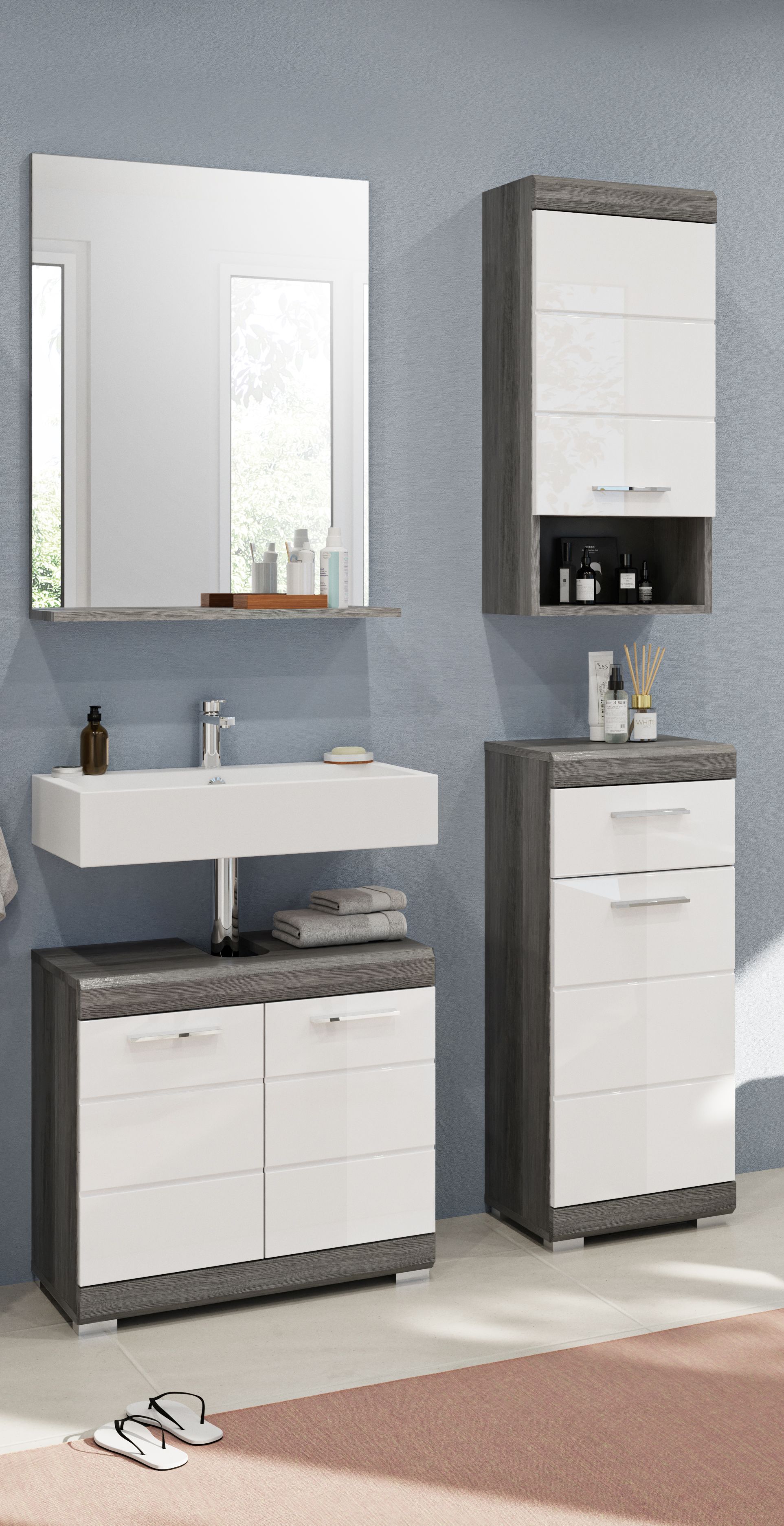 Conférez à votre salle de bains un look tendance avec notre ensemble de meubles décor argent fumé et finition ton blanc ultra brillant. Avec son design moderne et sa fabrication de qualité, il donnera une touche contemporaine à votre intérieur. Découvrez dès maintenant l’alliance parfaite entre style et fonctionnalité pour votre salle de bains !