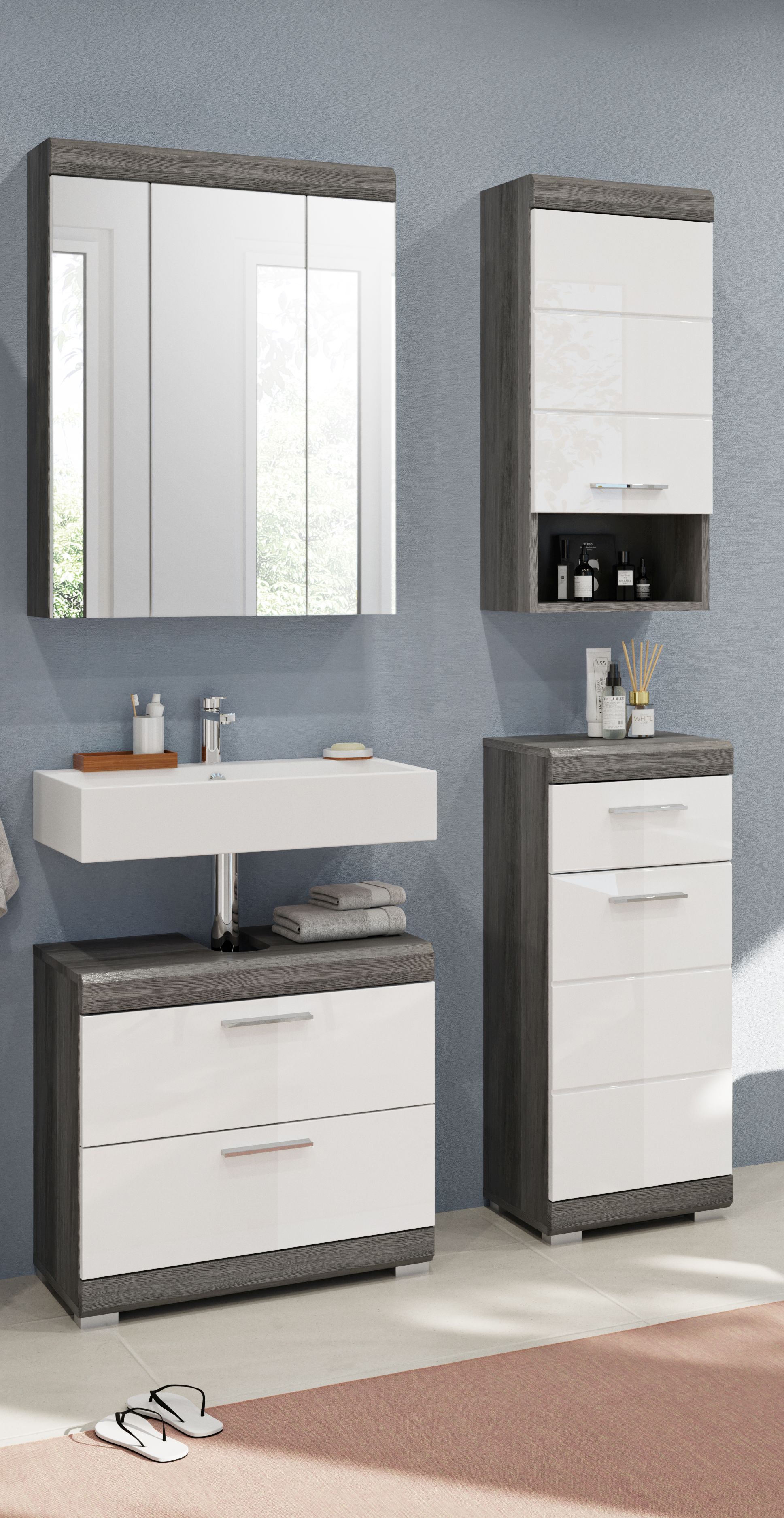 • Fonctionnalité : avec un vaste espace de rangement et une répartition bien pensée, cet ensemble dispose d’une place suffisante pour divers accessoires en vue d’un stockage pratique et facilement accessible dans la salle de bains ou la buanderie.