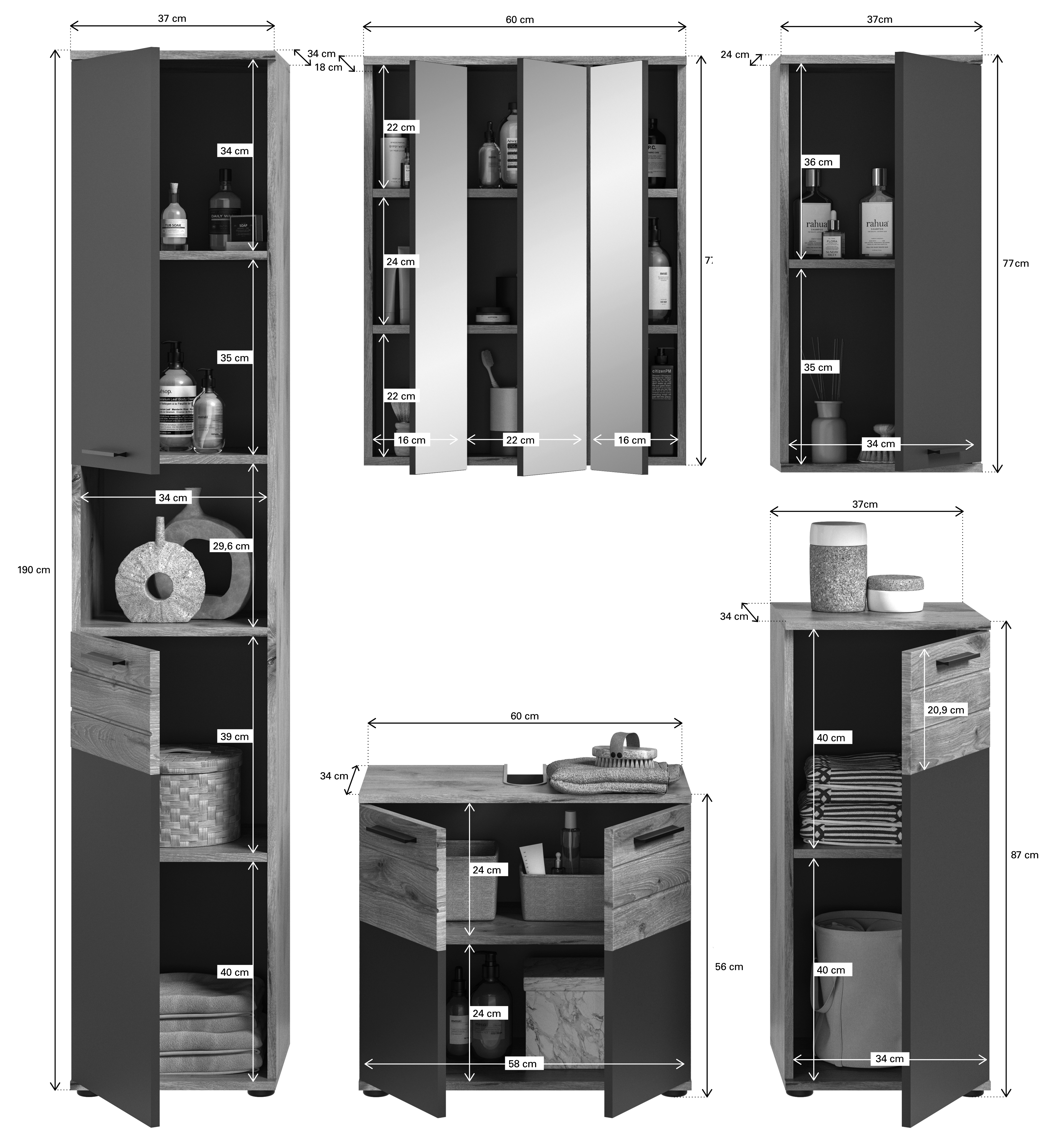 | Meuble colonne | 37 | 190 | 34 |
