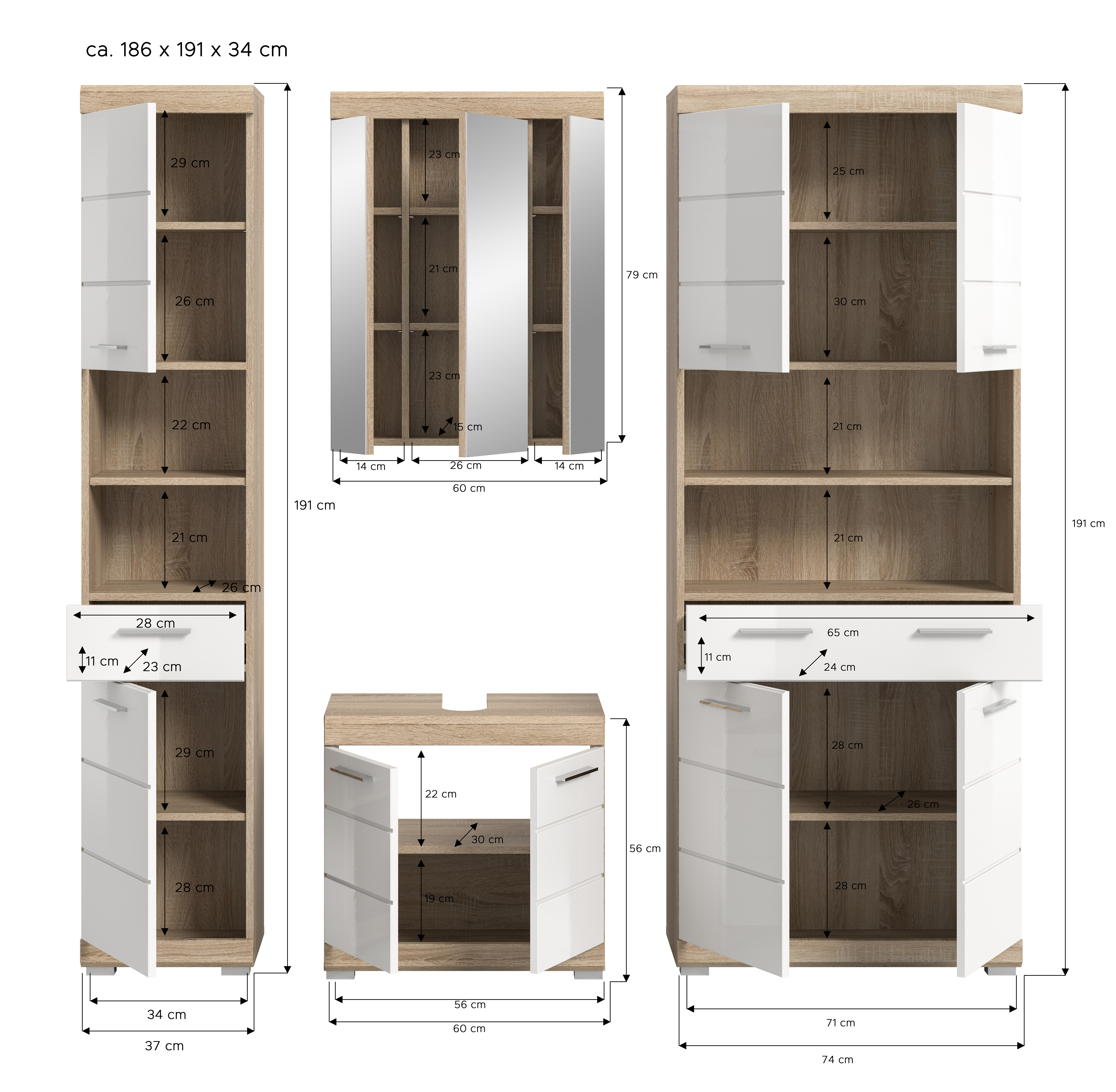 | Meuble colonne large | 74 | 191 | 31 |