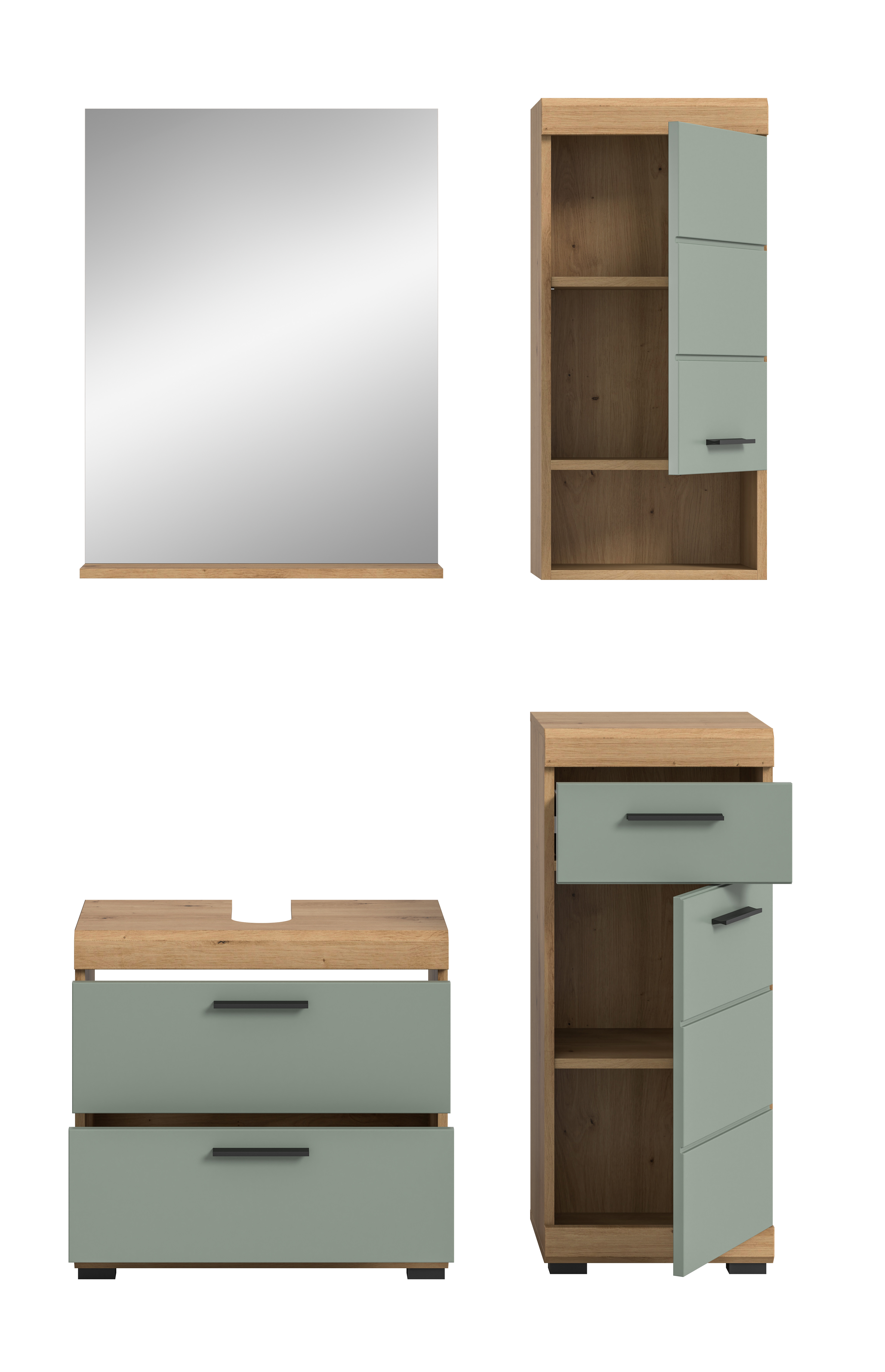 • Design/style : la combinaison réussie entre décor ton sauge et décor chêne Artisan confère à cet ensemble un aspect moderne et attrayant qui embellit la pièce.