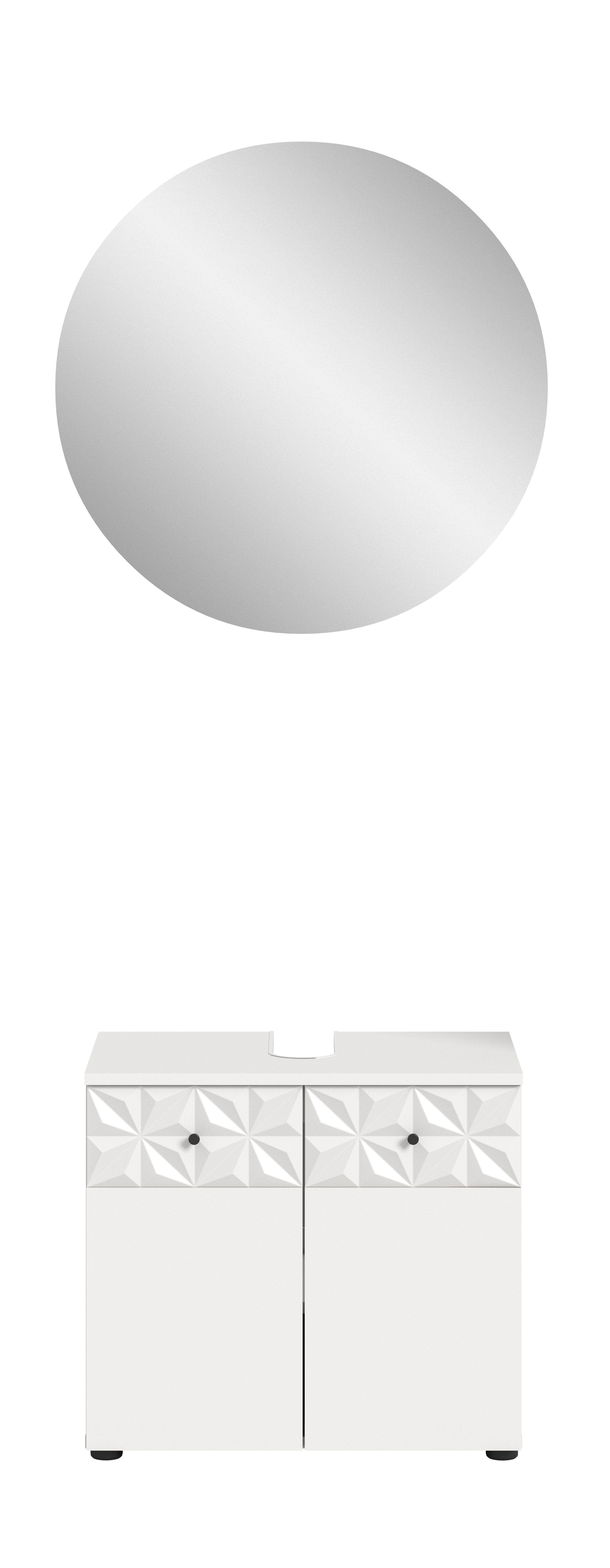 • Design/style : la façade moderne en mélaminé blanc crée un rendu lumineux et intemporel qui rend la salle de bains accueillante et agréable. Les poignées en métal noir apportent une touche élégante et contrastée.