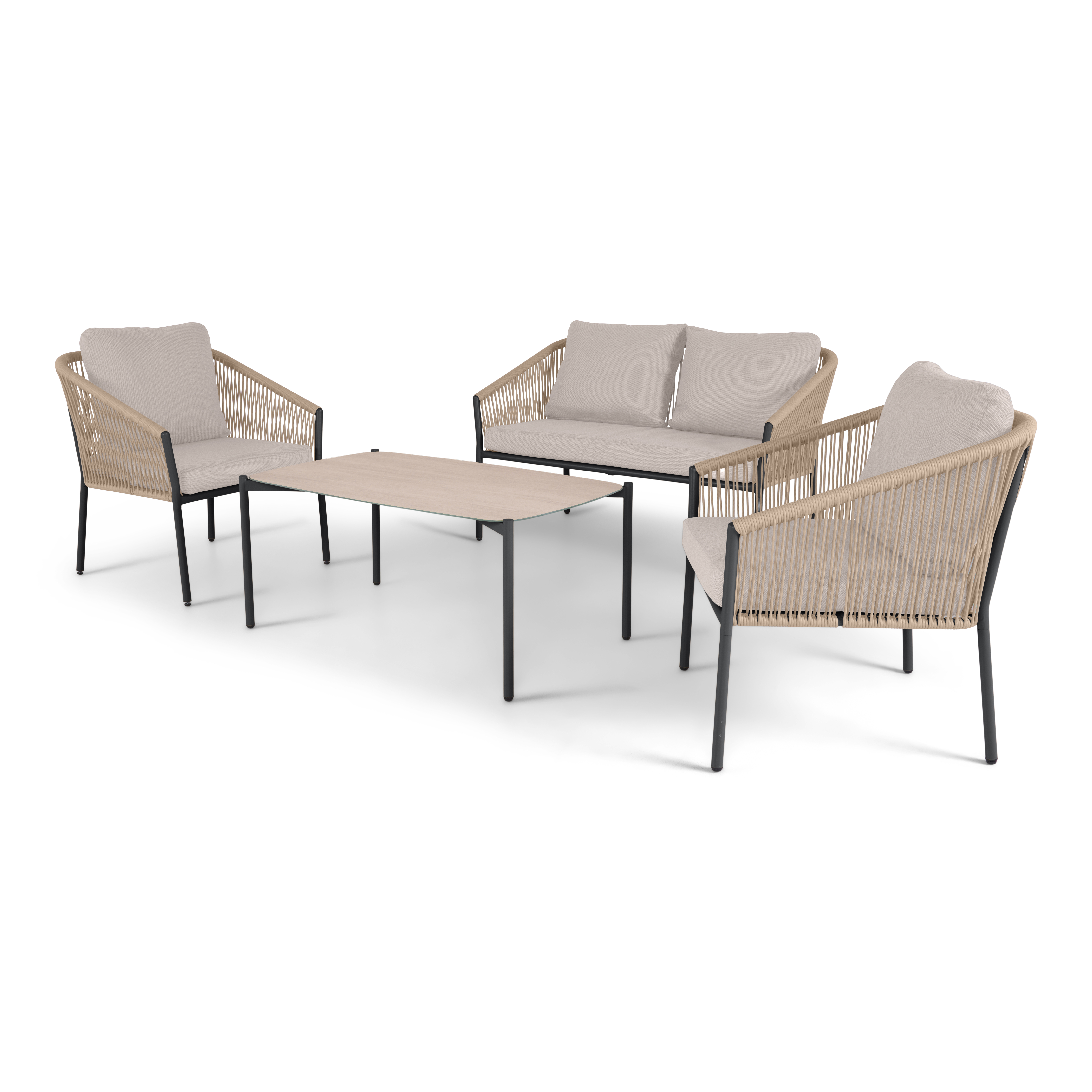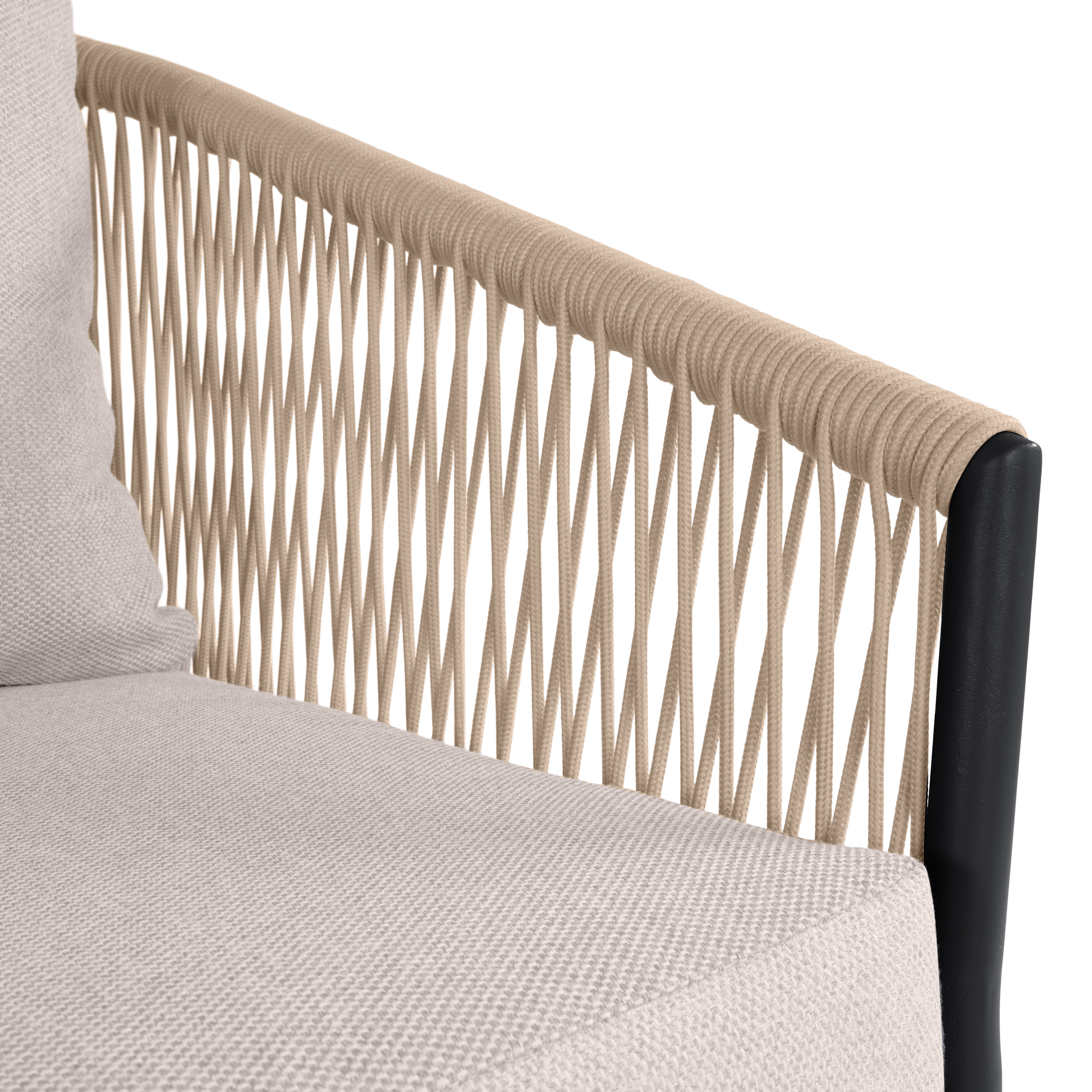 Parties imitation rotin : Polywicker ton terre glaise (résine tressée résistante aux intempéries : il s’agit ici d’une sorte de textile robuste fabriqué à partir d'une résine synthétique comme le polyéthylène et tissé de manière à imiter le rotin)