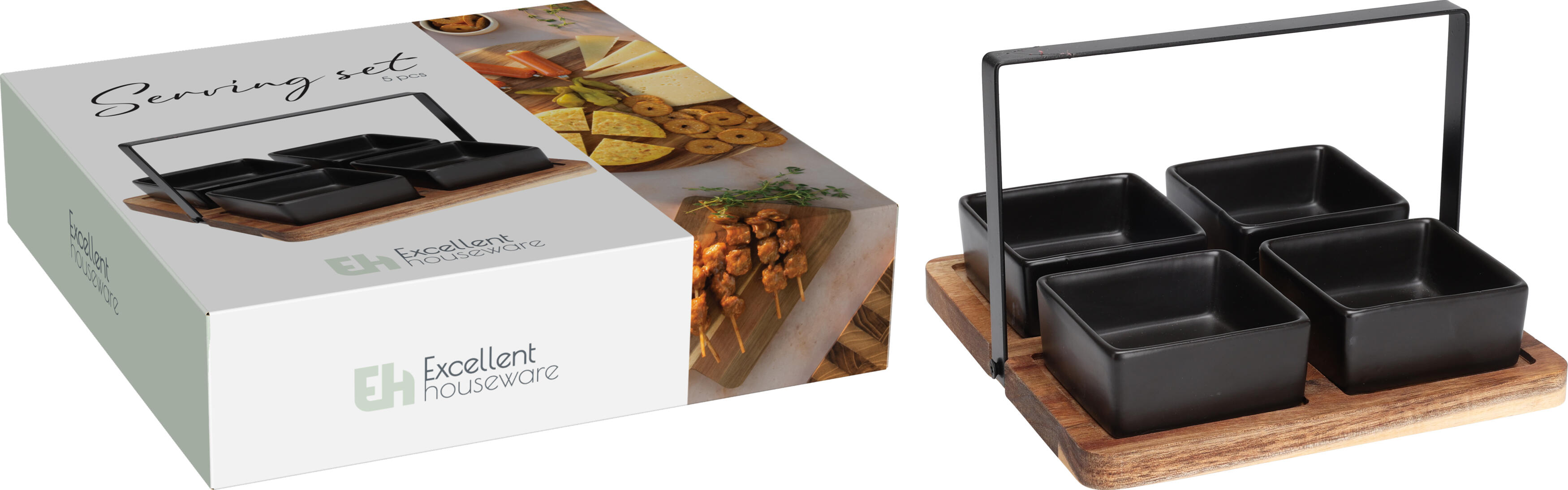 1 service apéro comprenant 4 coupelles et 1 plateau rond