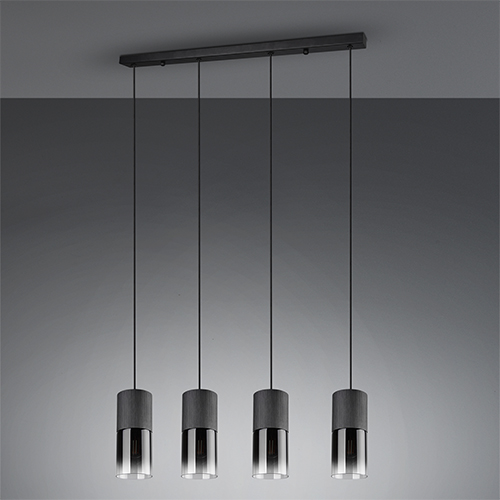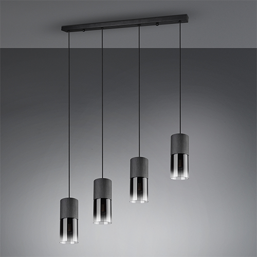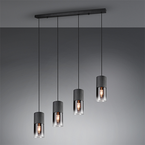 La suspension tendance ROBIN attirera tous les regards grâce à son design chic en verre. Vous pourrez positionner la lampe au-dessus de la table de la salle à manger où elle sera du plus bel effet et éclairera le coin repas de façon optimale. La suspension 4 ampoules a une longueur maximale de 150 cm et une largeur de 80,5 cm. Grâce au coloris noir mat et au verre fumé, le luminaire s'intègre facilement dans différents styles d'intérieurs. Pour profiter d'une lampe économe en énergie, il est recommandé d'utiliser une ampoule LED. Ce type d'ampoules est une alternative idéale aux ampoules halogènes puisqu'elles diffusent une lumière de qualité tout en réalisant jusqu'à 80 % d'économie d'énergie. De plus, les ampoules LED disposent d'une durée de vie accrue pour une production de chaleur moindre et favorisent la protection de l'environnement.