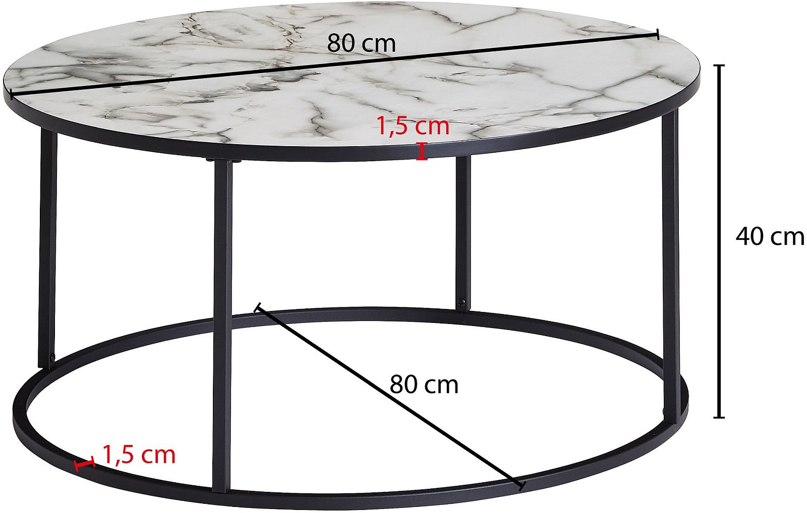 DIMENSIONS ✔ Largeur : 80 cm // Hauteur : 40 cm // Profondeur : 80 cm // Diamètre plateau de table : 80 cm // Épaisseur plateau de table : 1,5 cm.