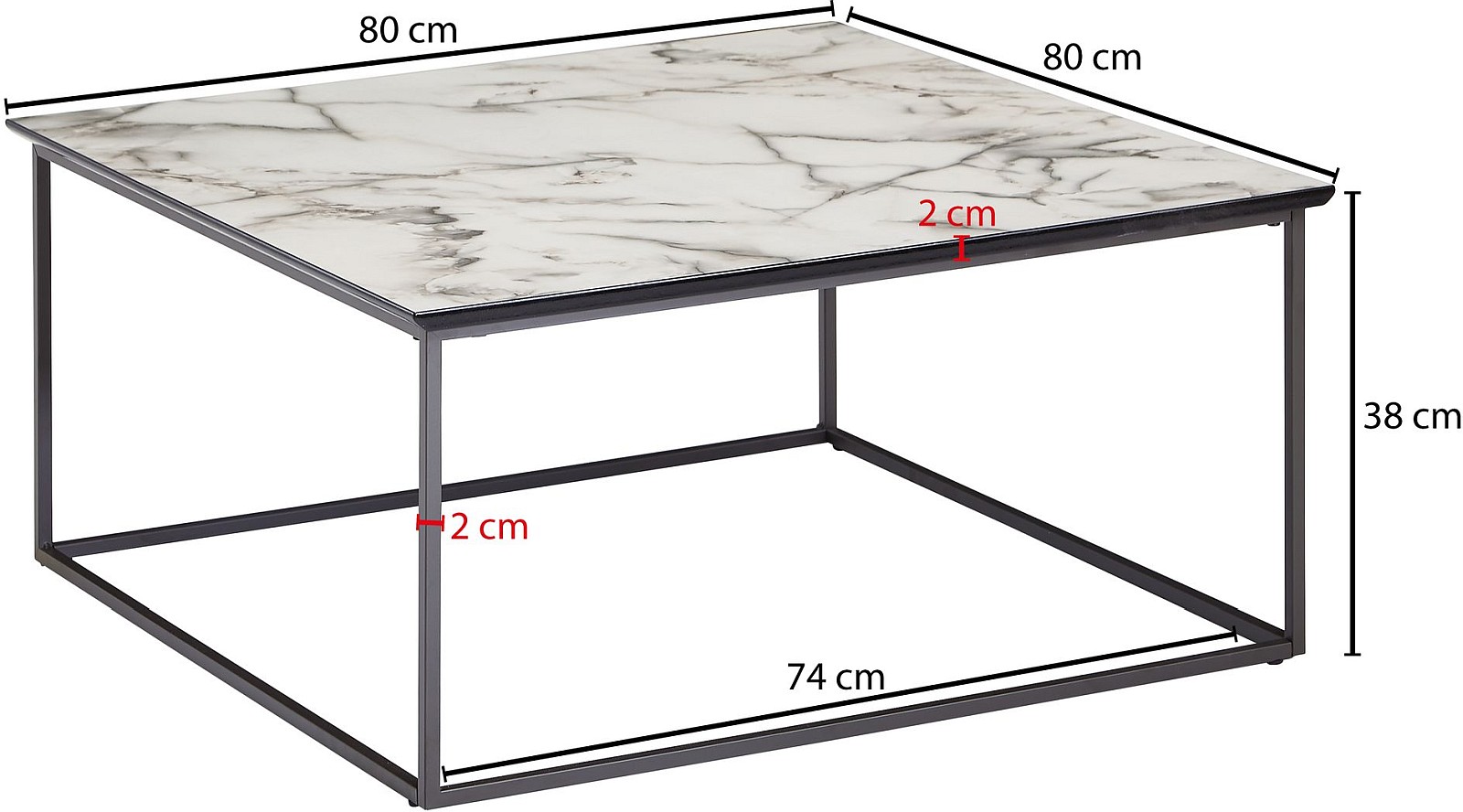 DIMENSIONS ✔ Largeur : 80 cm // Hauteur : 38 cm // Profondeur : 80 cm // Épaisseur plateau de table : 2 cm.