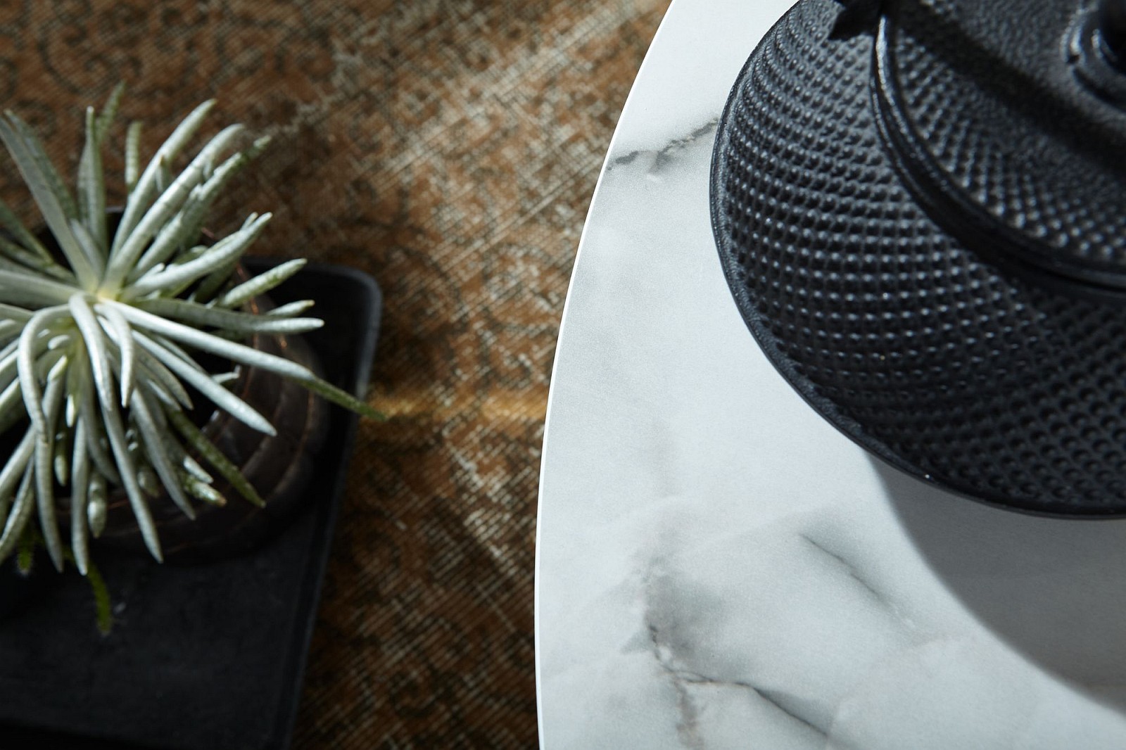 - Plateau de table : ton blanc (aspect marbre ultra brillant)