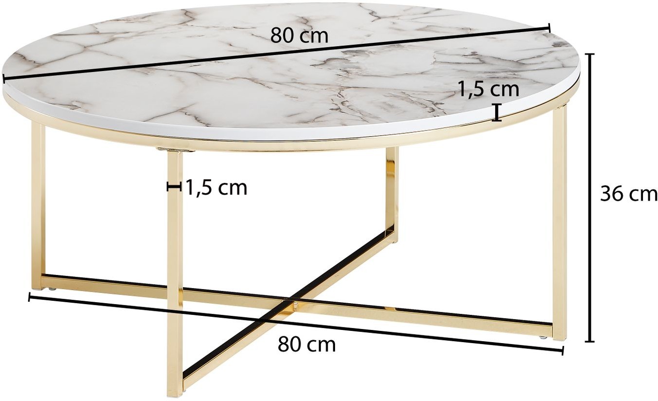 DIMENSIONS ✔ Largeur : 80 cm // Hauteur : 36 cm // Profondeur : 80 cm // Diamètre plateau de table : 80 cm // Épaisseur plateau de table : 1,5 cm.