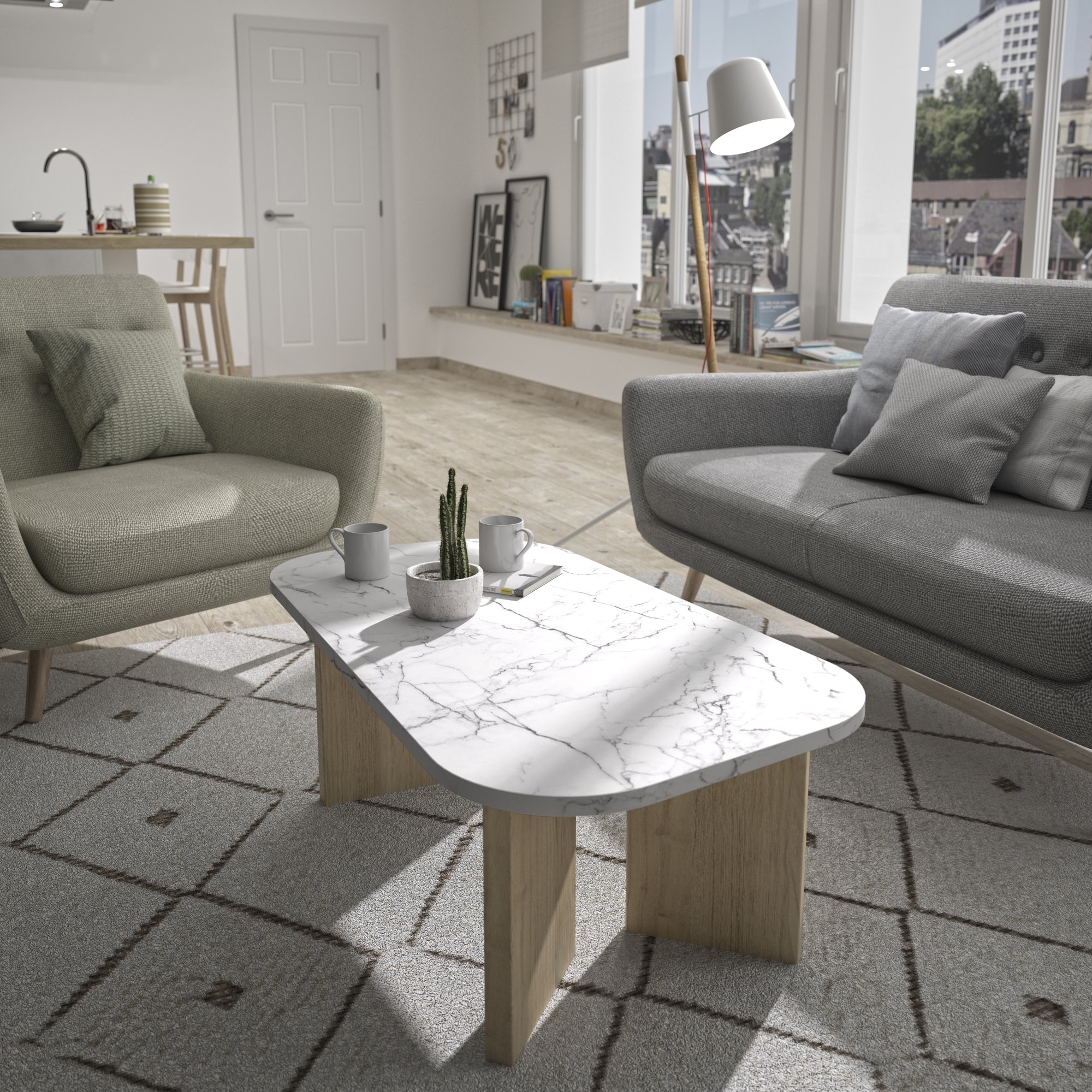 - Plateau de 22 mm d’épaisseur aspect marbre avec impression numérique, finition laquée pour une excellente durabilité