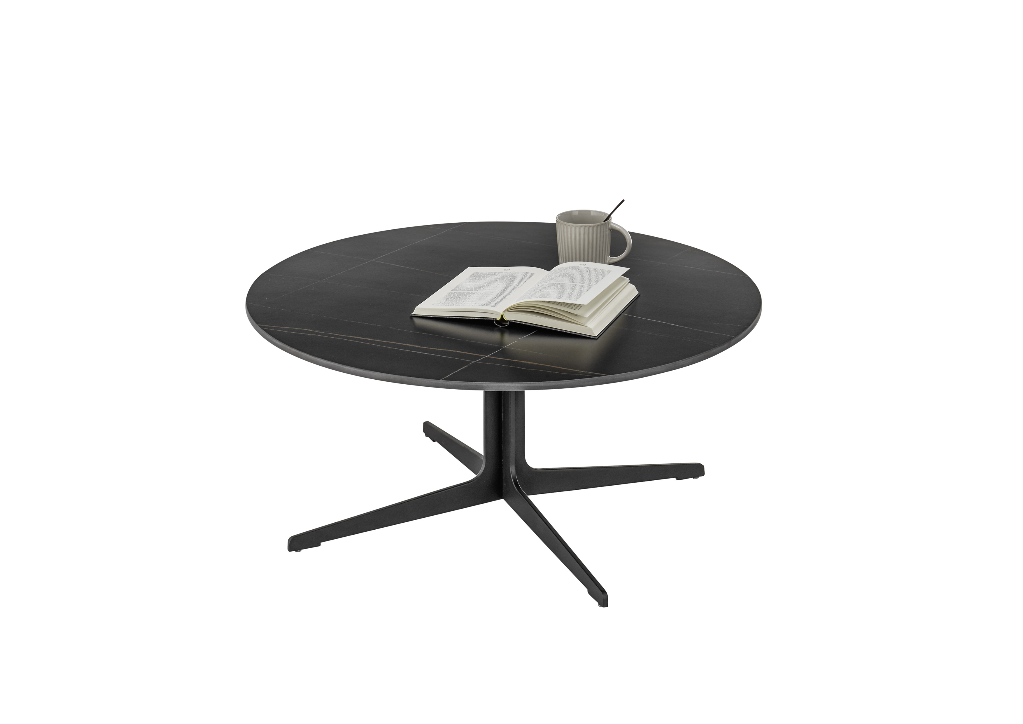 La table basse ronde se présente avec un plateau en céramique de haute qualité dans un noir élégant et un piètement métallique stable noir mat, idéal pour les salons modernes, les espaces lounge ou les coins salon confortables. La surface en céramique robuste est résistante aux rayures et à la chaleur, facile d'entretien et confère au meuble un aspect élégant et intemporel qui peut être combiné de nombreuses façons. Grâce à sa forme ronde et compacte, la table crée un effet d'espace ouvert et est pratique pour poser des boissons, des snacks ou des objets décoratifs. Ses lignes épurées et ses matériaux de haute qualité allient fonctionnalité et style.