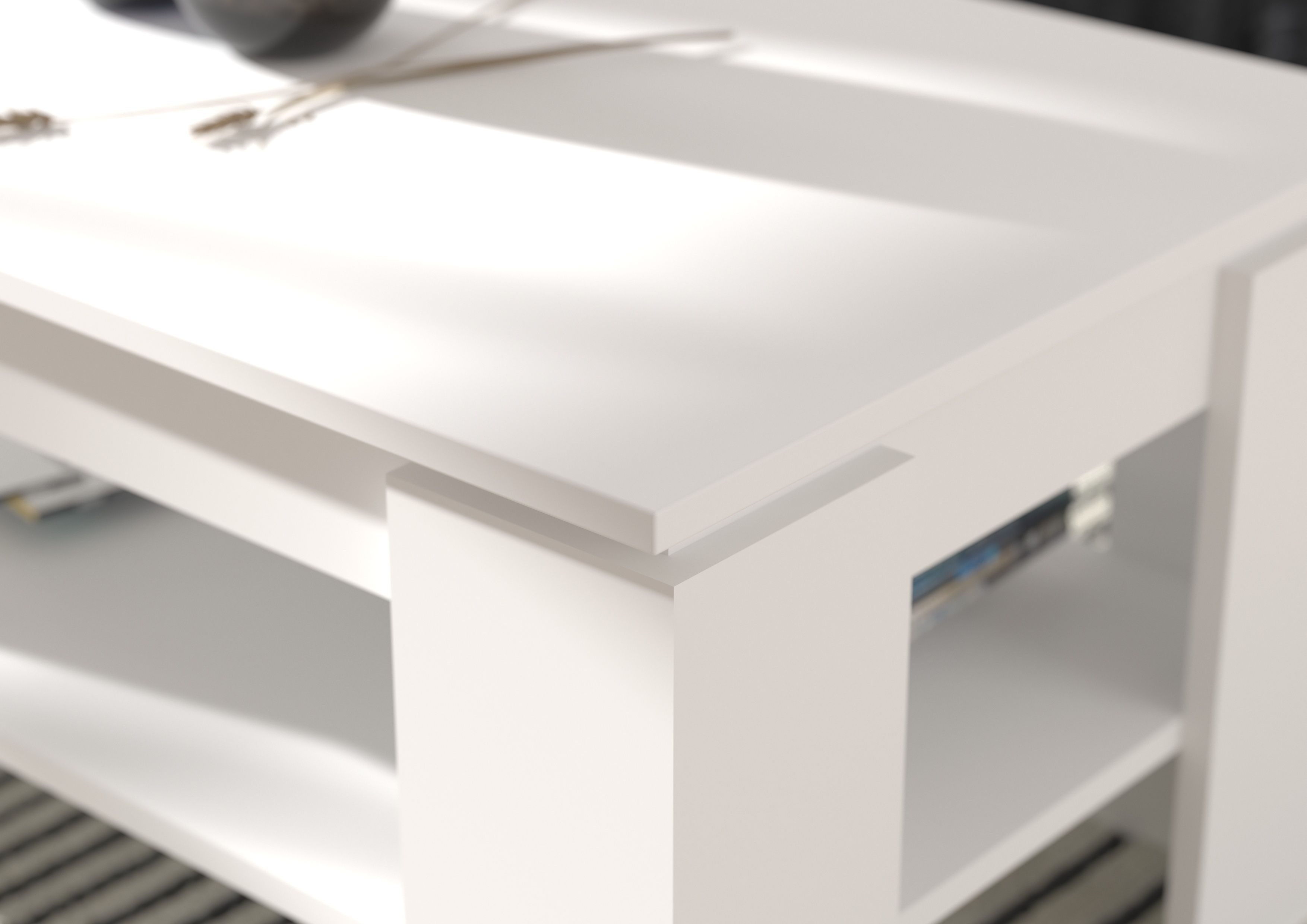 - Design/style : la table basse ton blanc est proposée dans un design minimaliste et moderne qui s'harmonise avec divers styles d'intérieurs tout en créant une atmosphère lumineuse et aérée dans le salon, la chambre d'ado, l'appartement, le studio, la salle à manger ou le couloir.