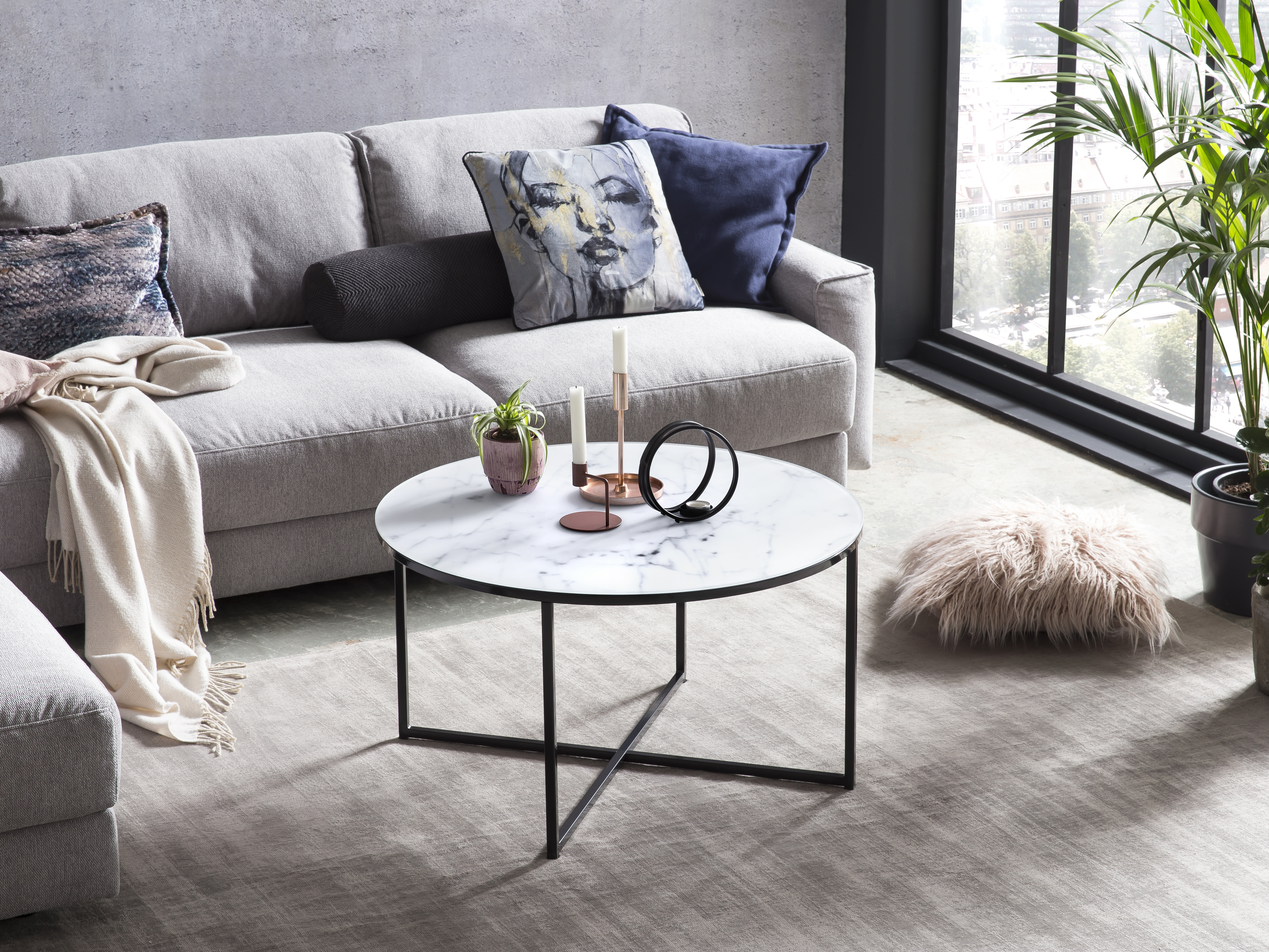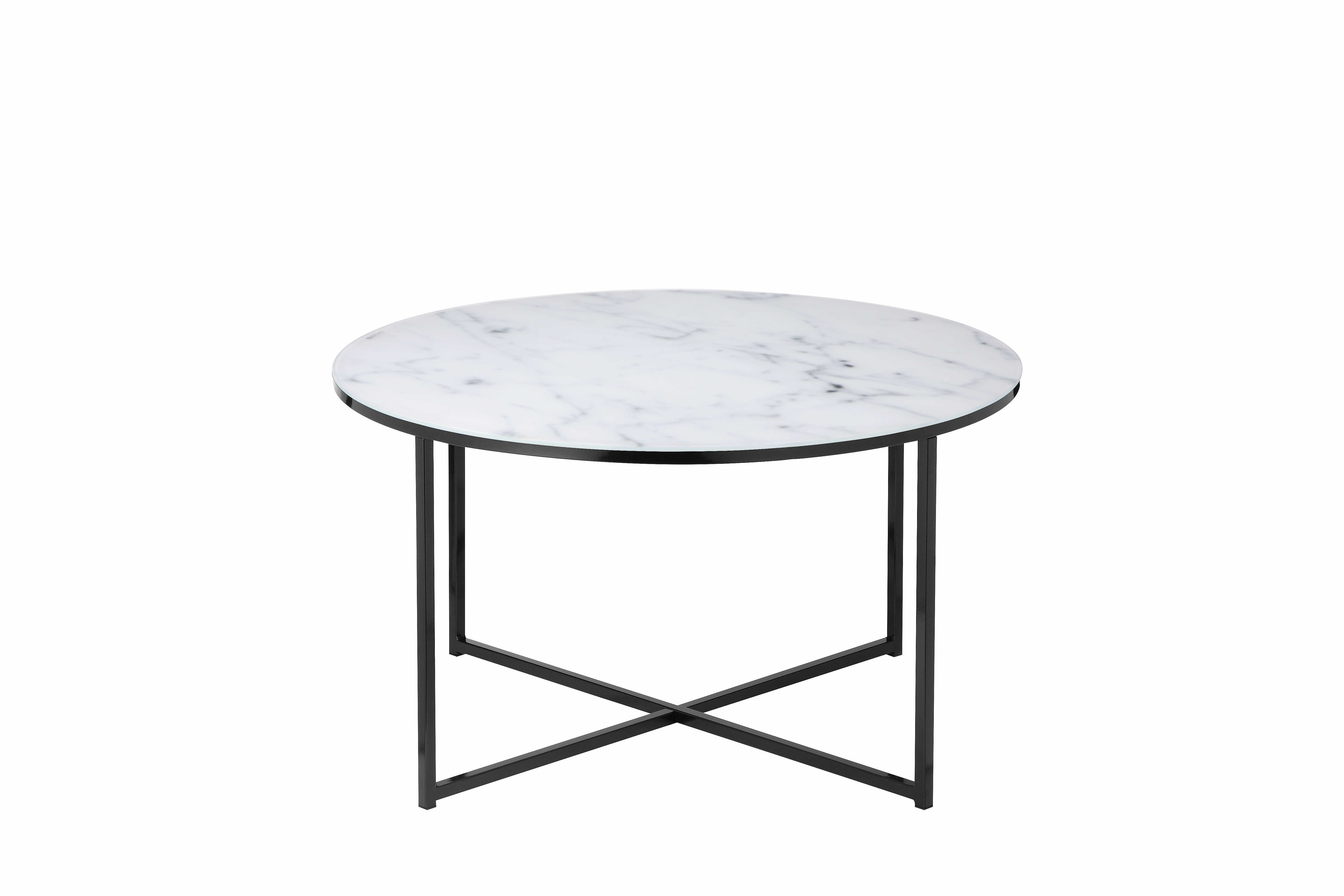 Cette table basse ronde combine un design moderne avec une touche d’extravagance. Le plateau en verre recouvert d'un film aspect marbre par le dessous se marie parfaitement avec le piètement en métal noir. La table basse offre suffisamment d’espace de rangement pour des magazines, des fruits, des snacks ou un vase de fleurs par exemple. Grâce à son design attrayant et à sa forme ronde, cette table basse peut être combinée avec de nombreux meubles et trouvera également sa place dans votre intérieur.