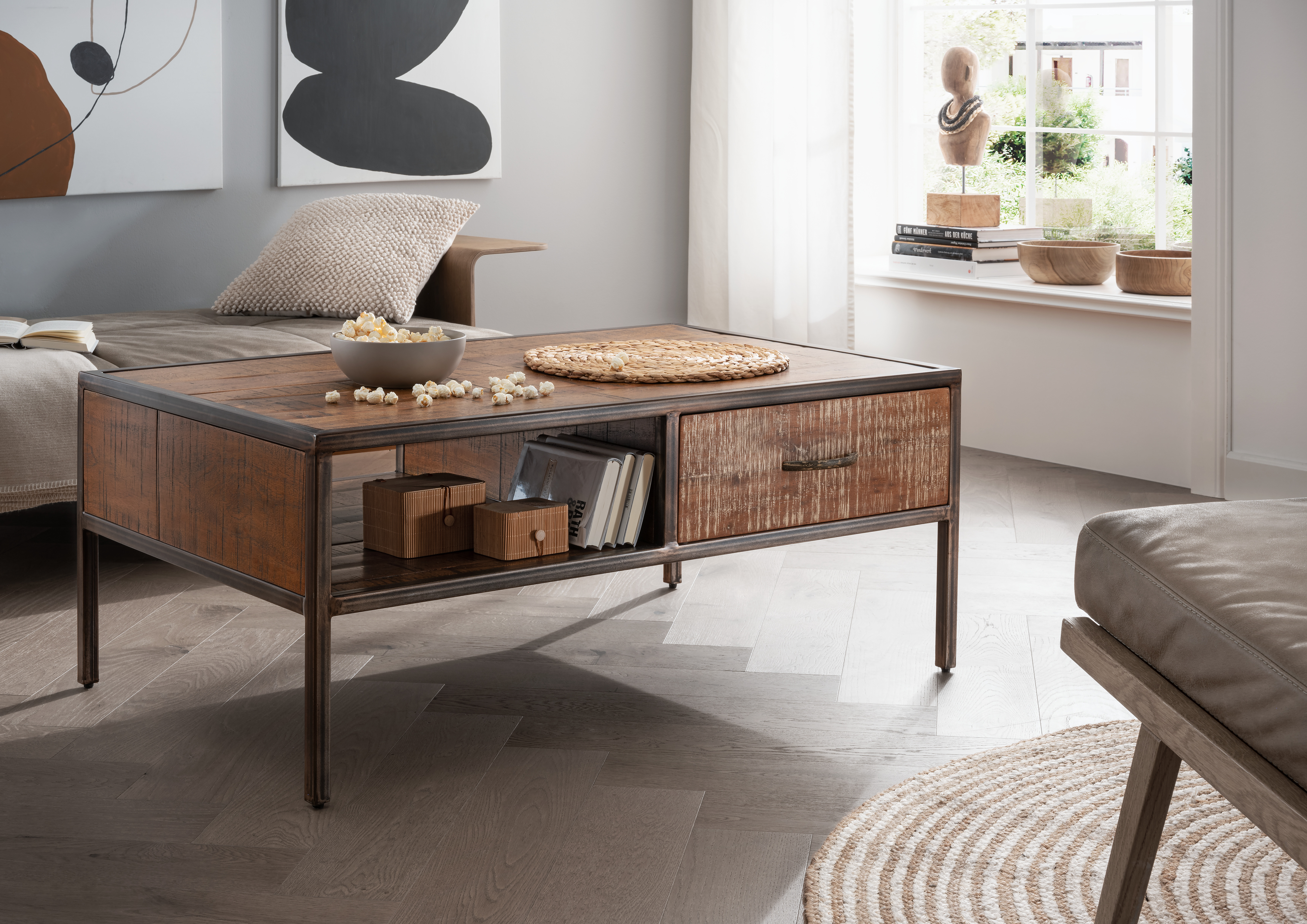 Vieux bois massif recyclé (Inde) avec cadre en métal (finition vintage)