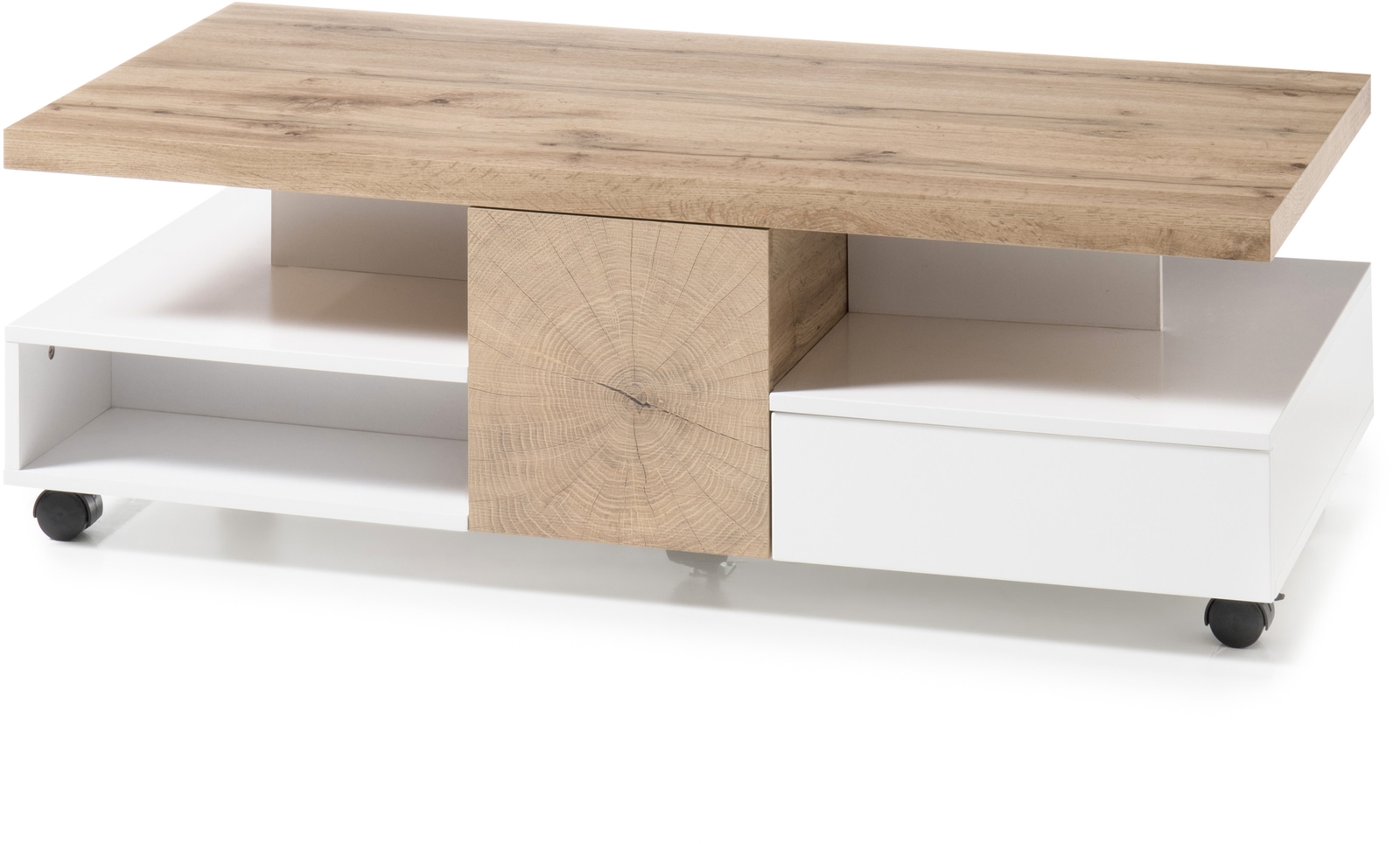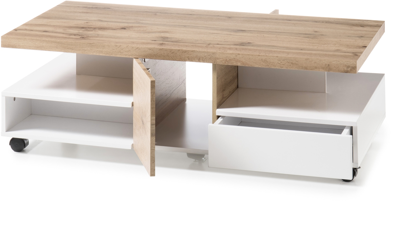 Plateau et bloc central : MDF (panneau de fibres de bois de densité moyenne) décor chêne