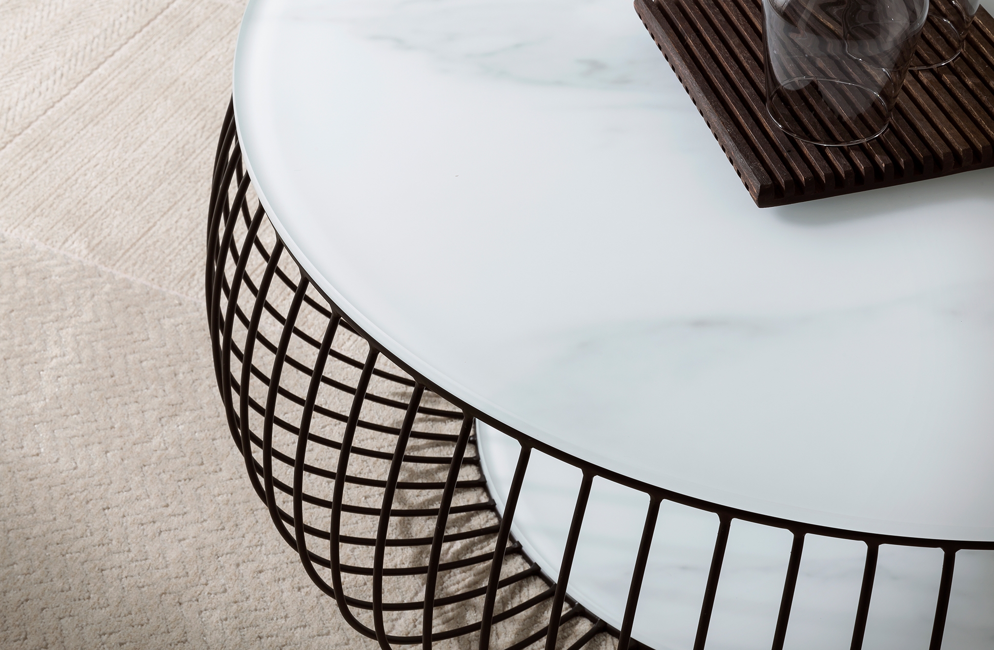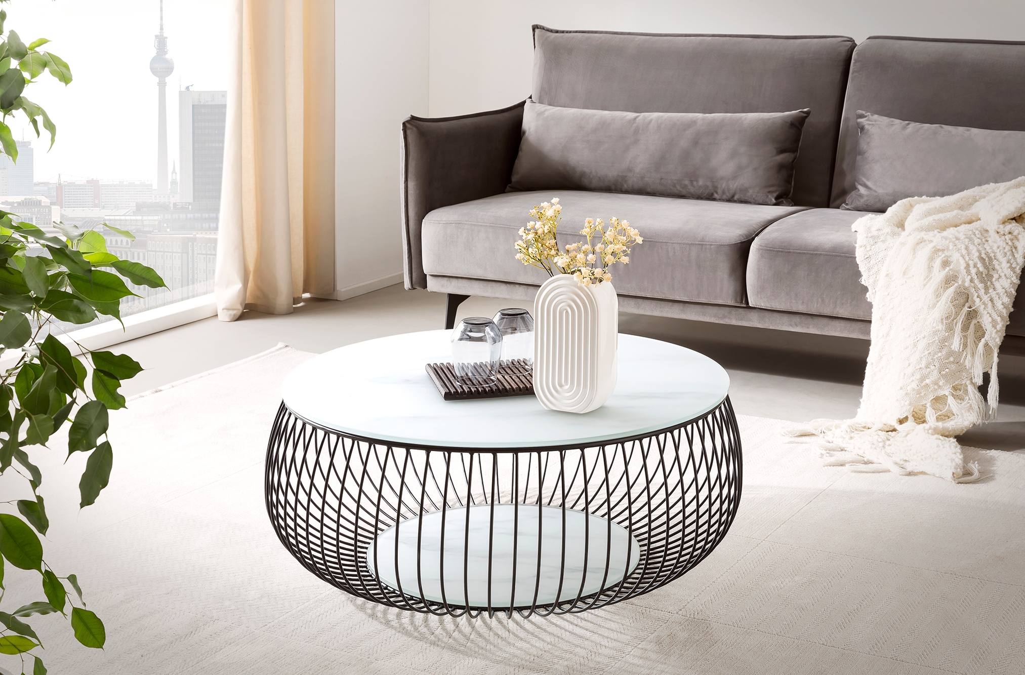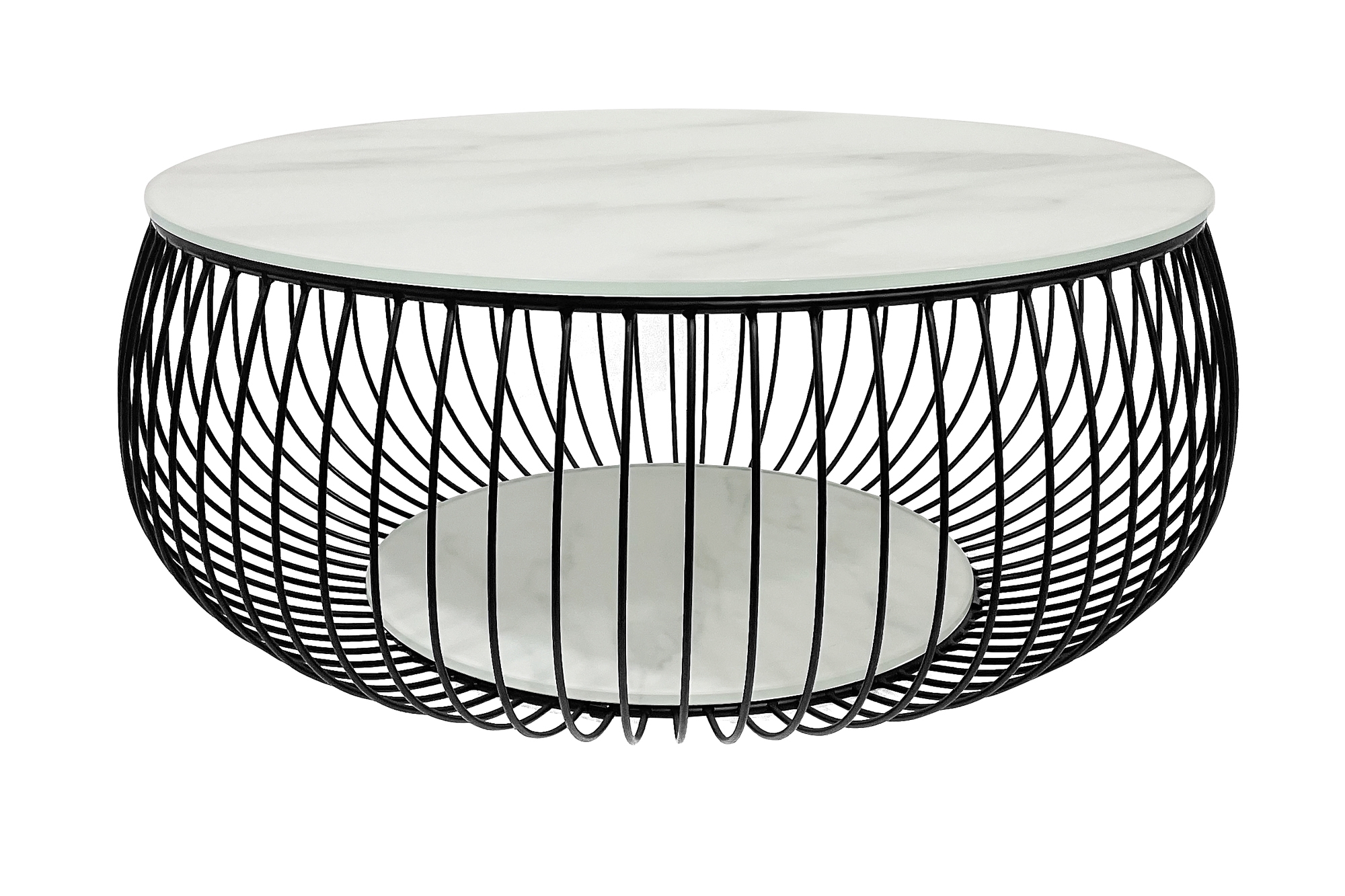Cette table ronde associe un design moderne et une touche d’extravagance. Le plateau de 10 mm d’épaisseur avec joli motif imprimé aspect marbre et le piètement filaire finition époxy ton noir viennent parfaire le look ultra cool. La table basse offre suffisamment de place pour poser des objets, par exemple des magazines, fruits, snacks ou un vase de fleurs. Grâce à son design attrayant et à sa forme ronde, cette table basse peut se combiner à de nombreux meubles ; elle trouvera ainsi facilement sa place dans votre intérieur. La surface de la table de salon est très facile d'entretien et robuste. Les petites saletés peuvent être aisément nettoyées avec un chiffon légèrement mouillé.
