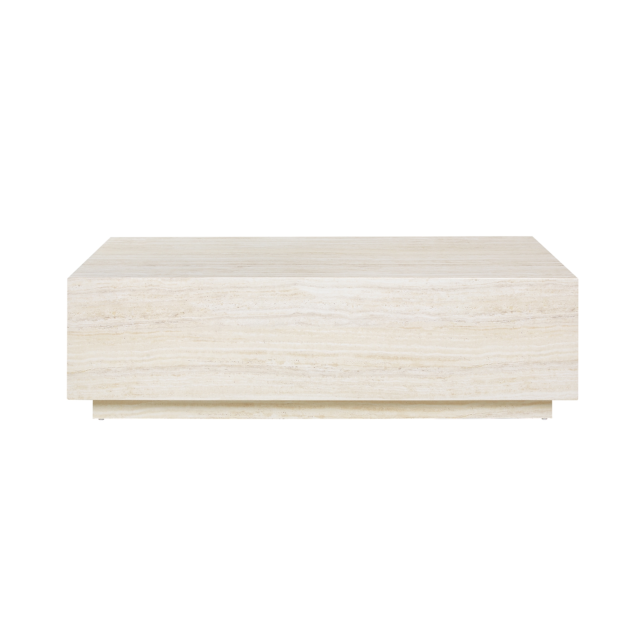 Cette table basse ultra chic confèrera instantanément à votre salon un aspect élégant. La forme rectangulaire avec une grande surface de rangement met particulièrement en valeur le superbe aspect travertin. La hauteur réduite vous permettra de créer une ambiance lounge tendance dans votre intérieur.