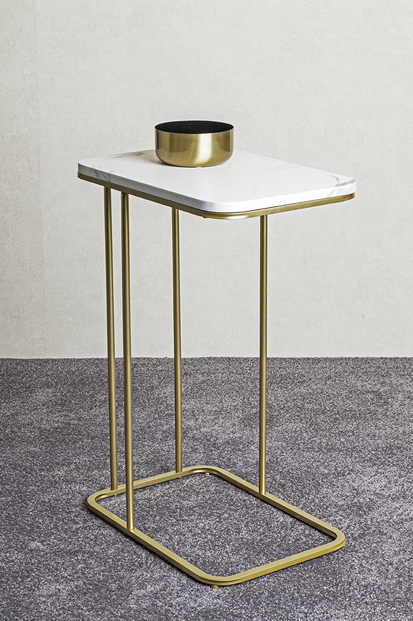Plateau de table : MDF (panneaux de fibres de bois de densité moyenne) aspect marbre blanc