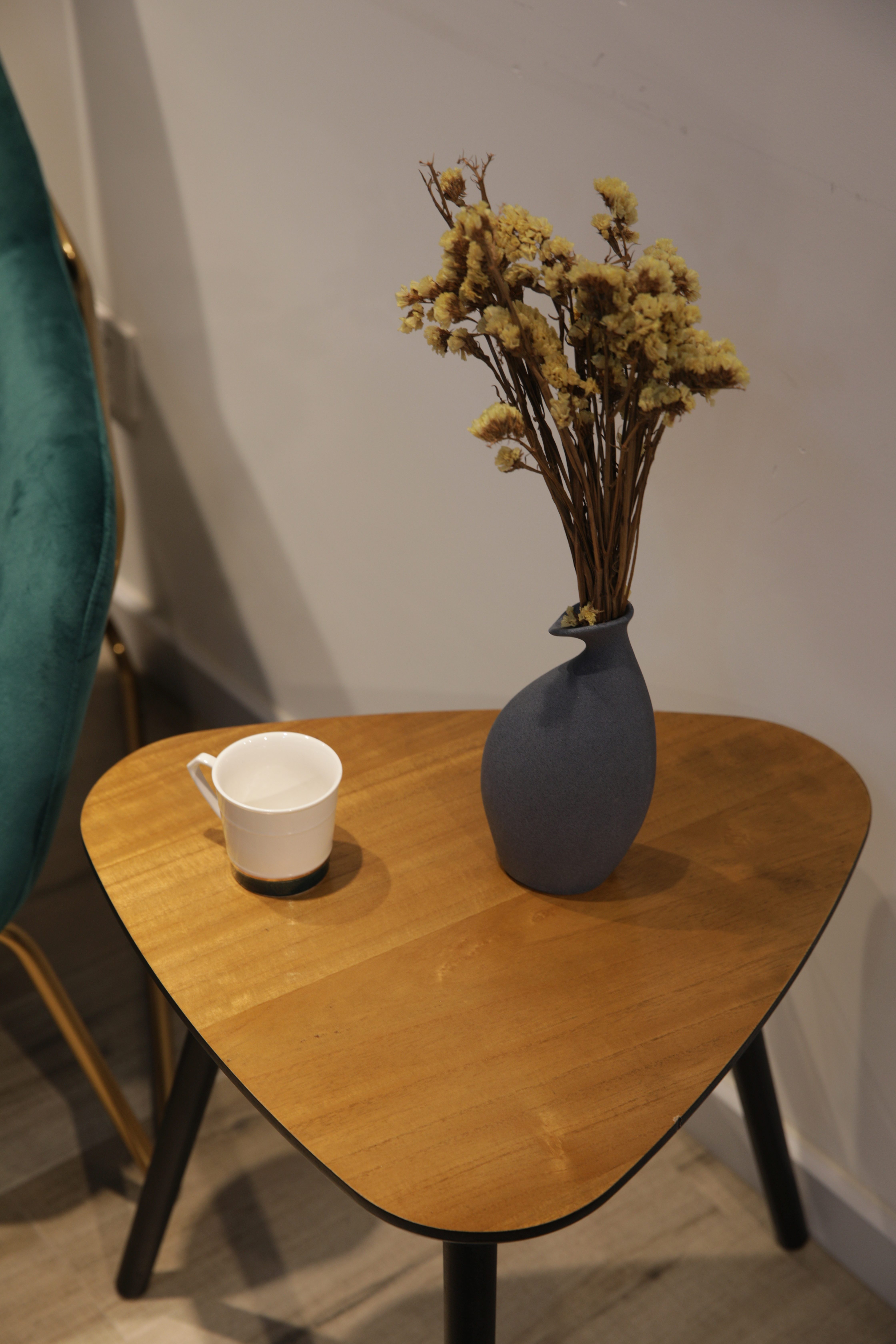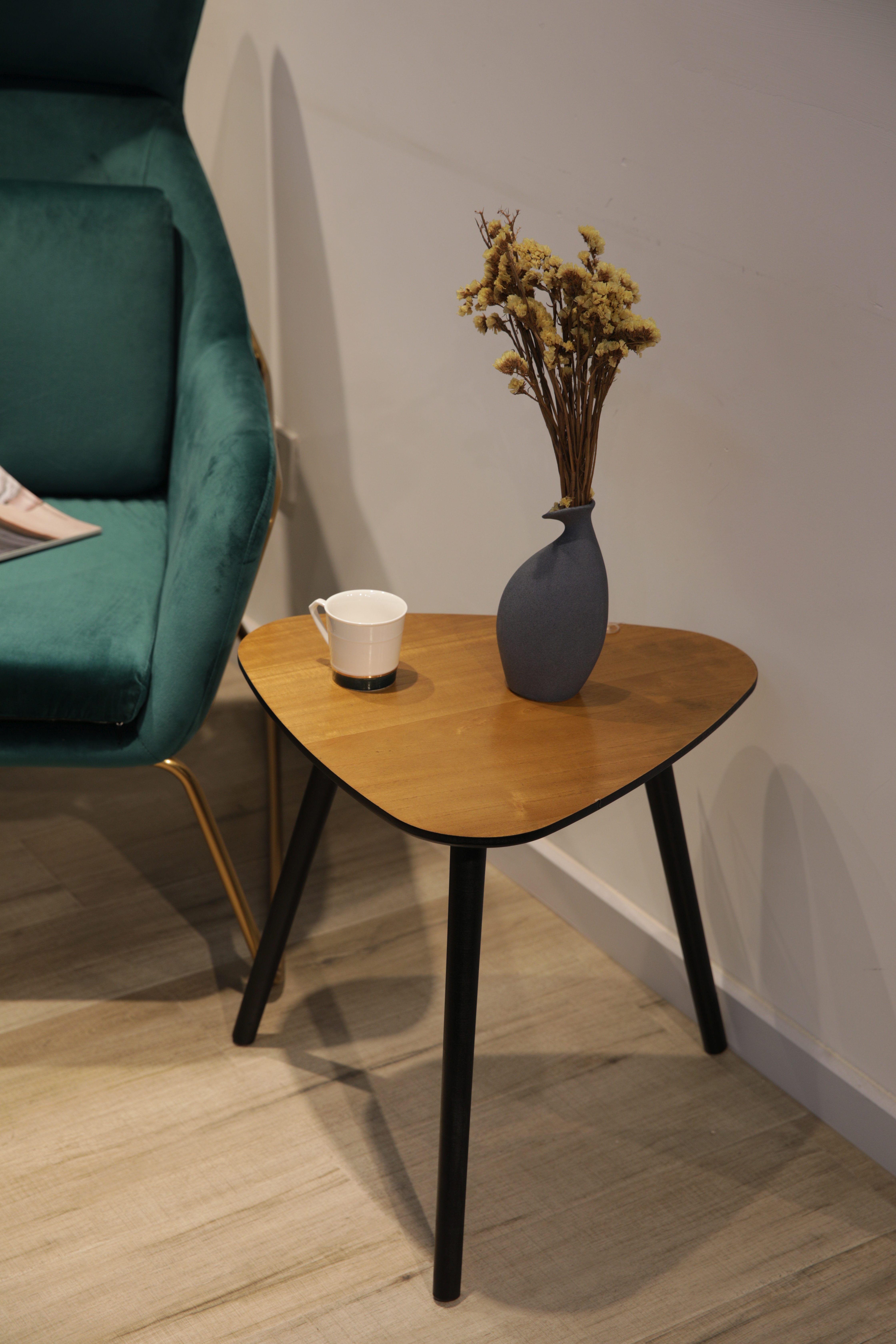 Un modèle chic, pratique et ultra tendance. Cette jolie table d'appoint avec 3 pieds en bois et un plateau triangulaire à bords arrondis s'intègre dans de nombreux intérieurs à la décoration tendance. A côté du fauteuil relax dans le coin lecture, en guise de chevet, comme petite table basse ou combinée à d'autres tables de différentes tailles, elle peut s'utiliser de différentes façons.