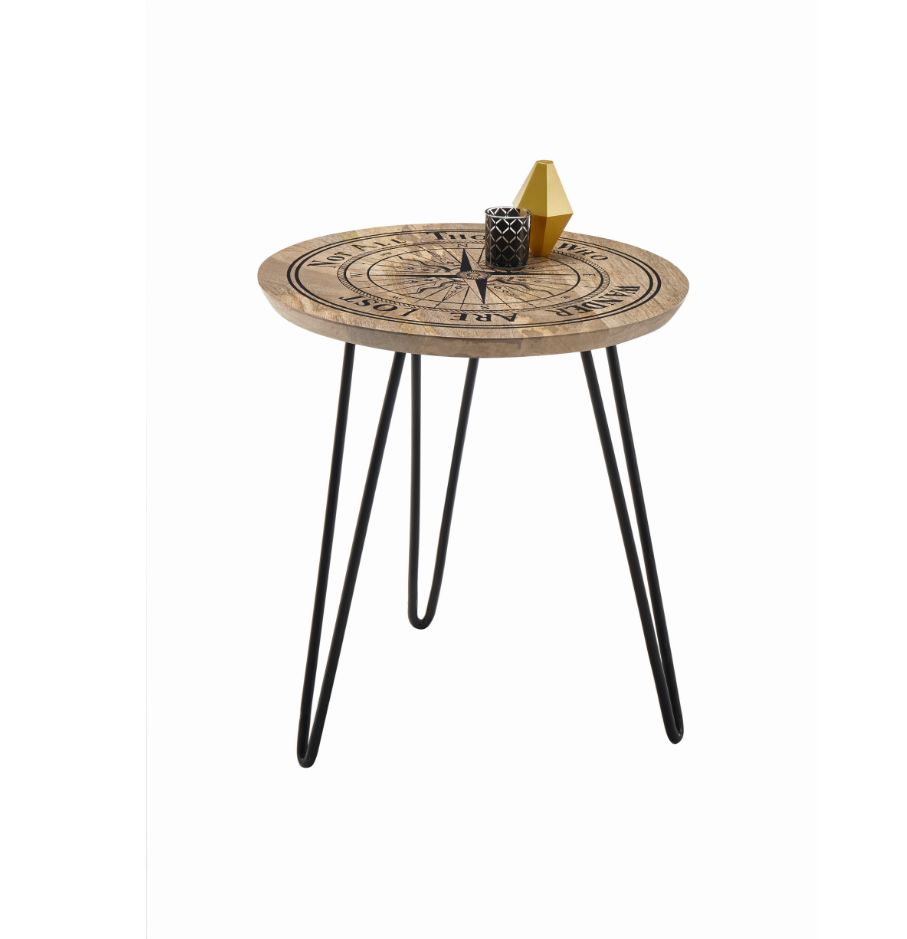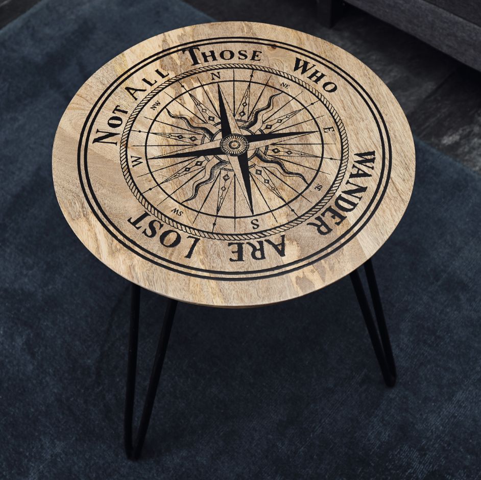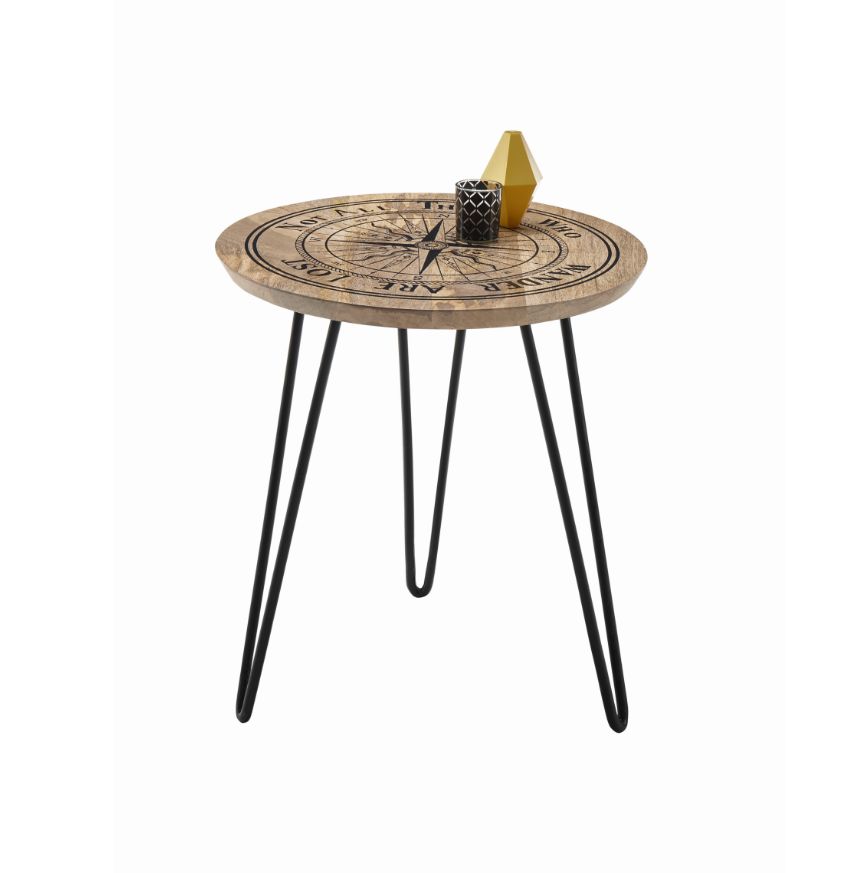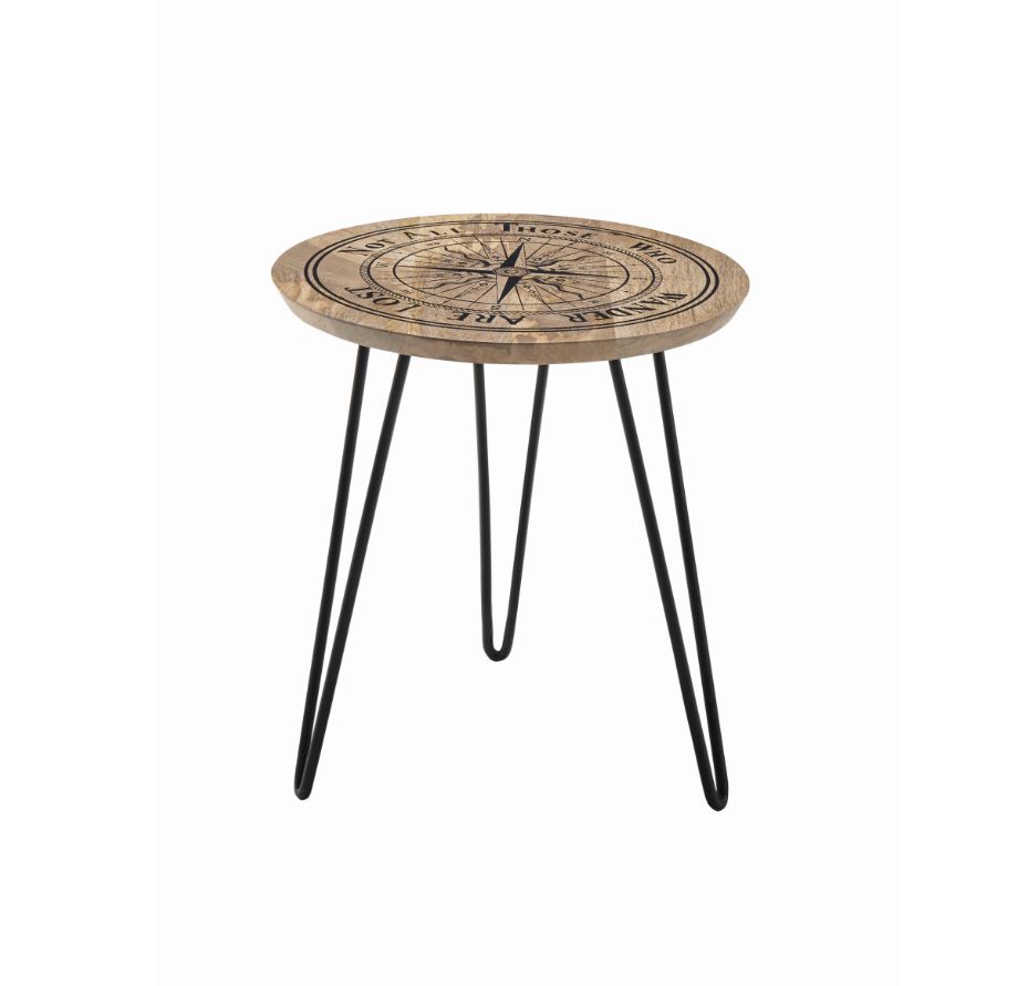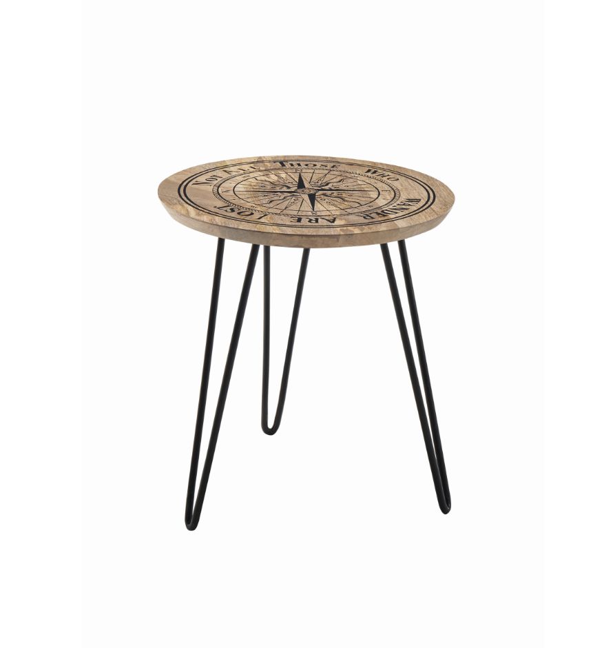 Plateau de table : bois de manguier massif (Inde) avec motif imprimé boussole