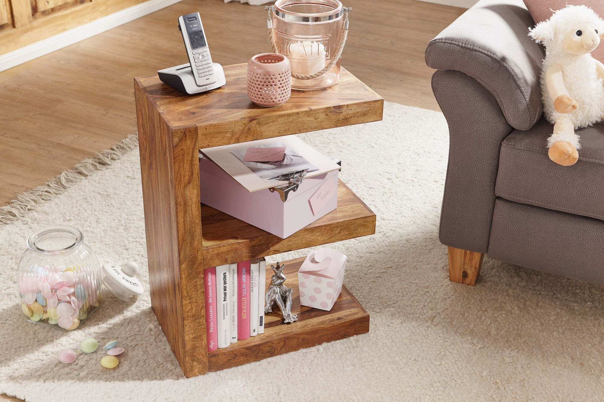 Pour quel type d'utilisation ? Grâce à sa hauteur de 60 cm, cette table peut être utilisée de façon polyvalente - Sa forme en E permet d'y poser journaux et magazines ou autres objets déco