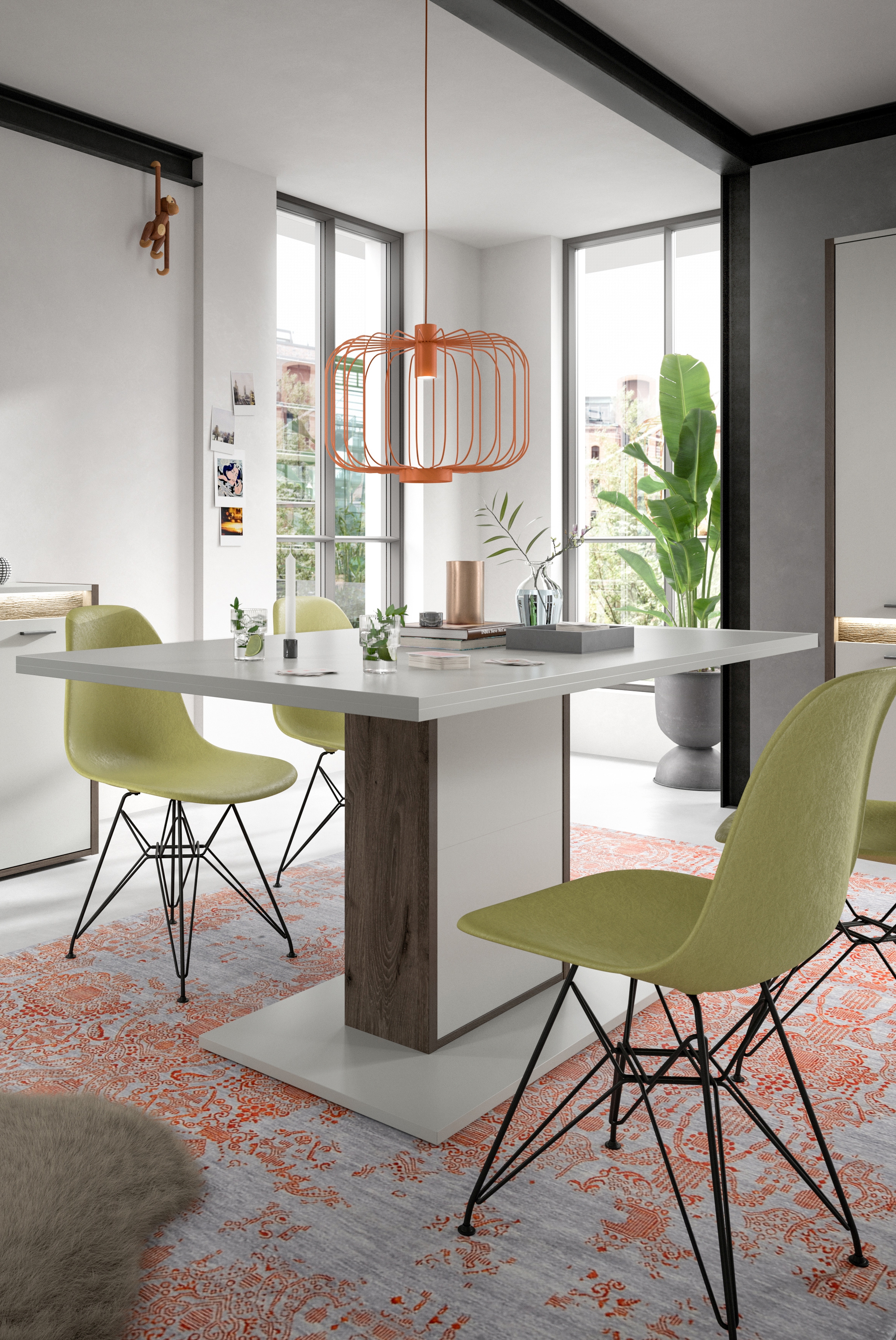- Design/style : la table à dîner moderne décor chêne Nox foncé et ton gris clair fascine par son élégance et sa sobriété ; proposée dans une harmonieuse combinaison de teintes, elle apportera une touche de raffinement à vos pièces.