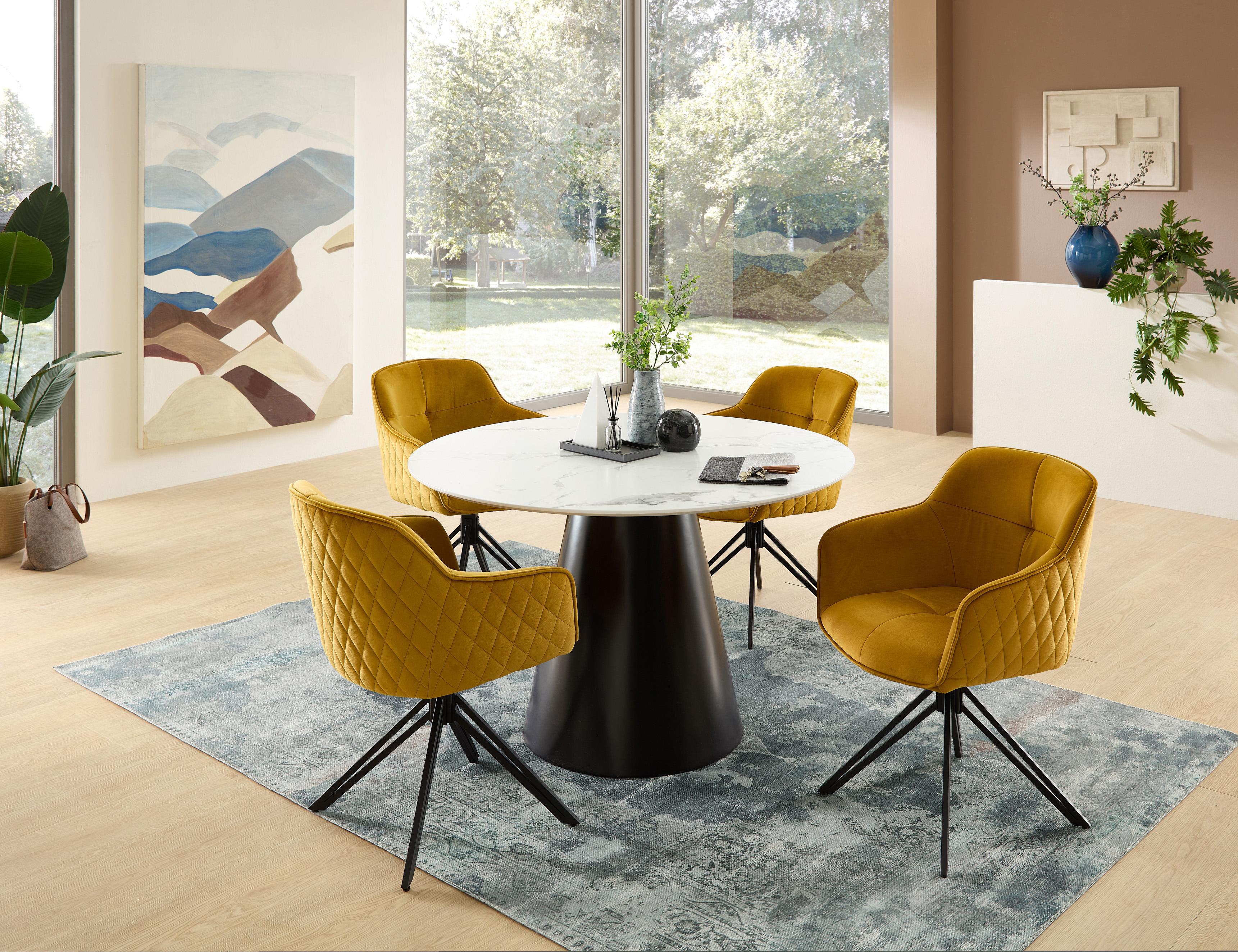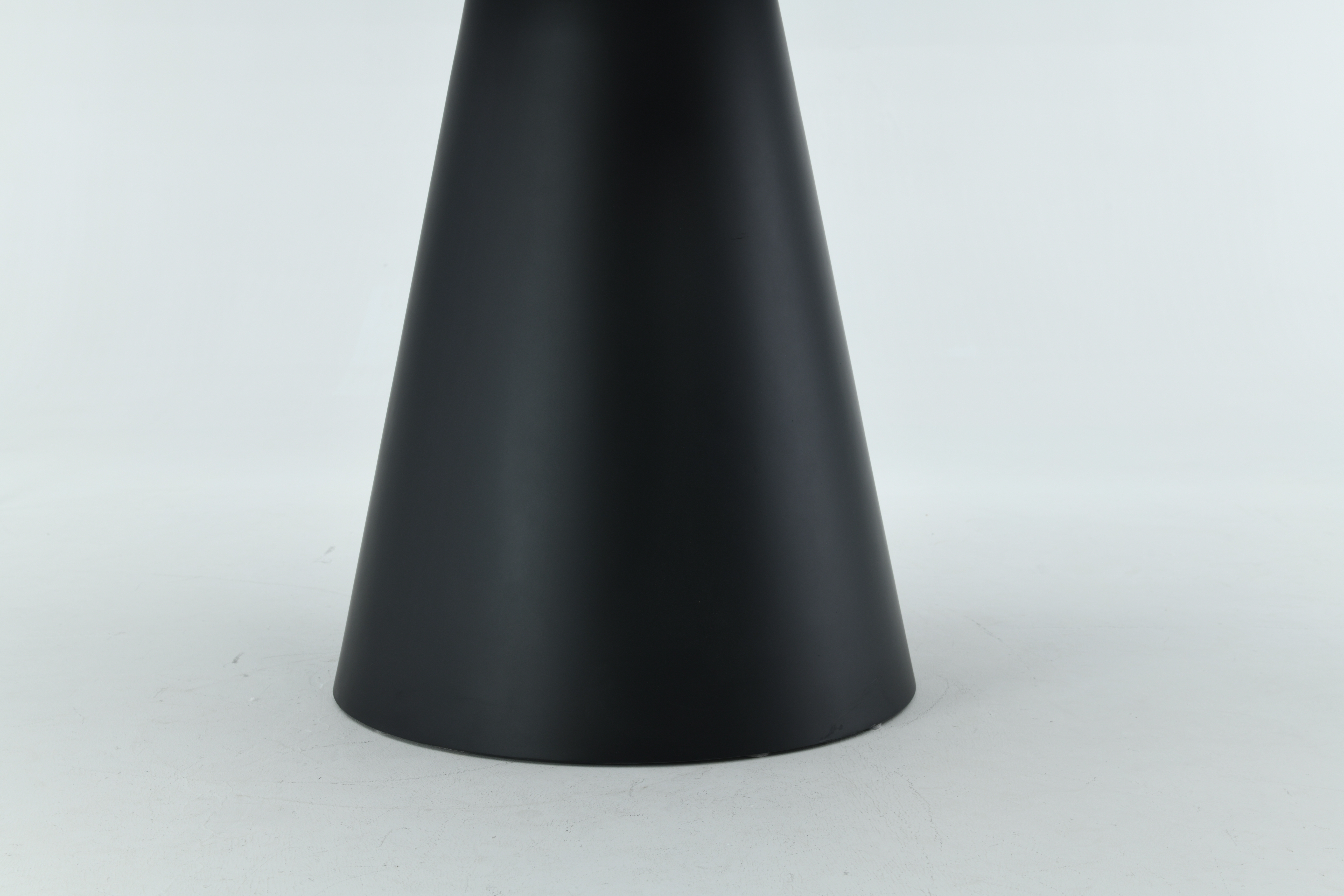Piètement : métal finition époxy ton noir, en forme de colonne conique