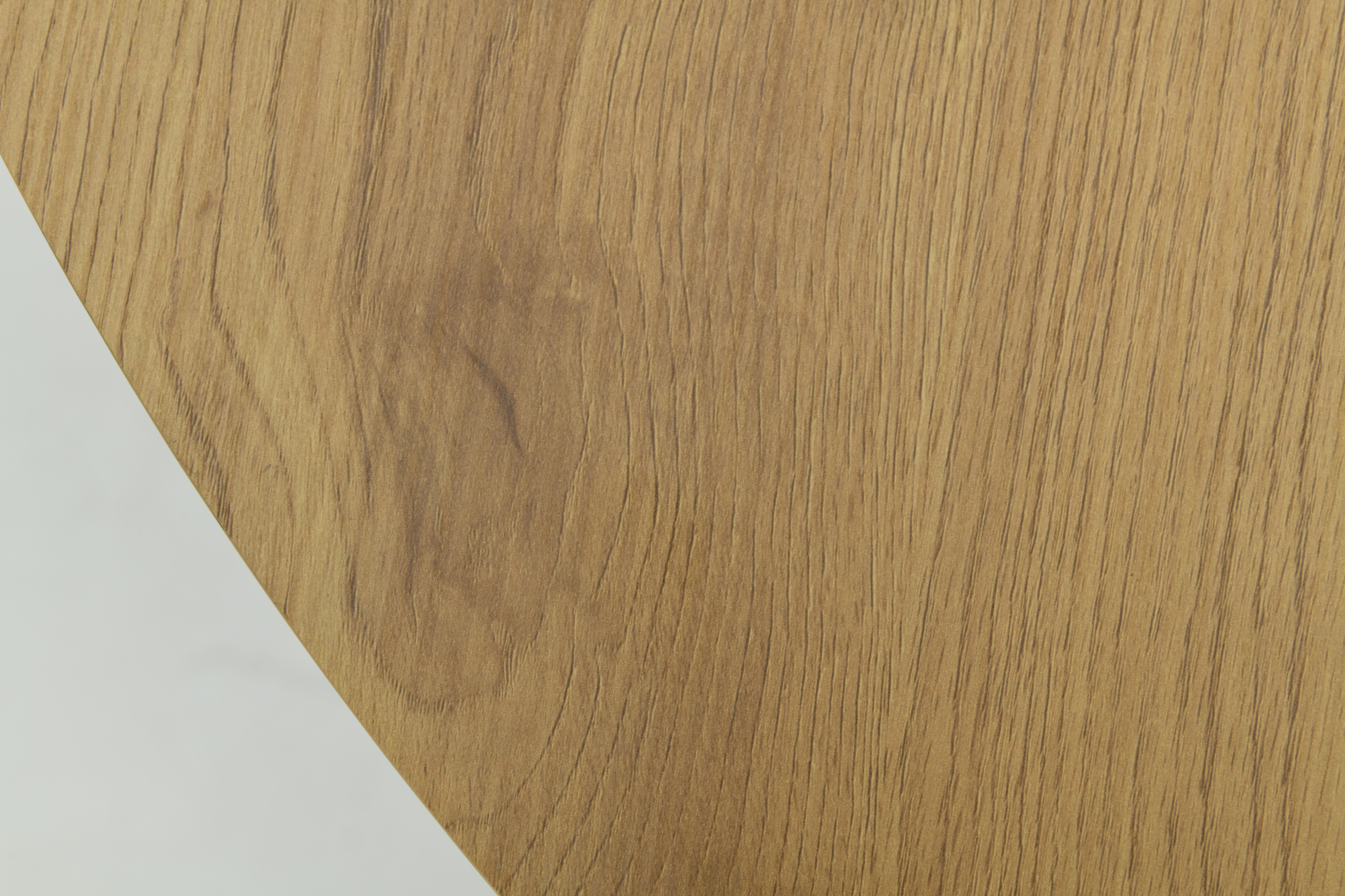 Plateau de table : 20 mm en MDF (panneaux de fibres de bois de densité moyenne), revêtement mélaminé décor chêne