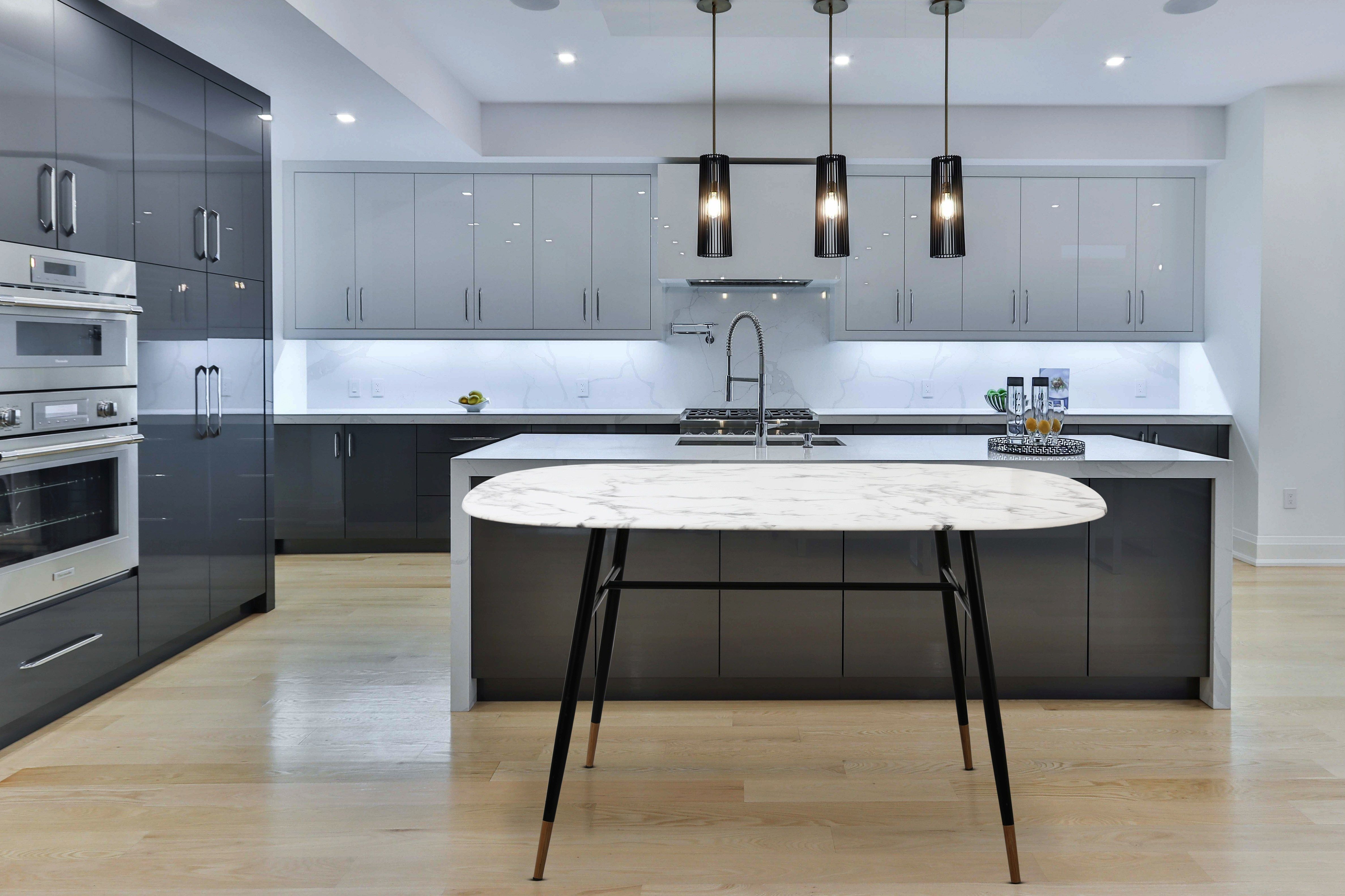 Cette élégante table à dîner au fin piètement métallique avec plateau en verre arrondi aspect marbre apportera une touche ultra chic dans votre salle à manger.