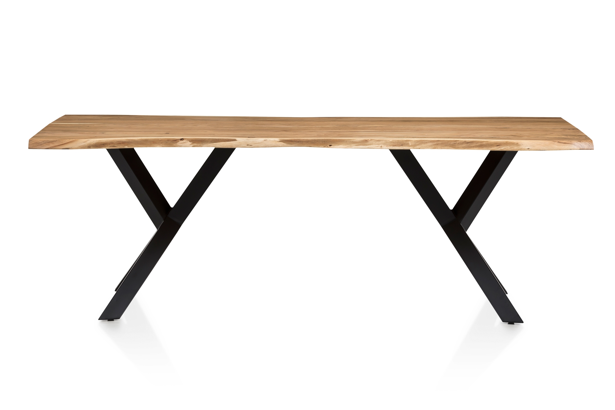 Les meubles en bois massif d'acacia incarnent un mobilier à la fois beau et intemporel qui n'est jamais démodé. Le plateau de table de 35 mm d'épaisseur aux chants de forme naturelle est en bois d'acacia. Il a été huilé et ciré deux fois, ce qui rend la surface résistante et déperlante. Le piètement en métal noir en forme de Y confère à la table une très bonne stabilité et représente un contraste bienvenu avec le joli plateau ton naturel. Cette table de salle à manger est bien plus qu'un endroit pour prendre le repas. Faites entrer un peu de nature dans votre intérieur. Remarque : comme cette table en bois massif est un produit naturel, elle peut présenter des nœuds ou des variations de teinte qui ne sont pas des défauts, mais qui soulignent le caractère individuel du bois véritable. Tous ces détails font de cette table à dîner une pièce véritablement unique.